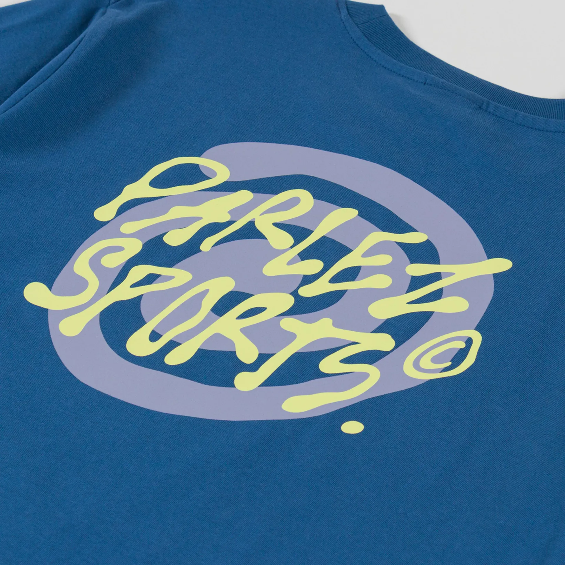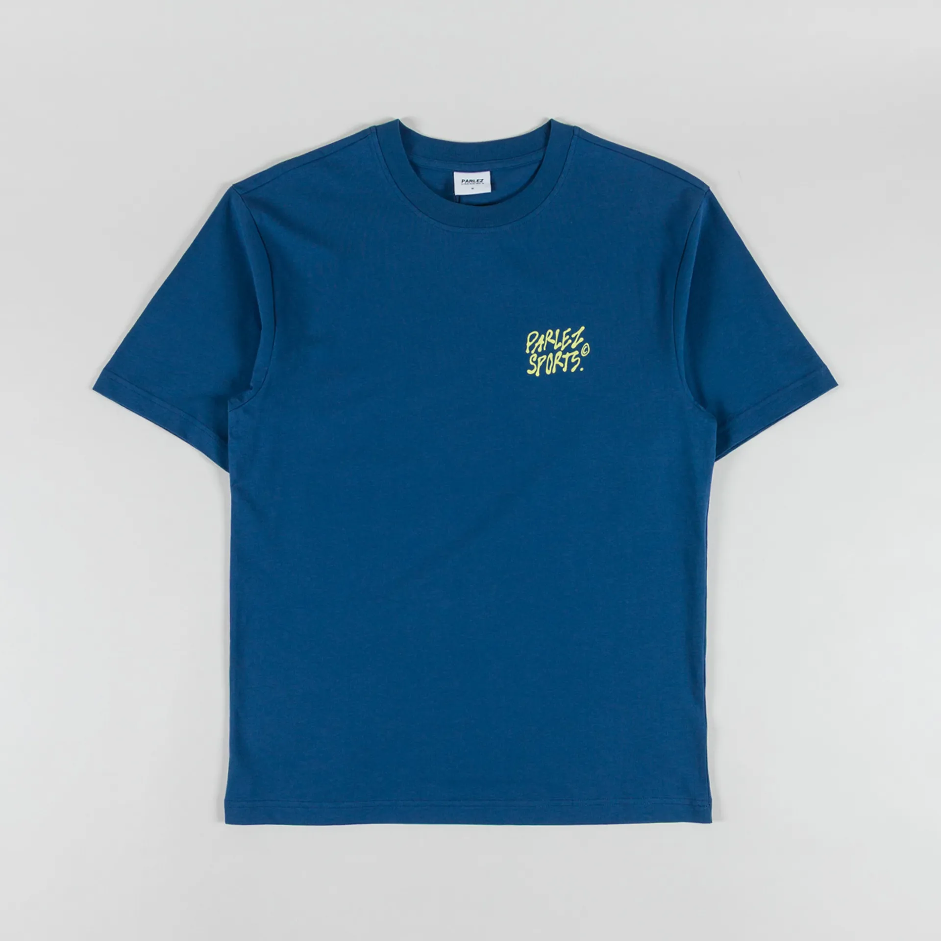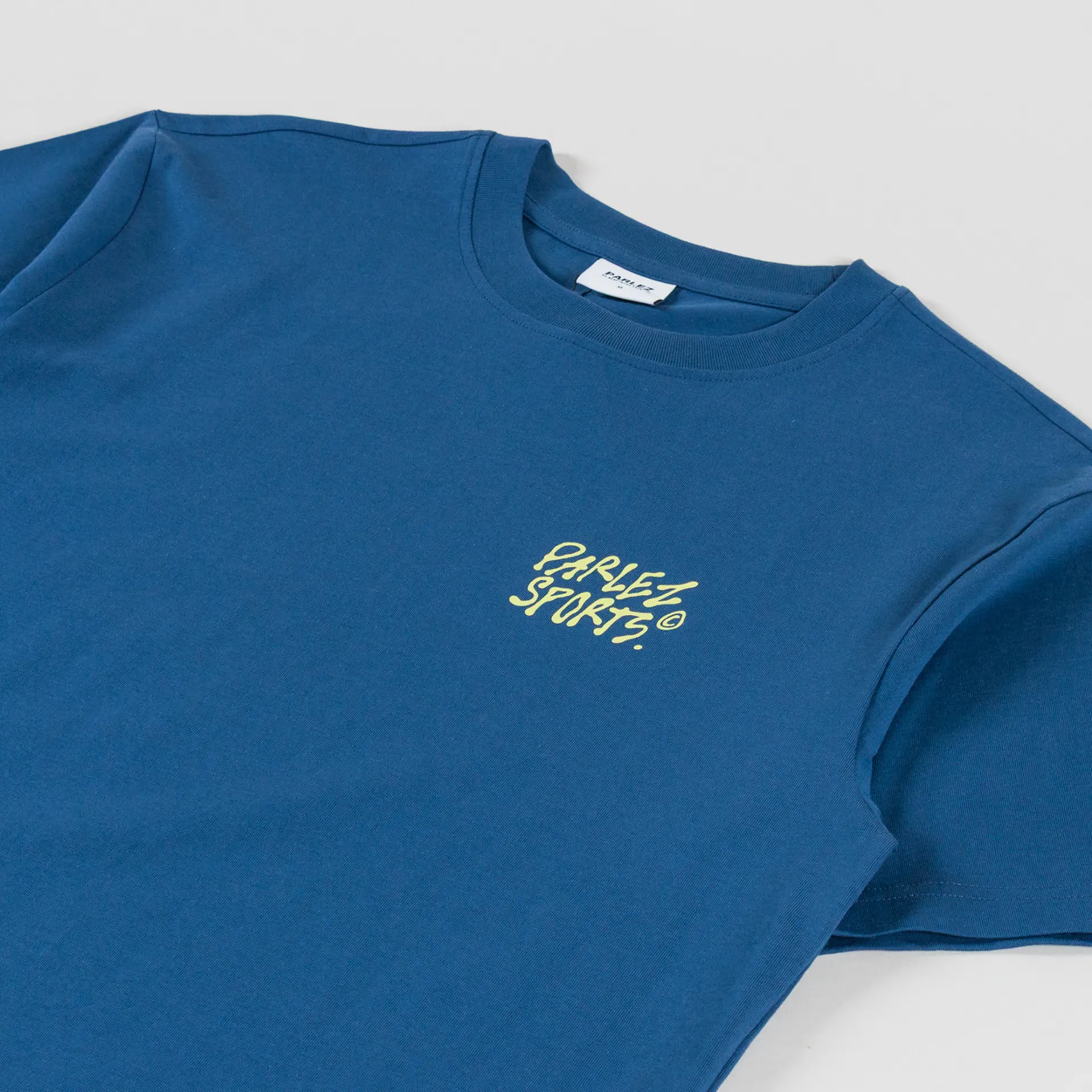 A graphic tee from Parlez, constructed from 100% GOTS certified organic cotton and cut in a regular fit for everyday comfort. It features a ribbed crewneck, a straight hem, with a small graphic at the chest and a larger print across the back.