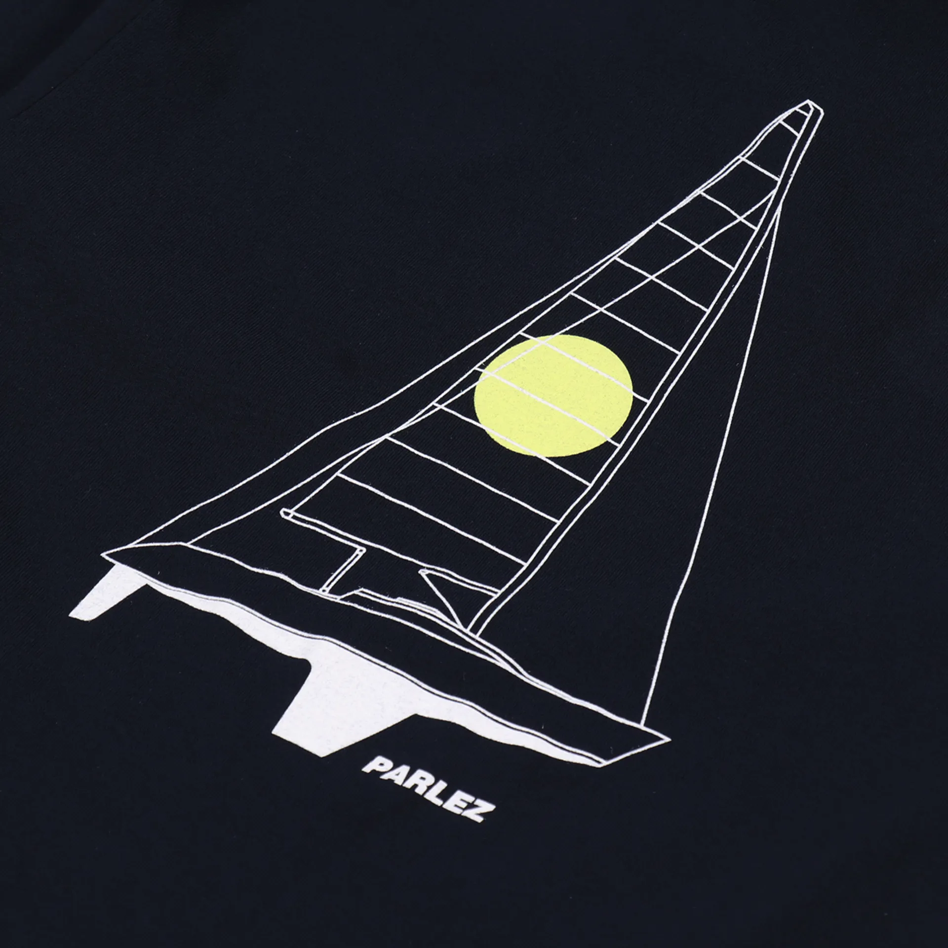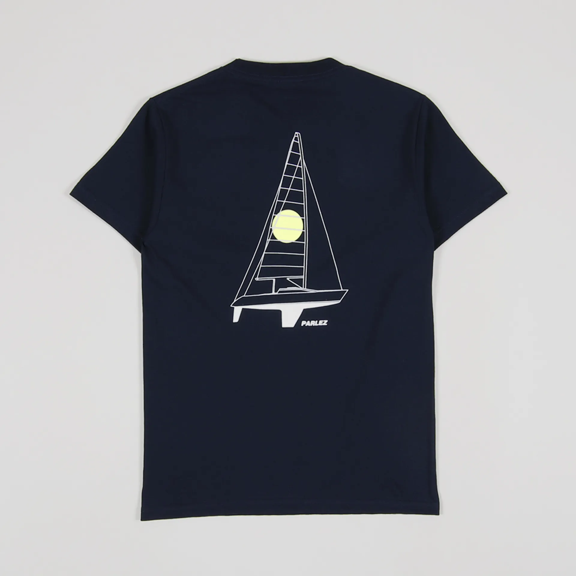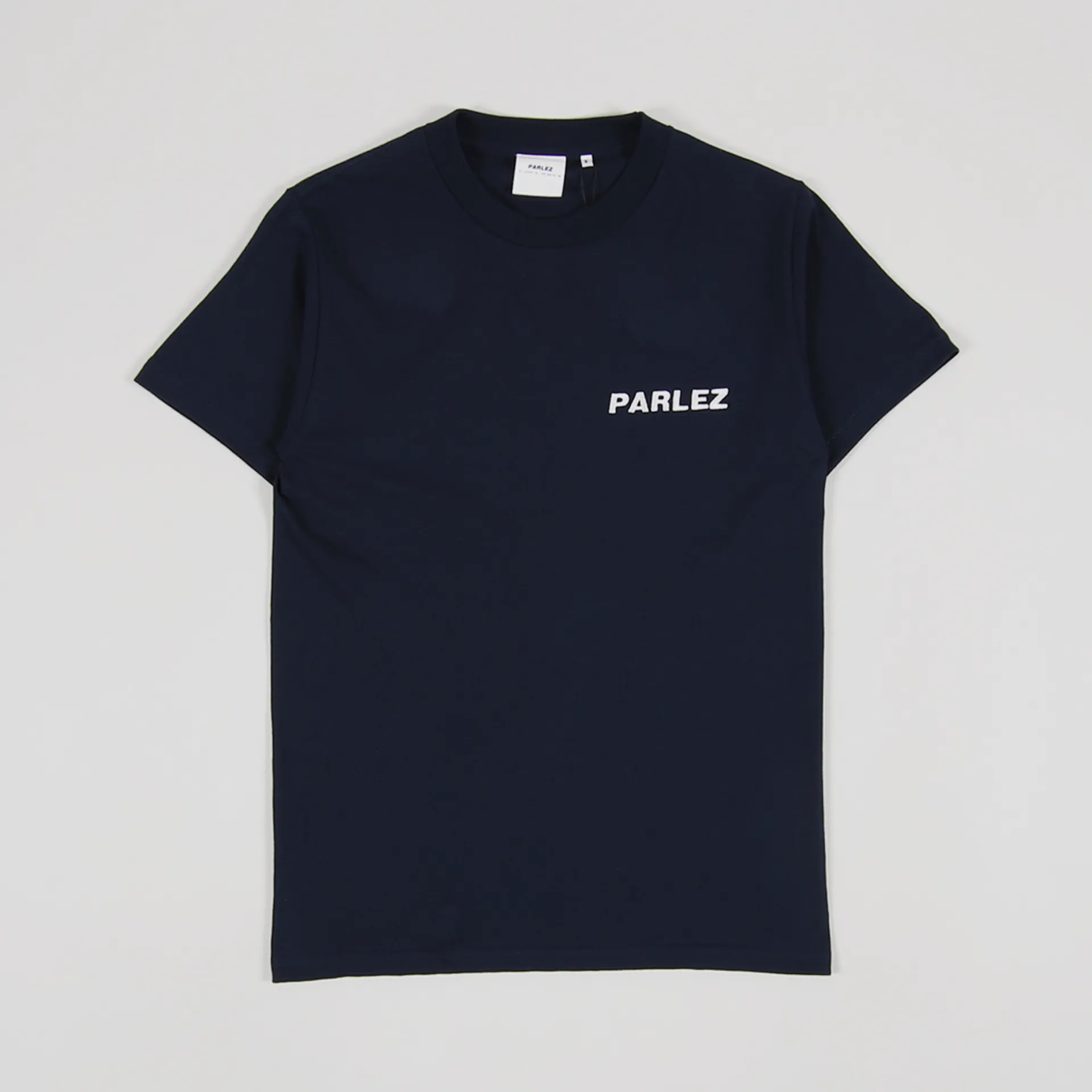 A short sleeve tee from Parlez made from a comfortable single jersey of 100% cotton with a ribbed crew neck, embroidered logo to the chest and original graphic artwork printed to the back.
