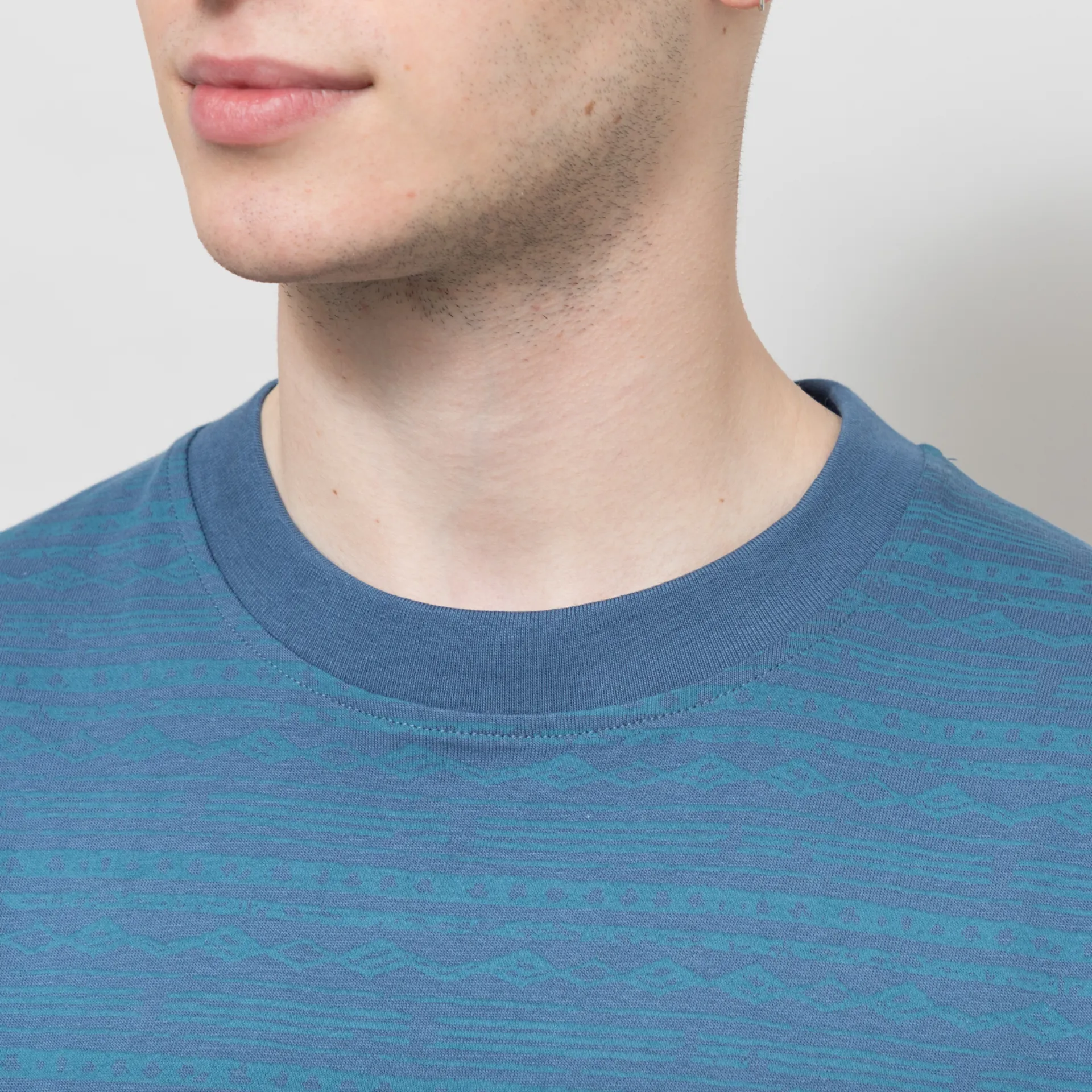 A graphic tee from Parlez, cut in a regular fit for everyday comfort and constructed from GOTS-certified organic cotton fabric. It has an all-over tonal print, a ribbed crewneck and a small embroidered logo at the chest.