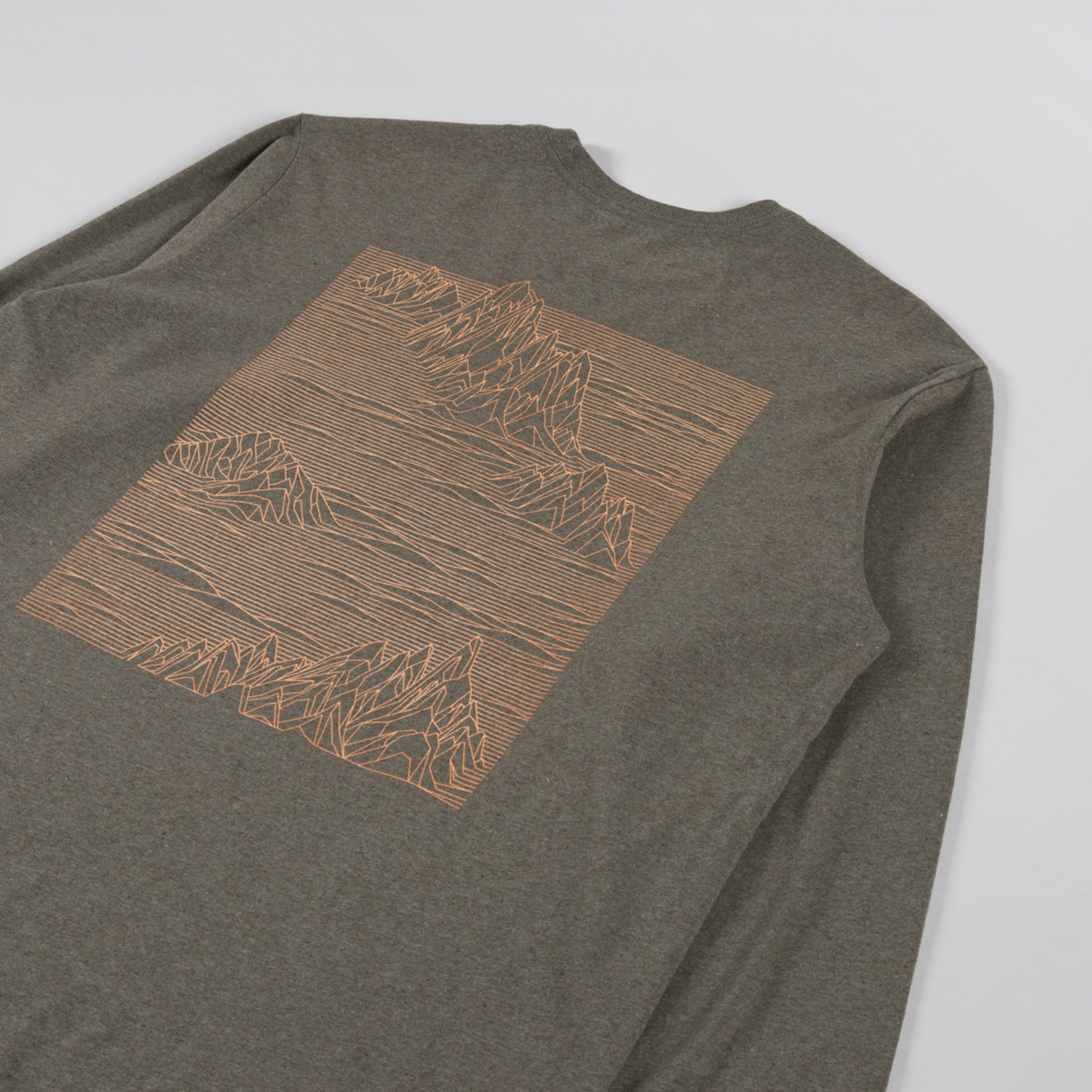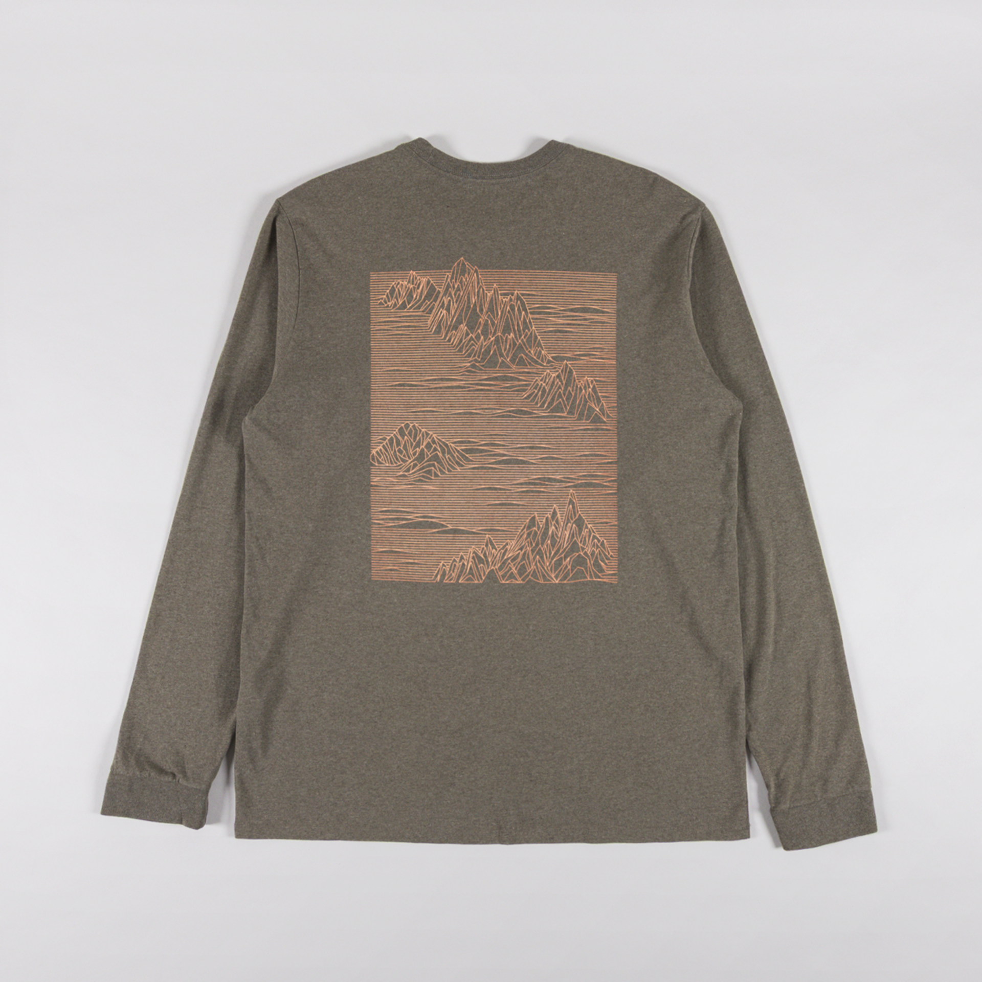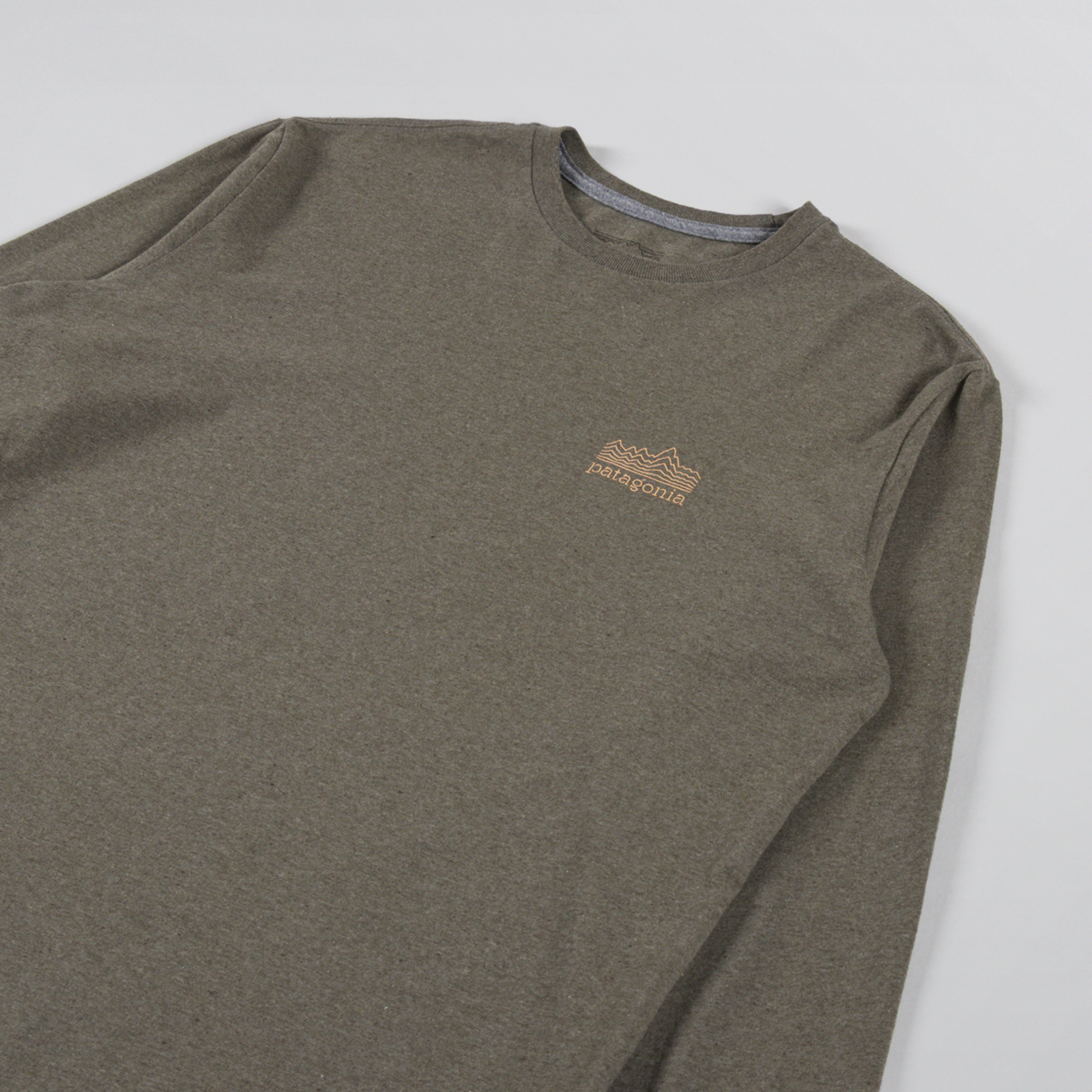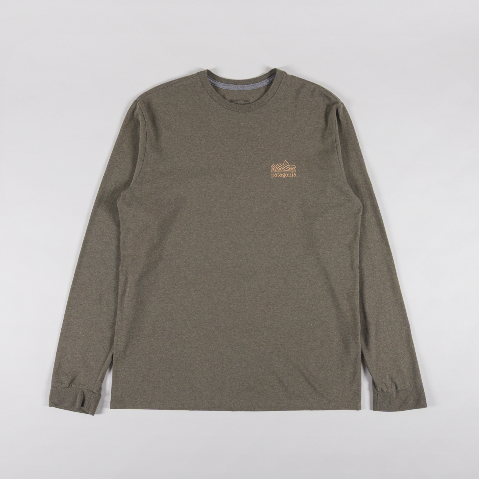 A long sleeved tee from Patagonia, constructed from 100% recycled fabric scraps and recycled bottles. It's cut in a regular fit for everyday comfort and features a ribbed crewneck and cuffs, a straight hem and is finished with retro inspired graphics to the chest and back.