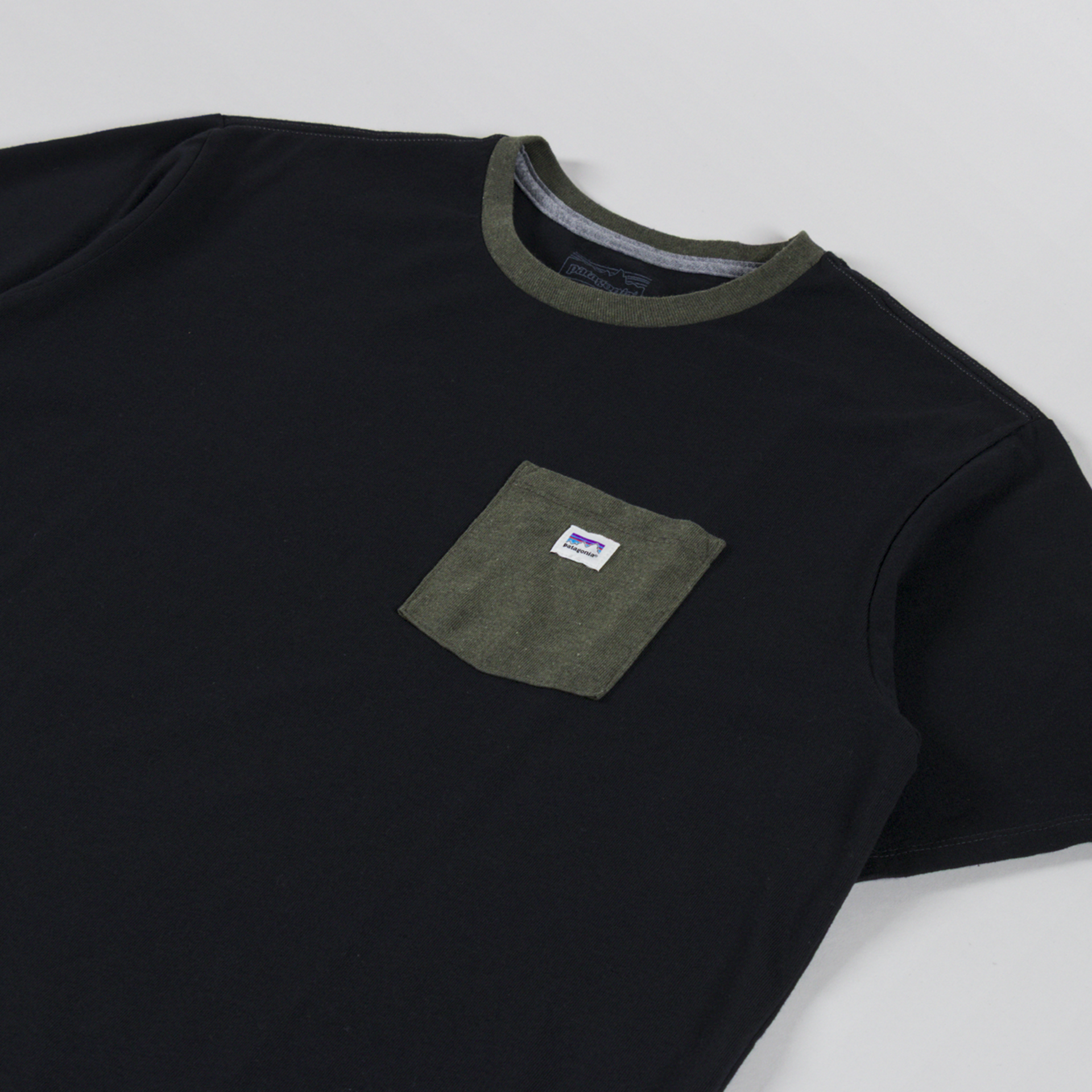 Patagonia Shop Sticker Pocket Responsibili-Tee Black Basin Green