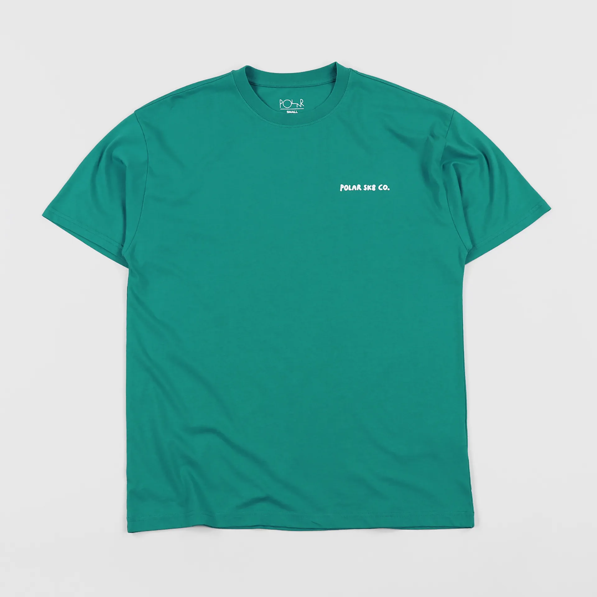 A tee from Polar Skate Co. with short sleeves, a ribbed crew neck, and a fresh new graphic to the back with some old school skateboarding, 'who cares' vibes.