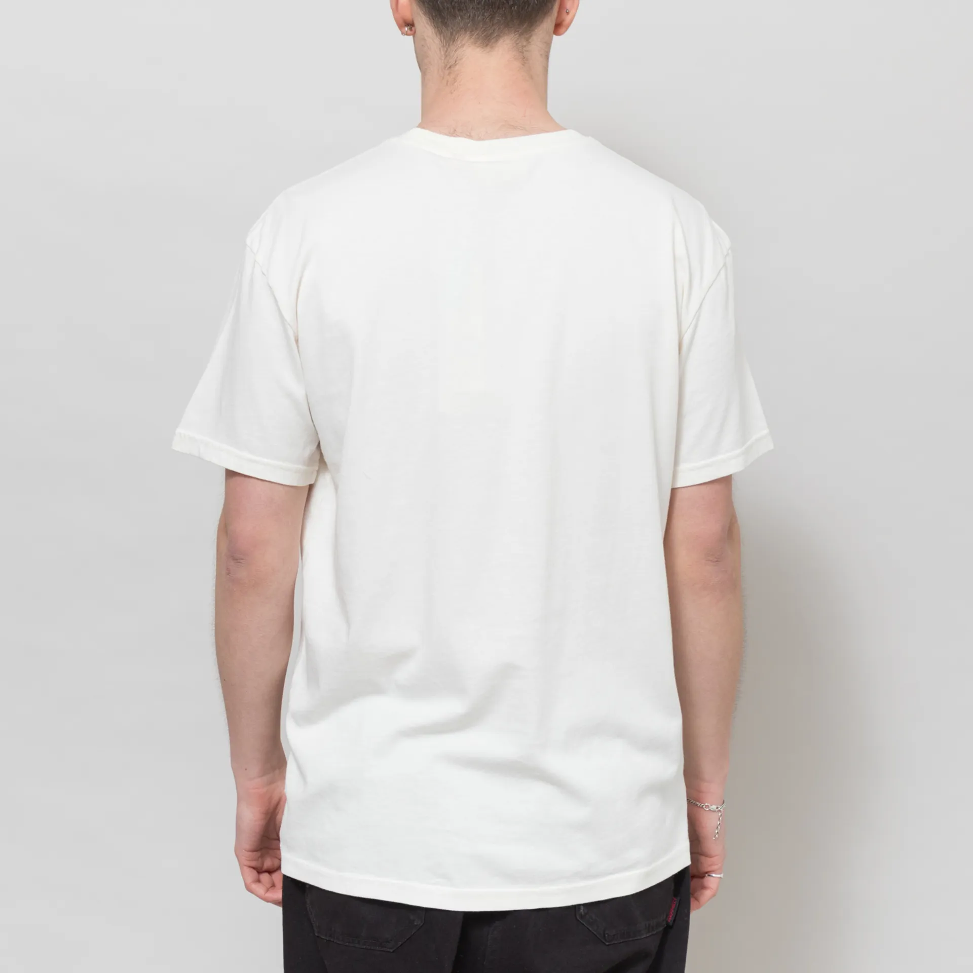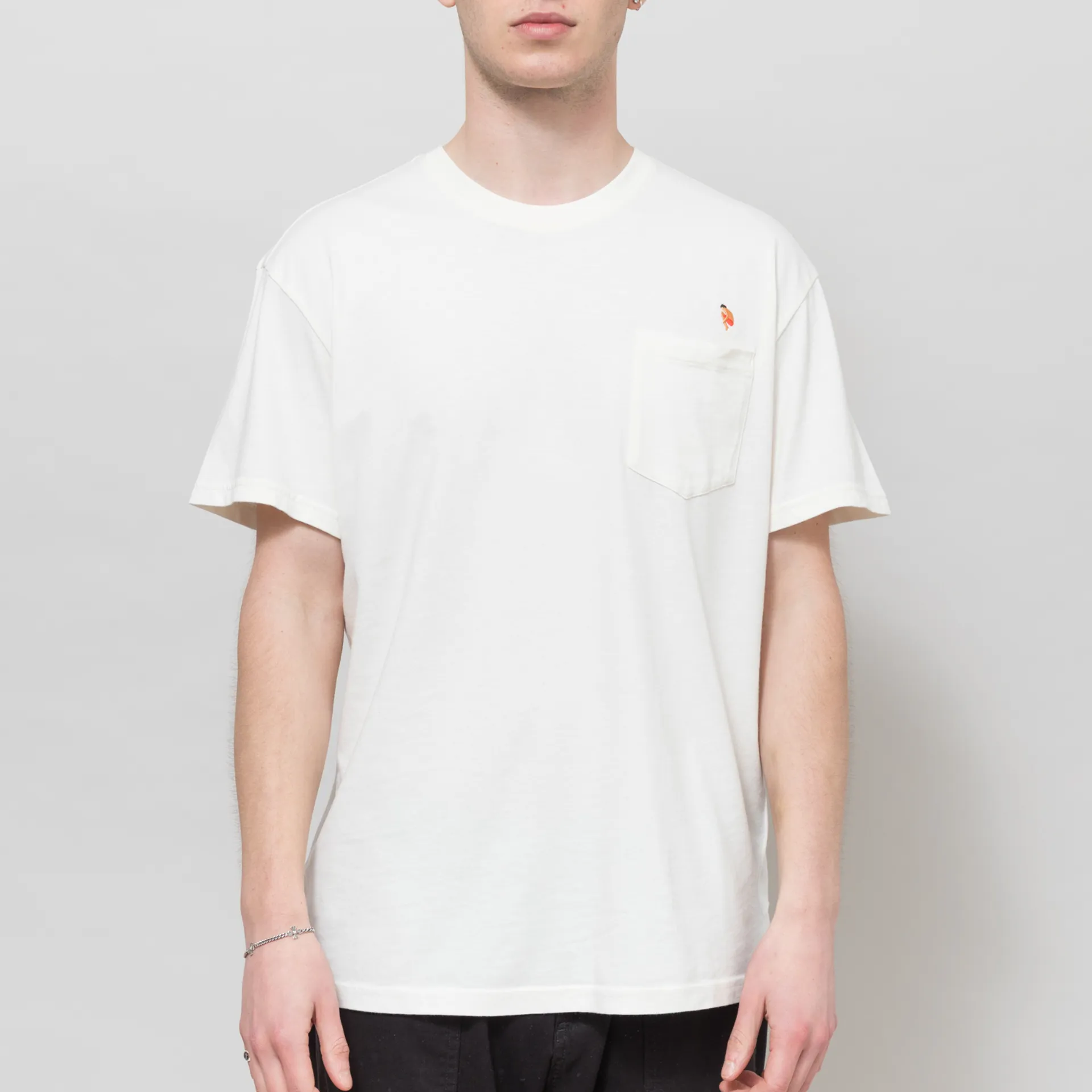 A pocket tee from Revolution, cut in a regular fit for everyday comfort and crafted from soft organic cotton fabric. It has a ribbed crewneck, a straight hem and a small embroidered graphic above the pocket.