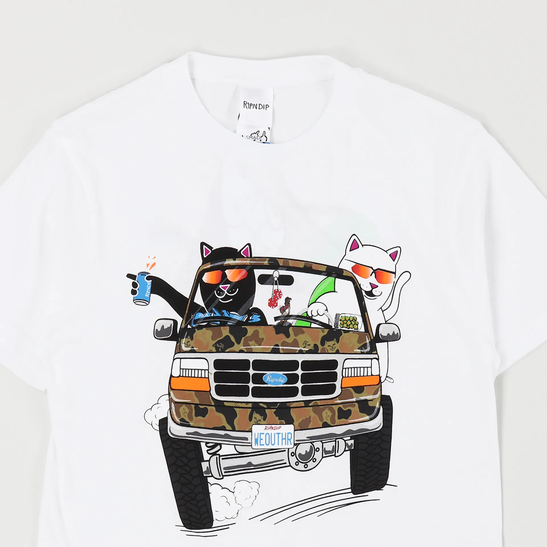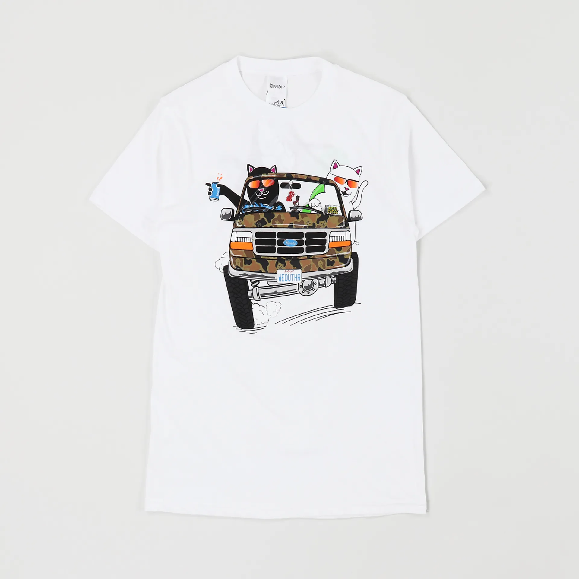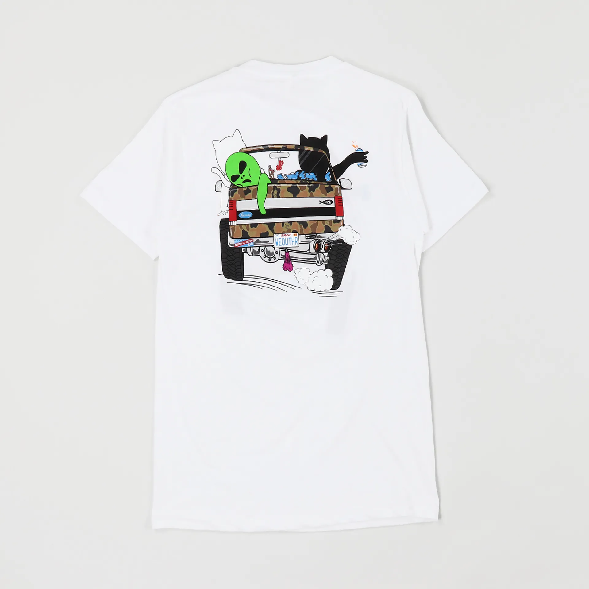 This short sleeve tee from Ripndip is made from a comfortable 100% cotton in a soft single jersey with a ribbed crew neck and an original artwork print to both the front and the back, with the whole gang riding a big ol' truck.