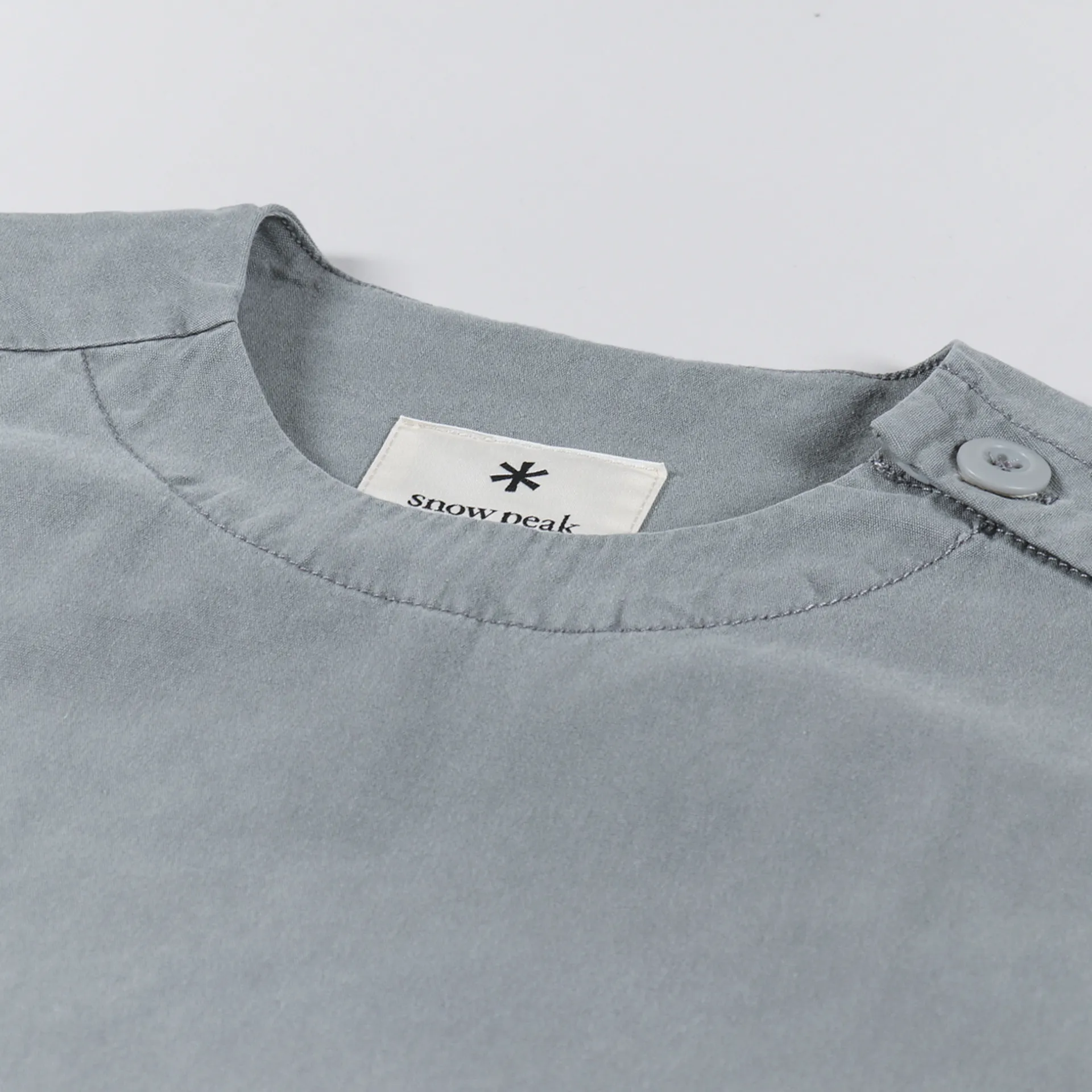 A pullover top from Snow Peak, made from a super lightweight and comfortable 100% recycled cotton with a buttoned shoulder beside the crew neck, and patch pockets to the front.