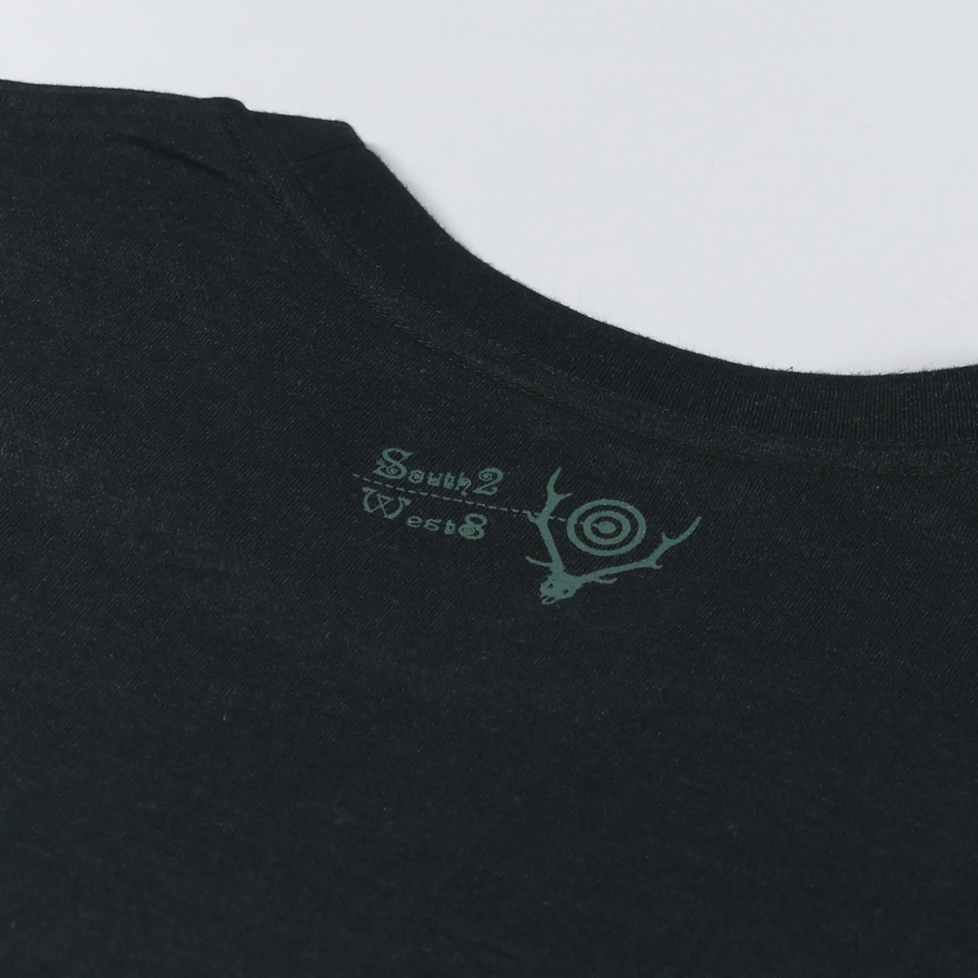 A short sleeve tee from Japanese label South2 West8, made from a comfortable blended jersey of 65% polyester and 35% cotton with a ribbed crew neck. It has graphic artwork to the front and a logo print to the back of the neck.