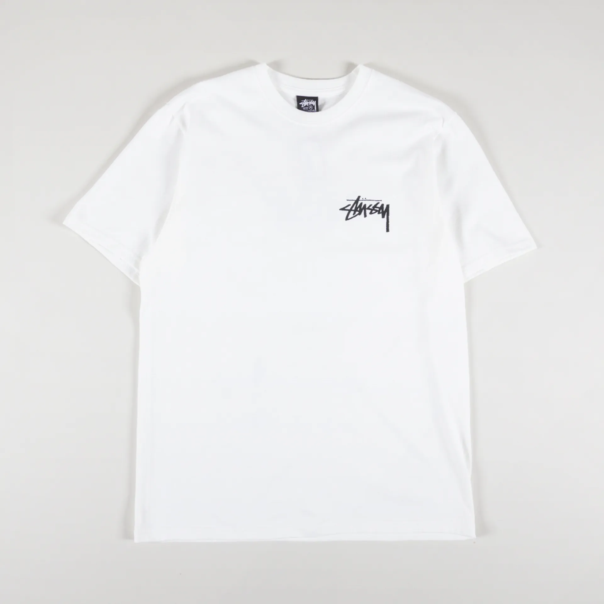A short-sleeved tee from Stussy, made from 100% cotton with ribbed neck and finished off with printed graphics on the front and back.