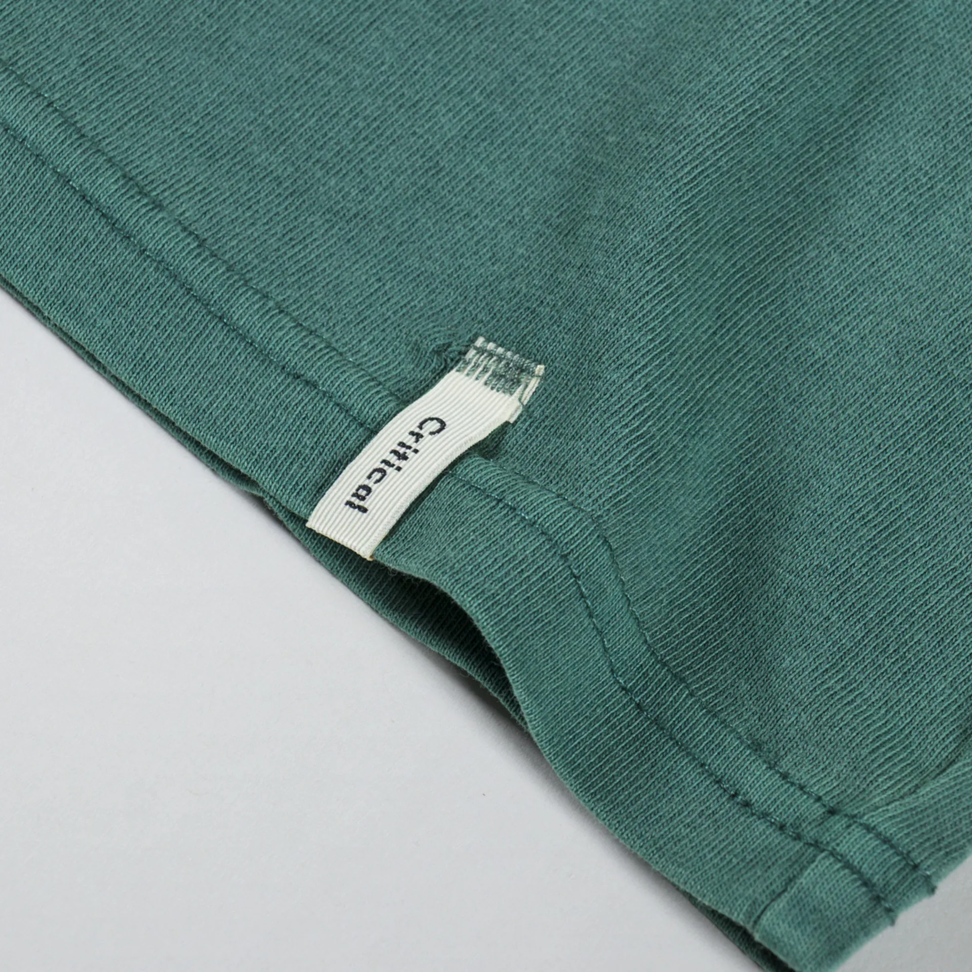 A short sleeve tee from Critical Slide, constructed from 230gsm cotton that has been garment-dyed and washed for a softer hand feel