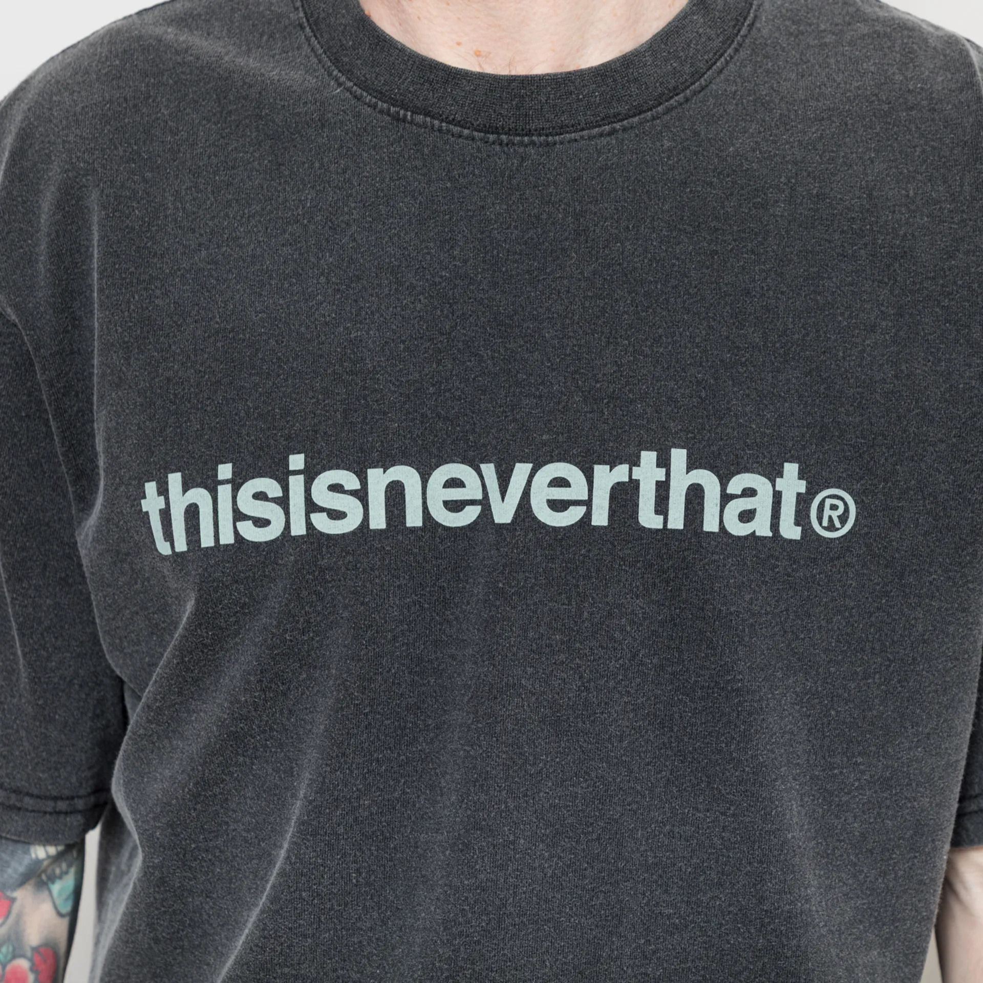 A logo tee from thisisneverthat, cut in a regular fit for everyday comfort and constructed from 210gsm cotton jersey fabric - garment-washed for a softer handfeel and worn-in look. Featuring a ribbed crewneck, a straight hem and finished with printed logos across the chest and back of the neck.
