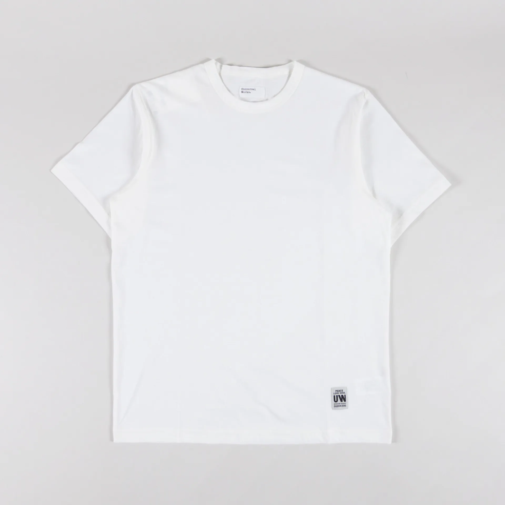 A plain tee from Universal Works, cut in a loose fit for a laidback silhouette and constructed from Single Jersey, a core fabric from UW, a lightweight, high-quality cotton. Featuring a ribbed crewneck, a straight hem and a cool woven logo patch.