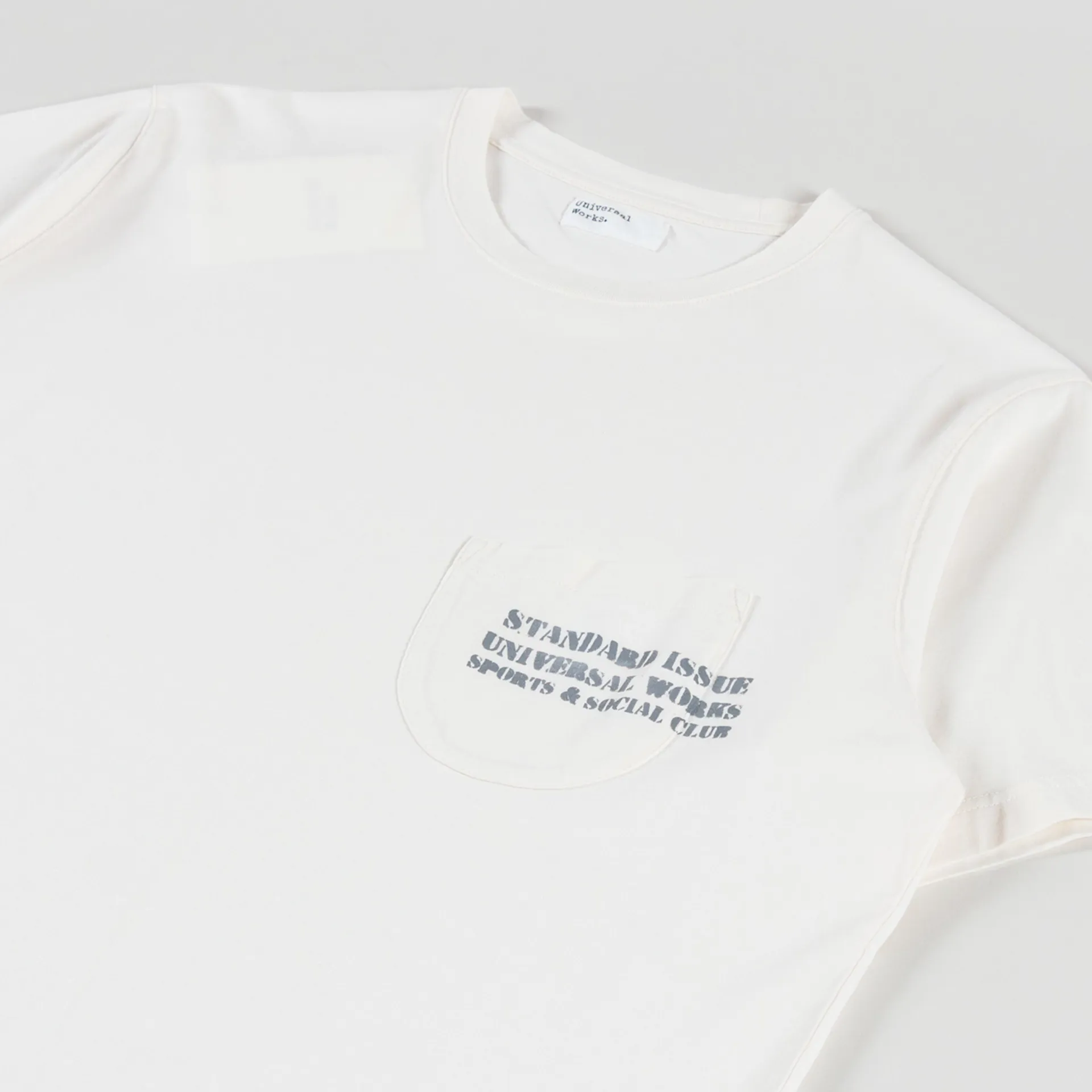 Universal Works Print Pocket T Shirt Ecru Organic Jersey