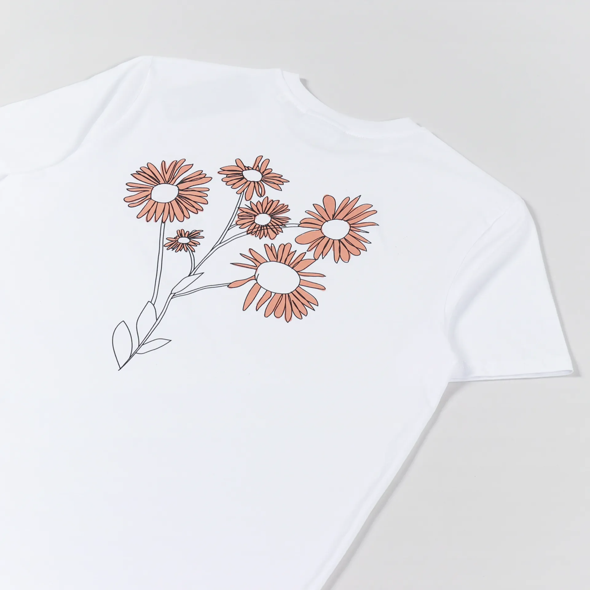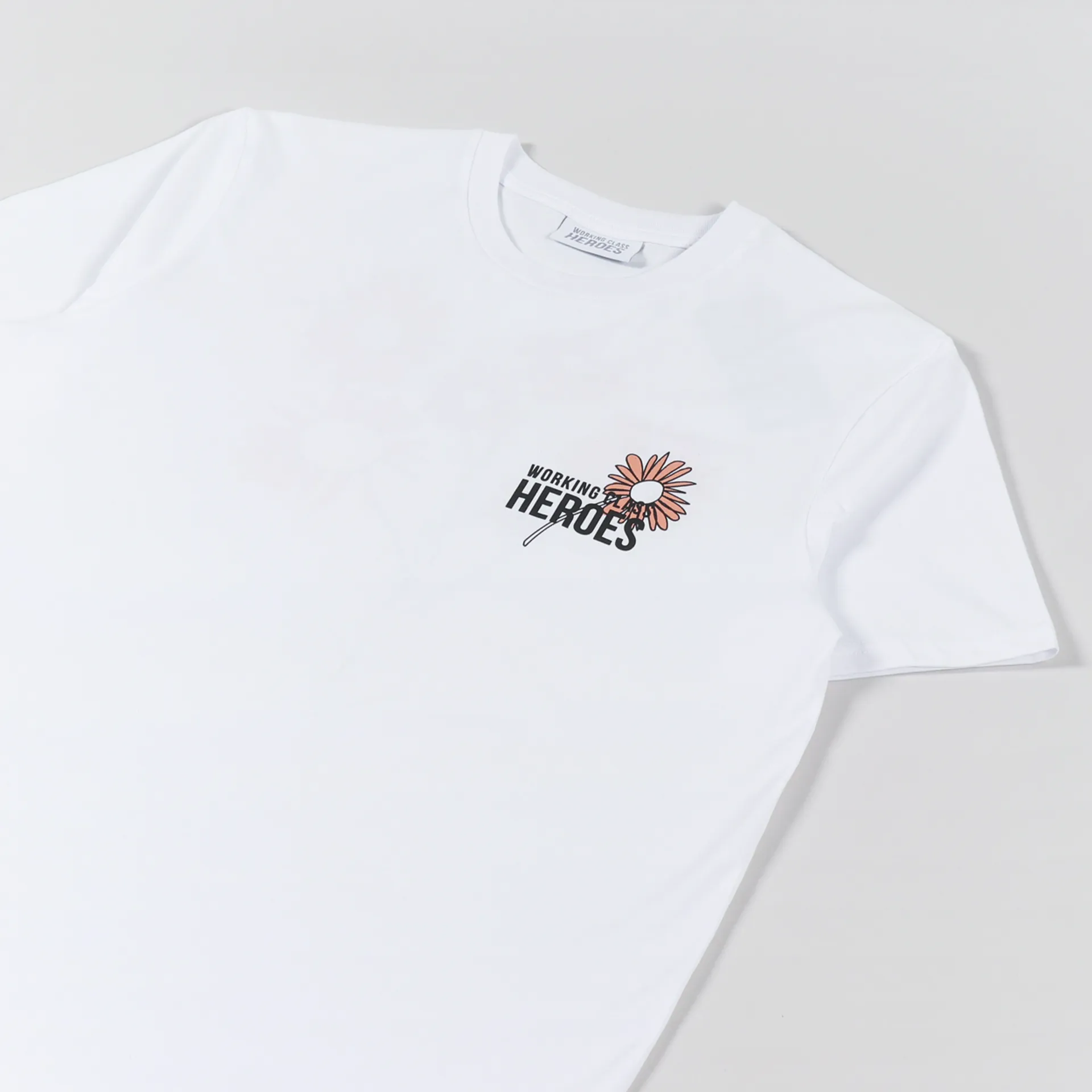A short sleeve tee from Working Class Heroes and artist Naomi Shepherd, made from 100% organic cotton with a ribbed crew neck, woven logo tag to the hem, and a Spring Flowers graphic to the chest and back.