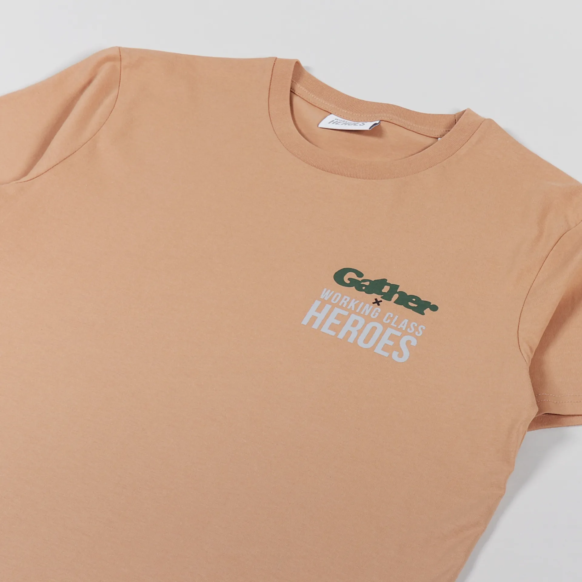 A short sleeve tee from Working Class Heroes and Gather, the best beerhouse in Cumbria, made from a comfortable single jersey of 100% organic cotton with a ribbed crew neck, logo prints to the chest and artwork to the rear.