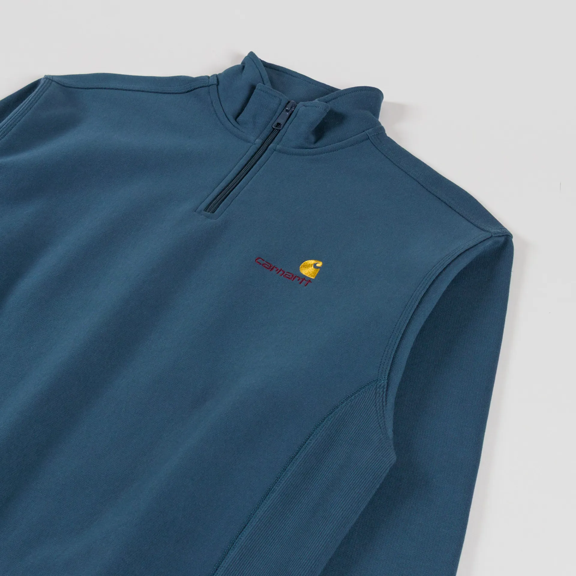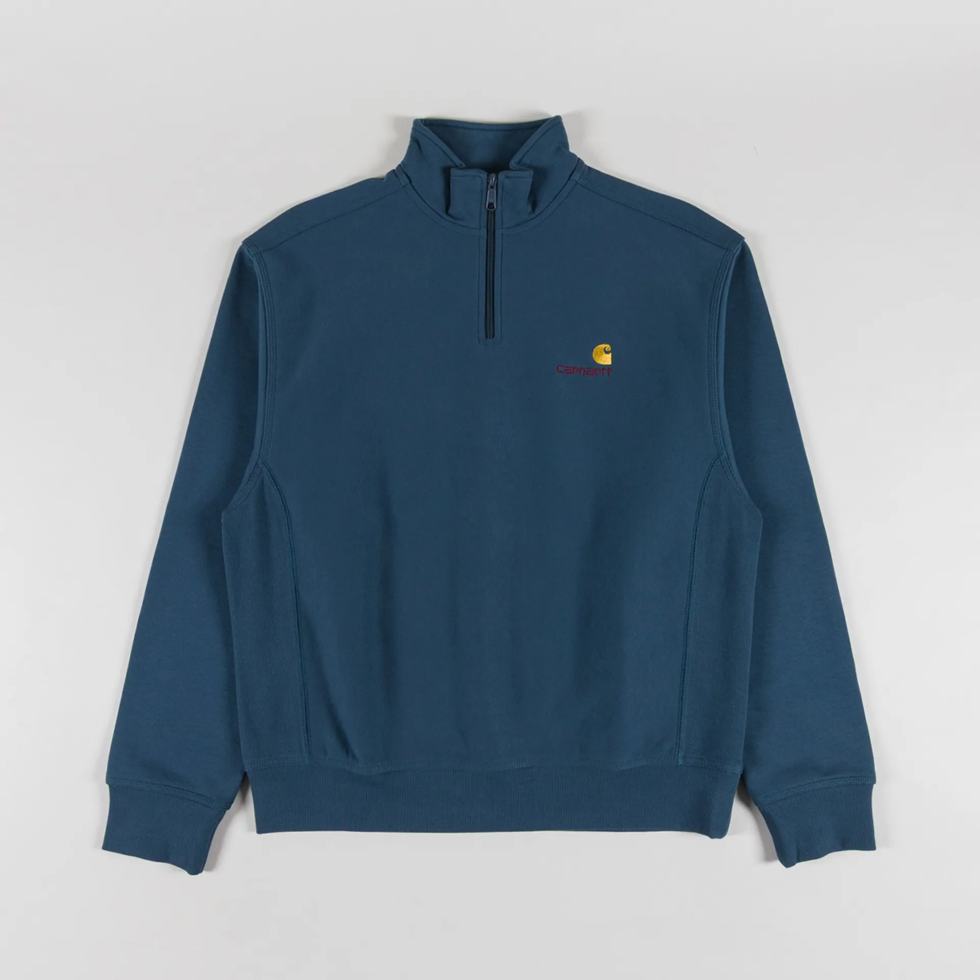 A zip-neck sweatshirt from Carhartt WIP with an American Script logo embroidered to the chest. Made from a comfortable blend of cotton and polyester.