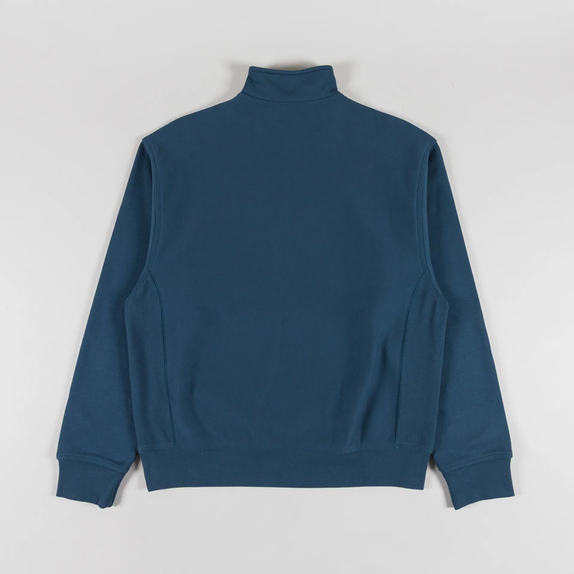 A zip-neck sweatshirt from Carhartt WIP with an American Script logo embroidered to the chest. Made from a comfortable blend of 80% cotton and 20% polyester with a warm brushed fleece lining. It has a ribbed hem, side panels and cuffs.
