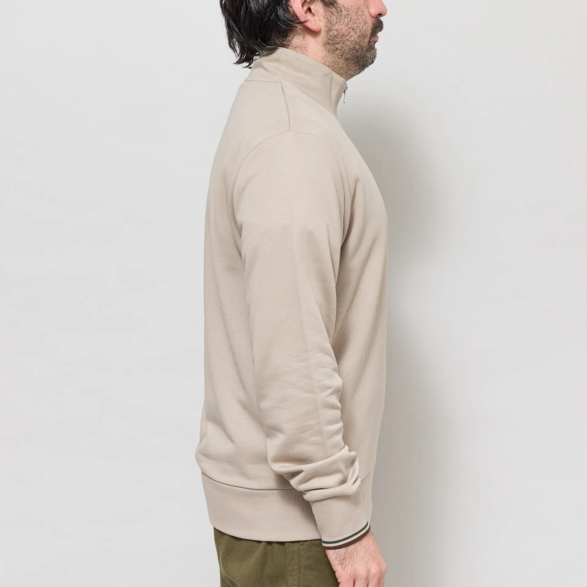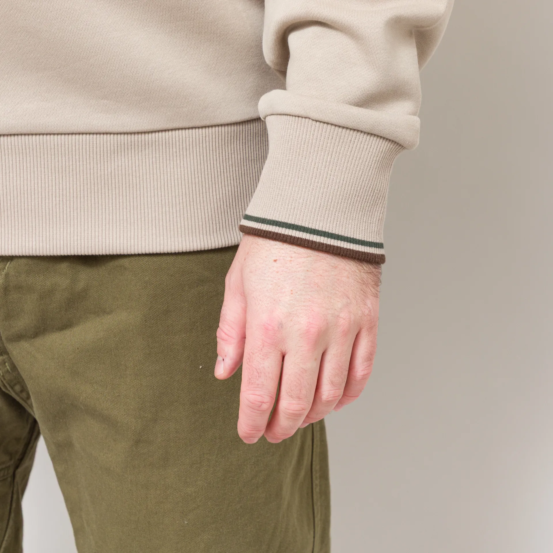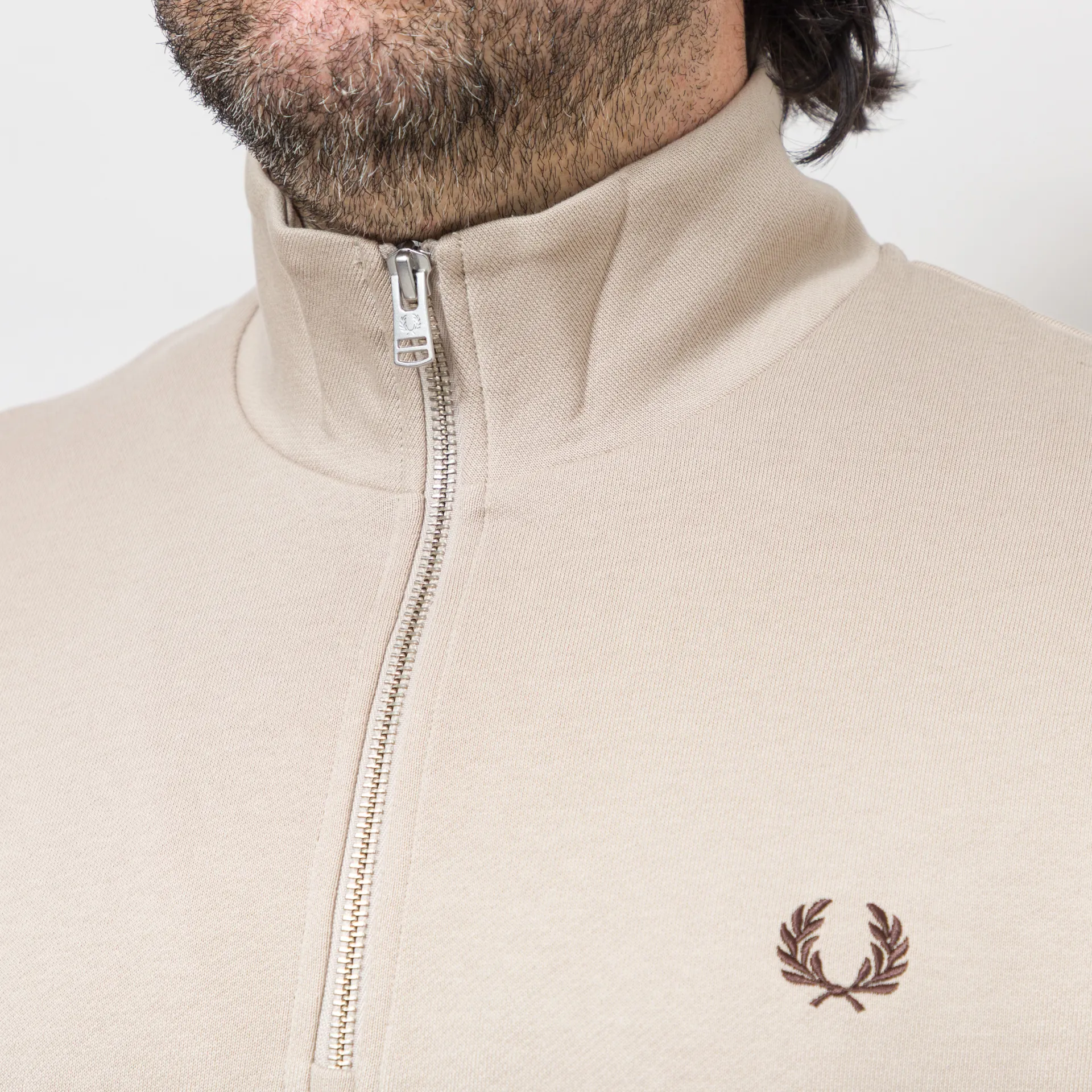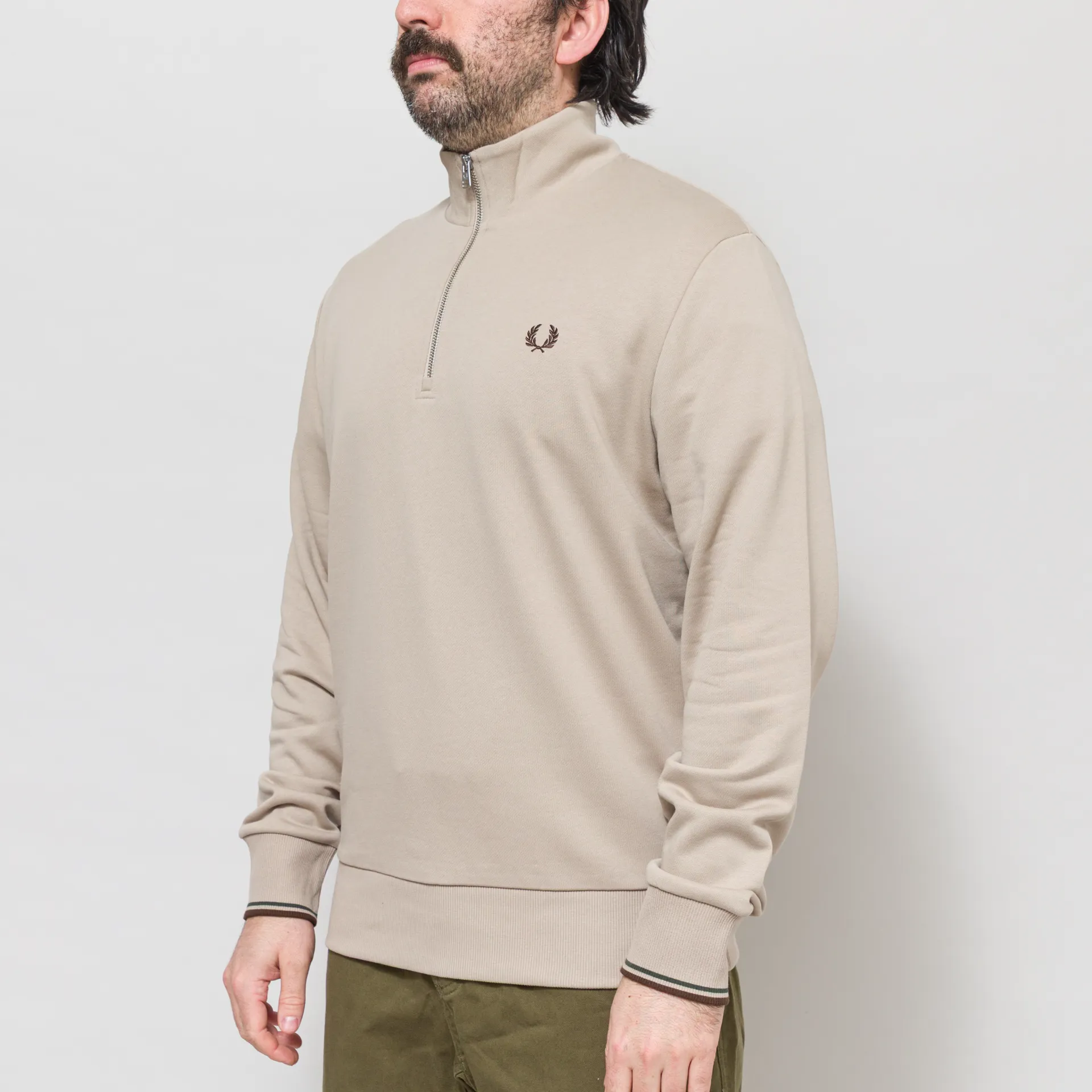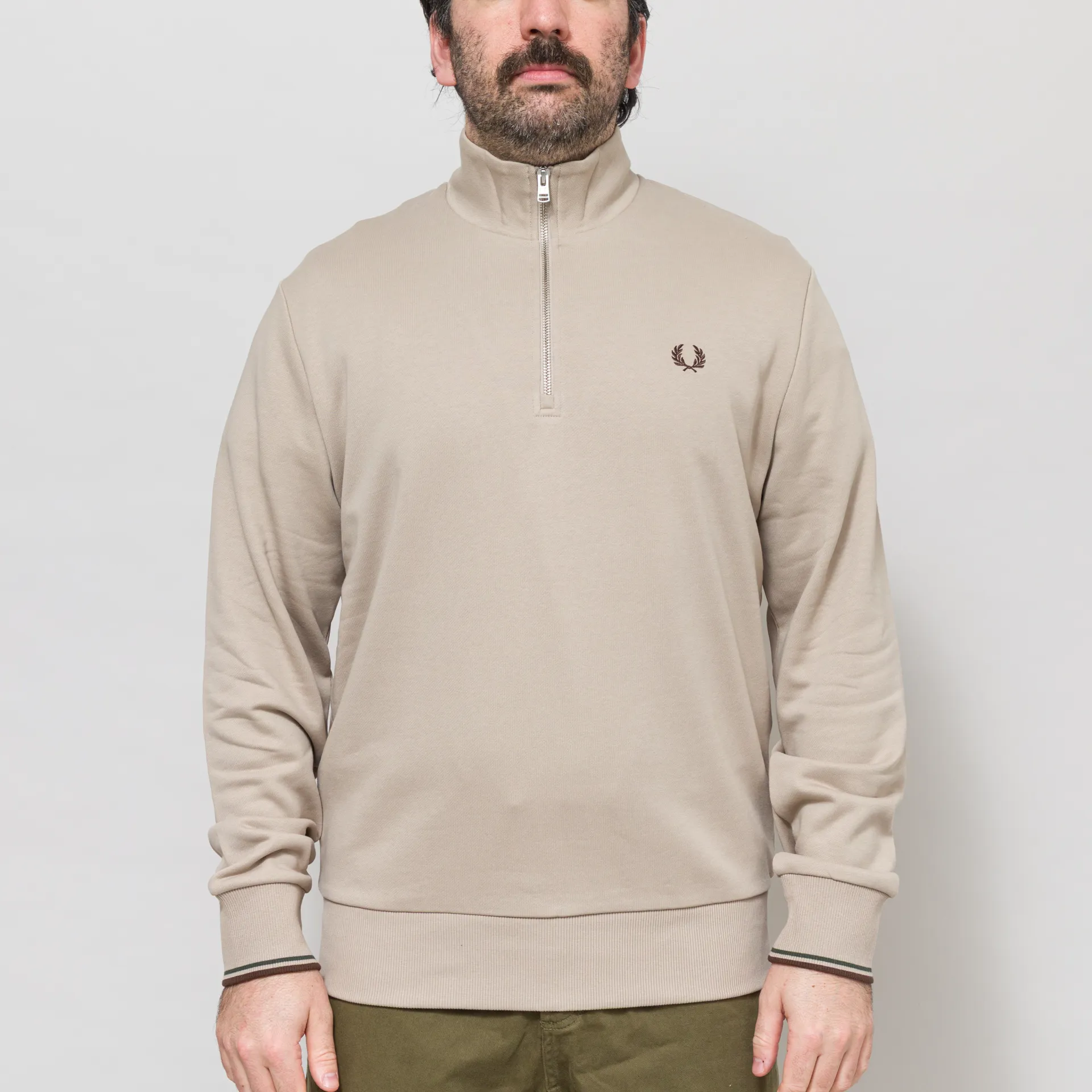 Fred Perry Half Zip Sweatshirt Warm Oat Court Green Tobacco
