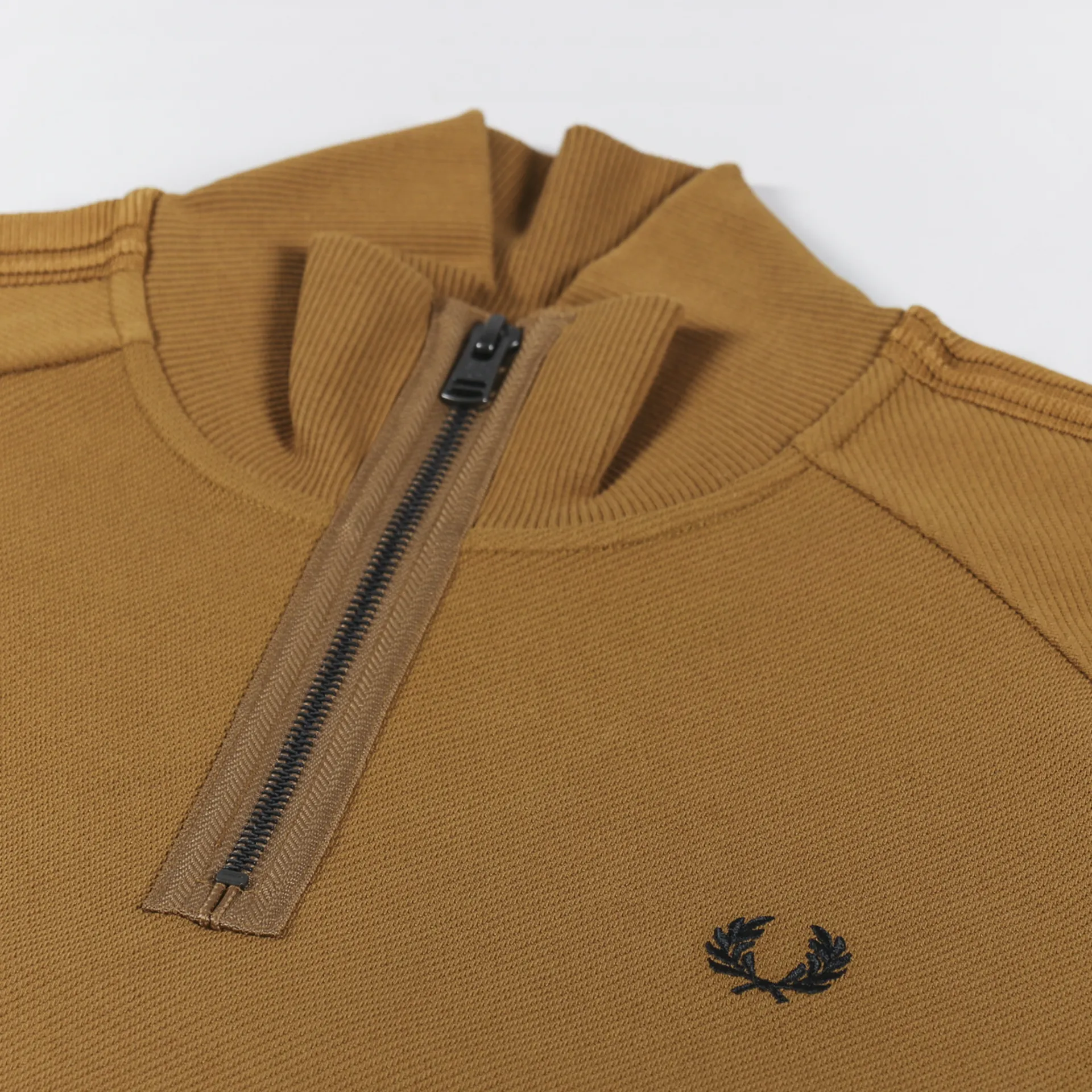 Fred Perry Half Zip Taped Track Jacket Dark Caramel
