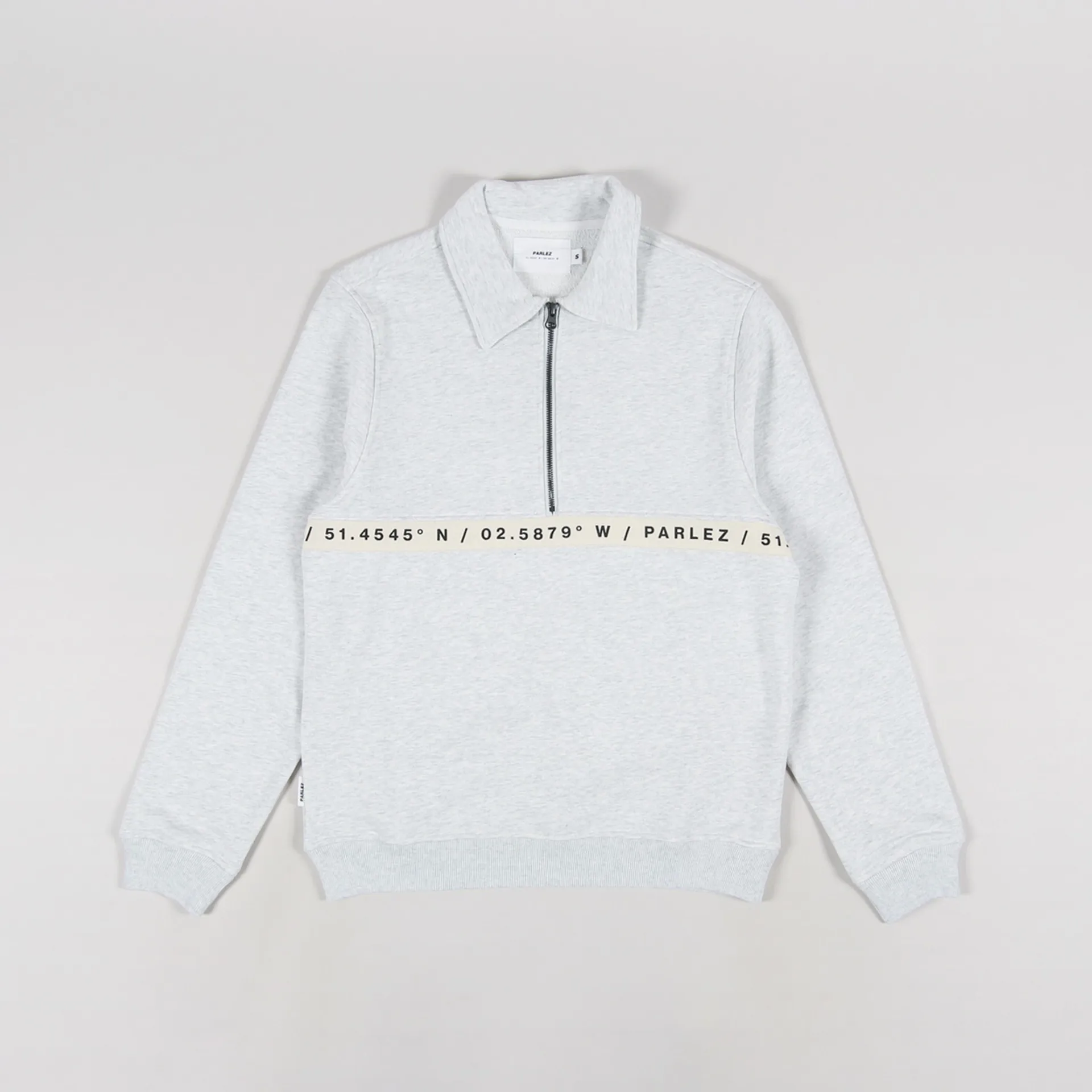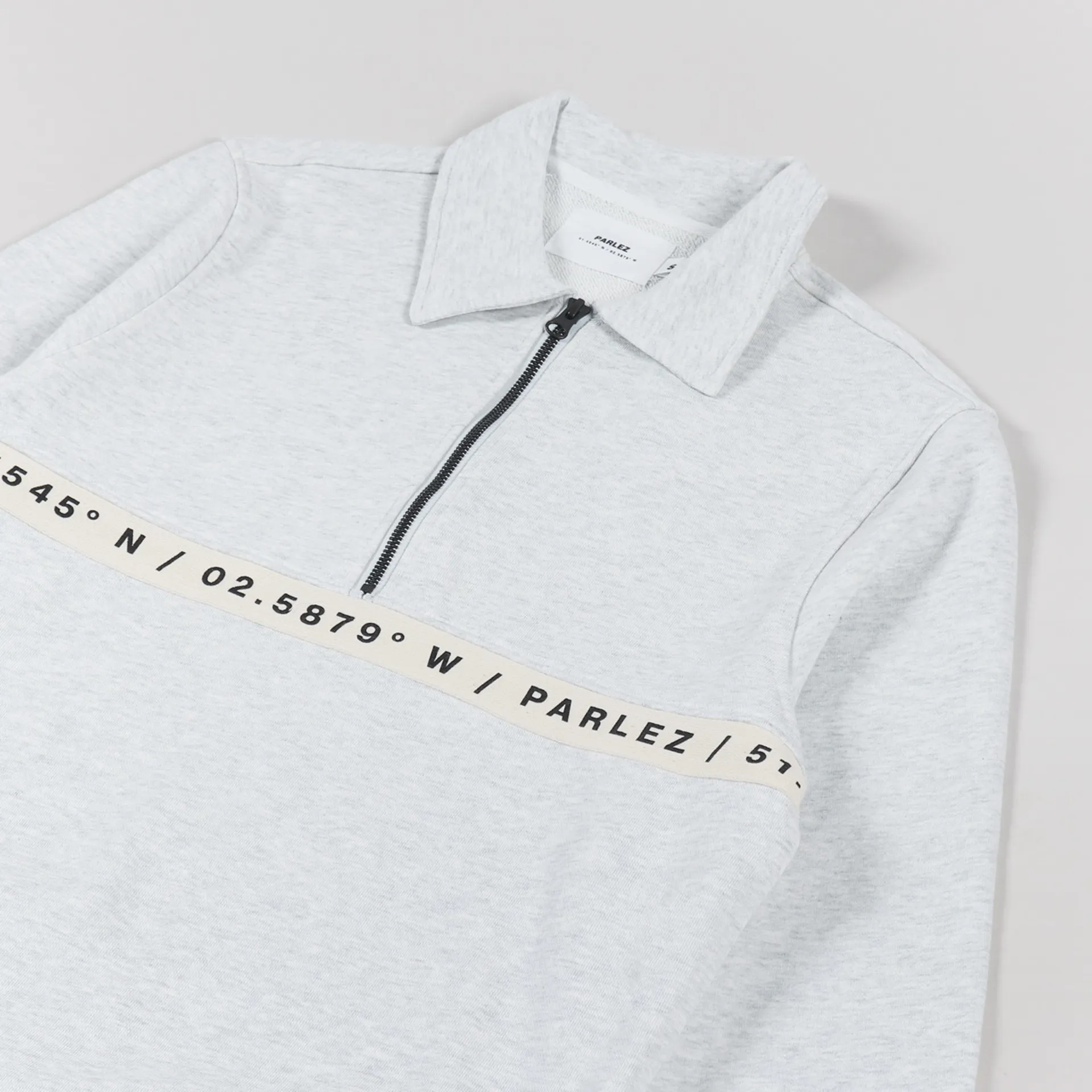 A sweatshirt from Parlez made from a blend of 80% cotton and 20% polyester with a sporty loopback lining, a ribbed hem and cuffs, quarter-zip neck and a woven fabric stripe featuring graphic logo branding.