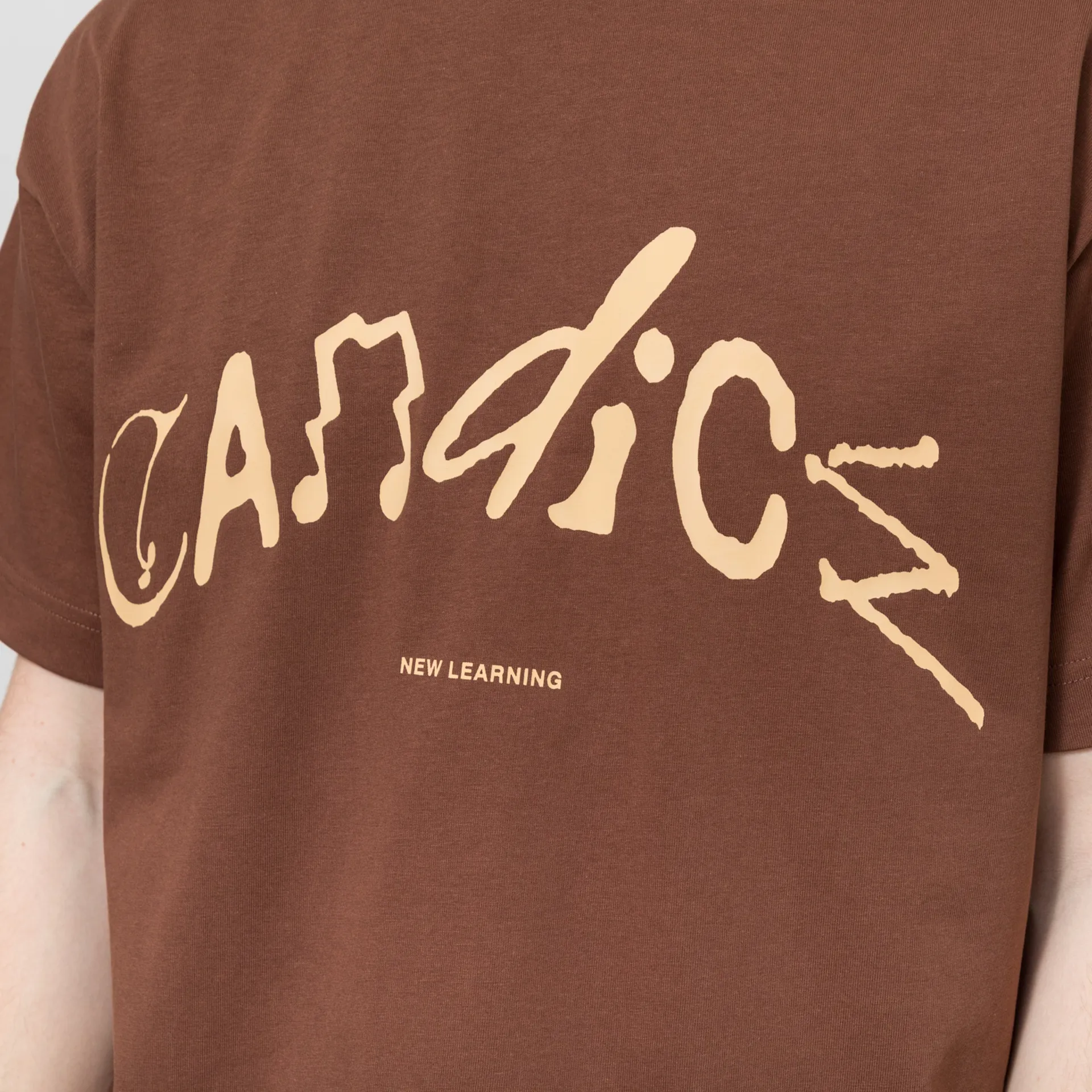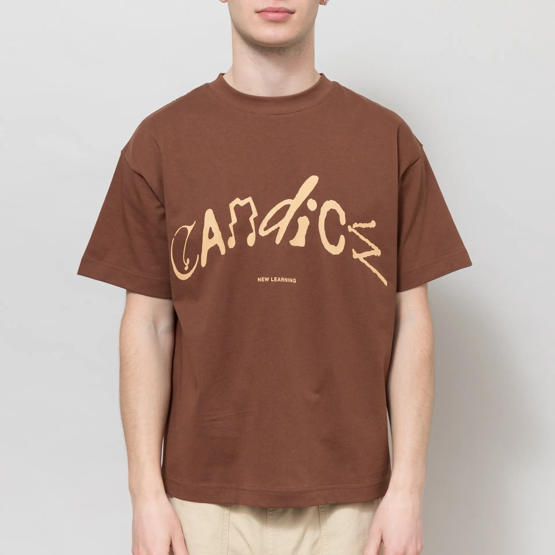 A graphic tee from CANDICE, constructed from heavyweight cotton and cut in a loose, boxy fit. It features a ribbed crewneck, a straight hem, with dropped shoulders and graphic branding across the front.