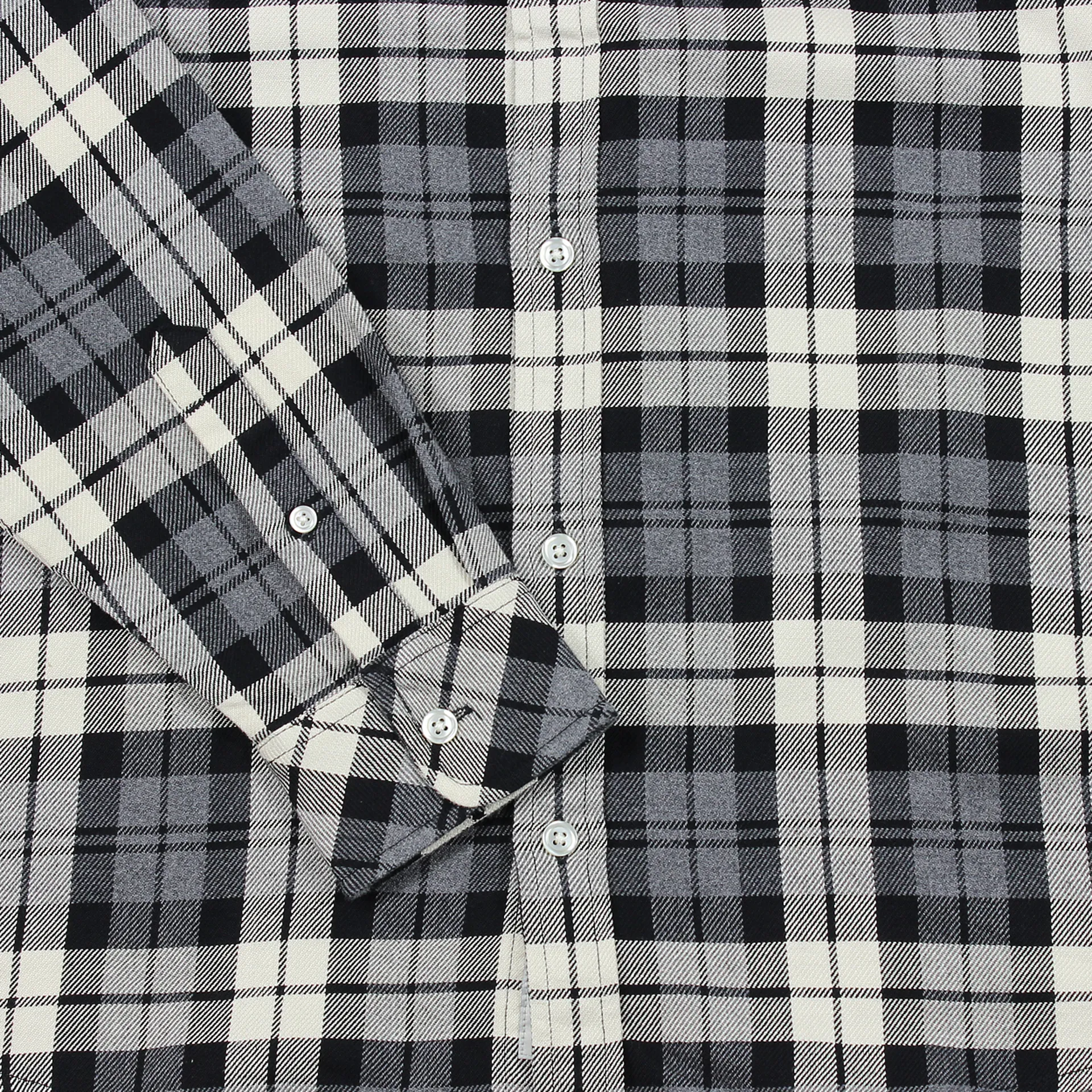 Long sleeved 5.9oz cotton twill check shirt in grey and black.
