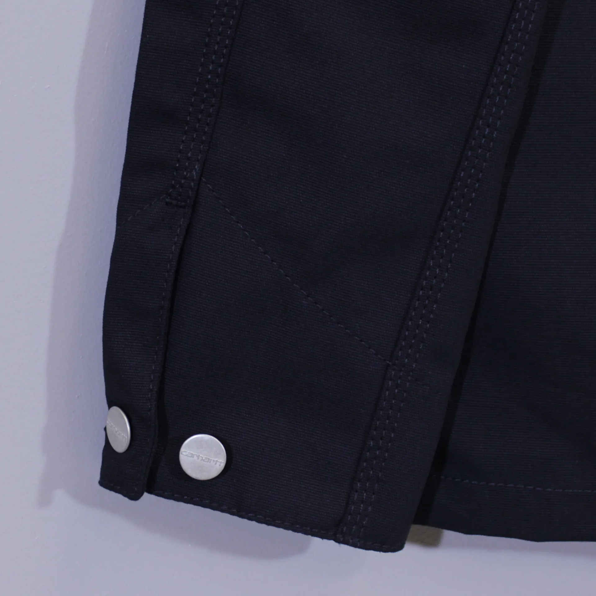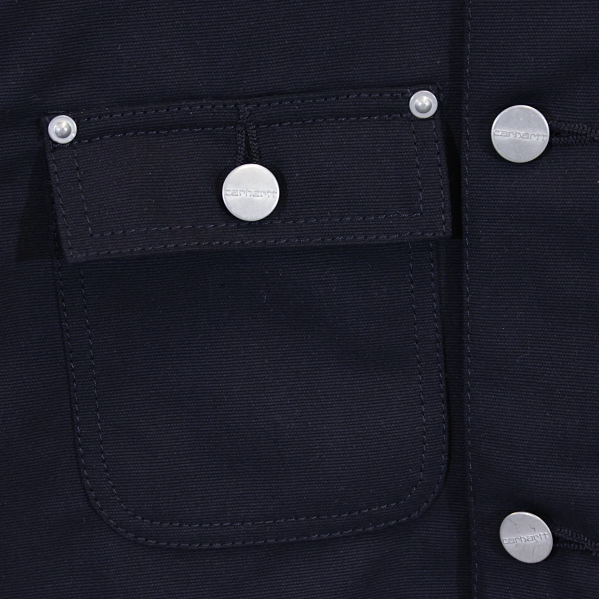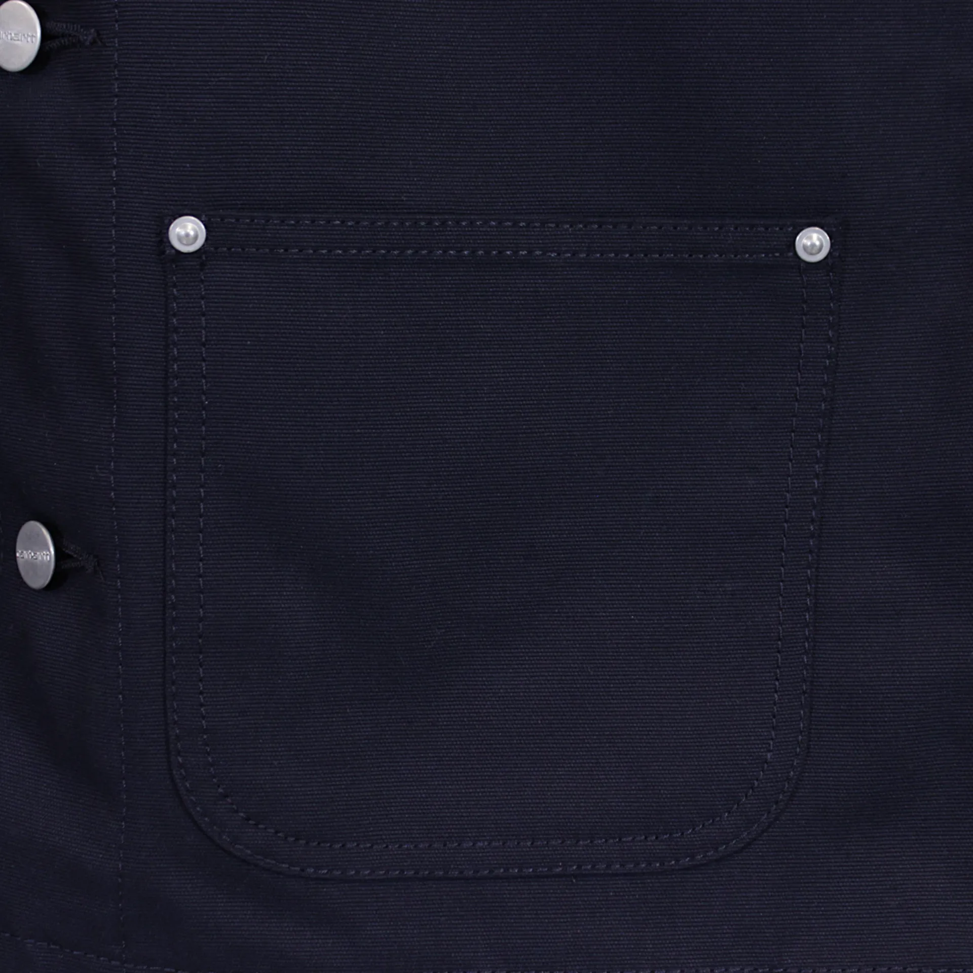 The Michigan jacket is inspired by classic work wear, functional pockets, with one button down for the important bits, simple cuts and easy button down closure.  Whilst maintaining it's heritage it has been adapted for a more stylish finish, Carhartt branded buttons and a woven badge on the breast pocket, tailored to fit the modern man with darts at the sleeves for on the run alterations to cuff size.  Made from 100% Cotton Hubbard 9oz canvas this sweet looking jacket is comfortable and tough.