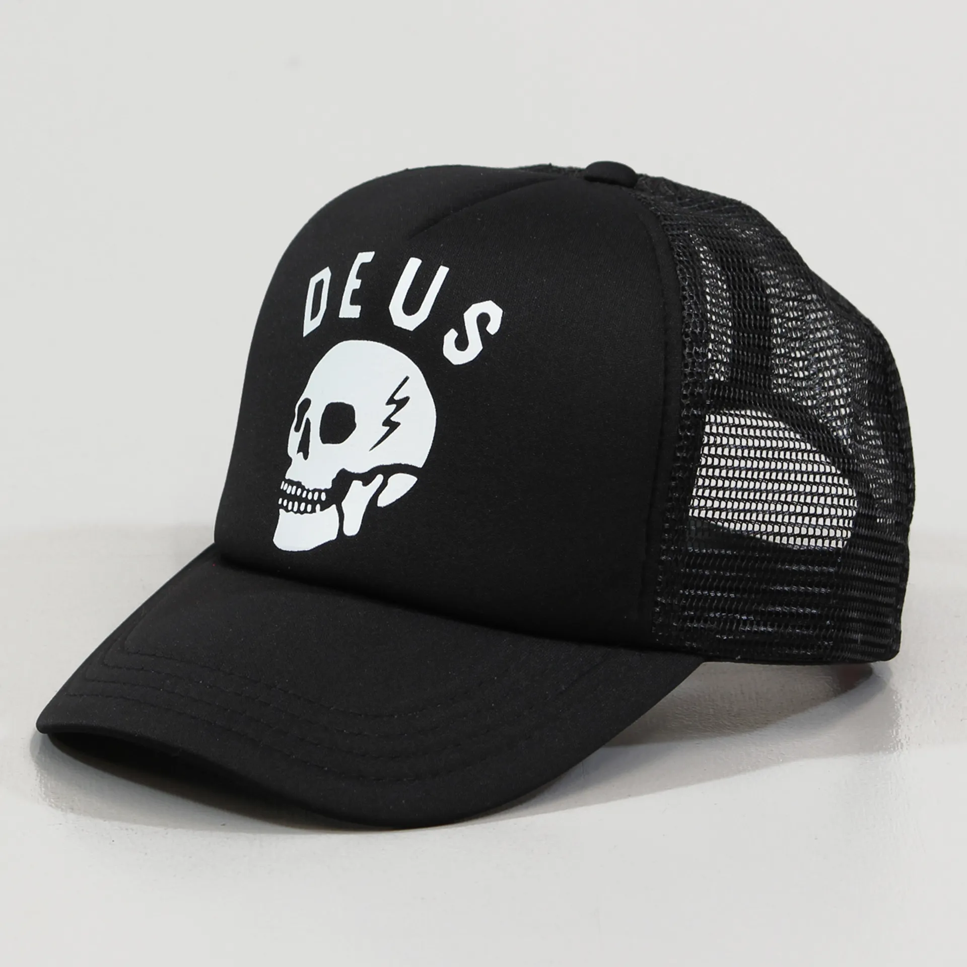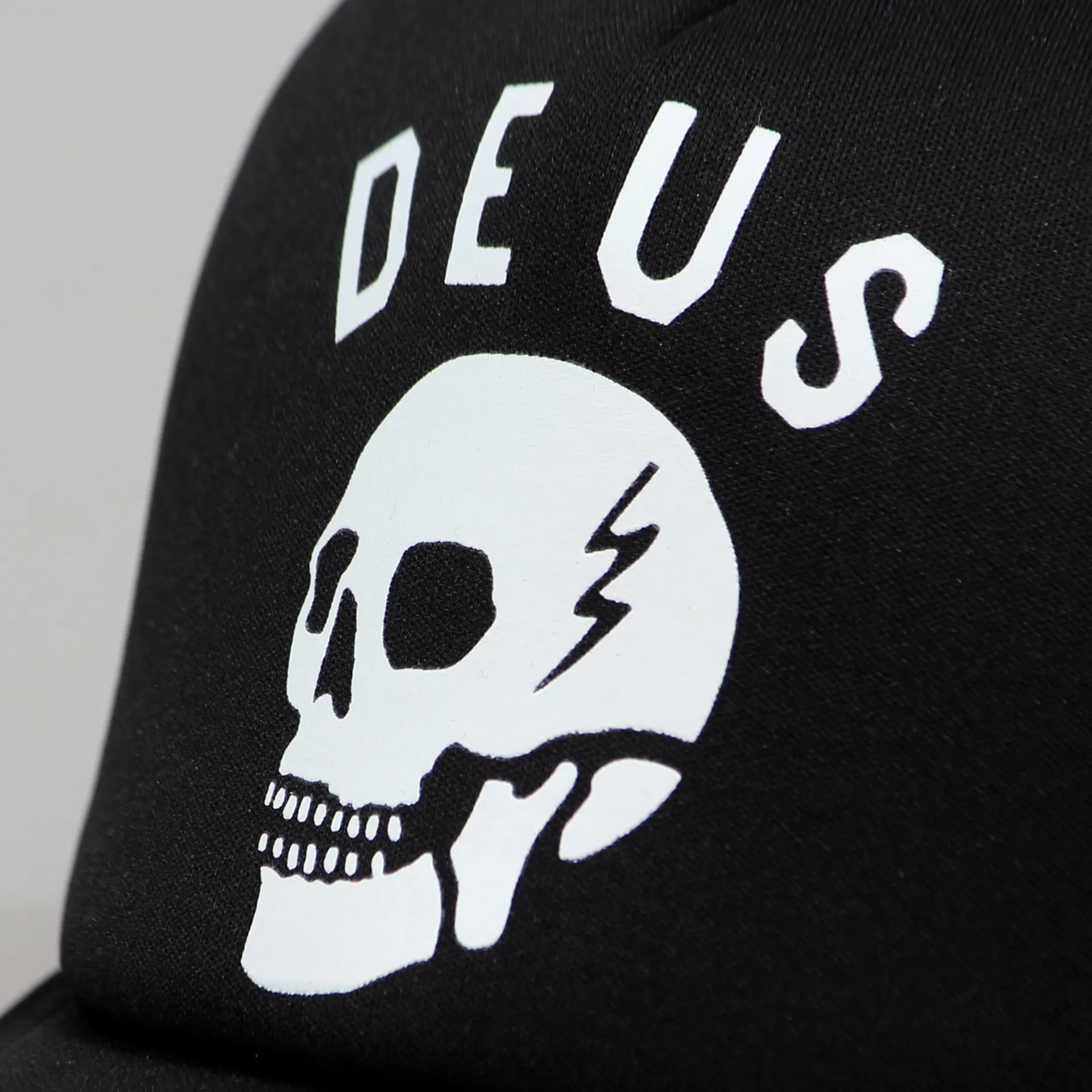 Deus Ex Machina's menacing Canggu Skull on a traditional mesh trucker