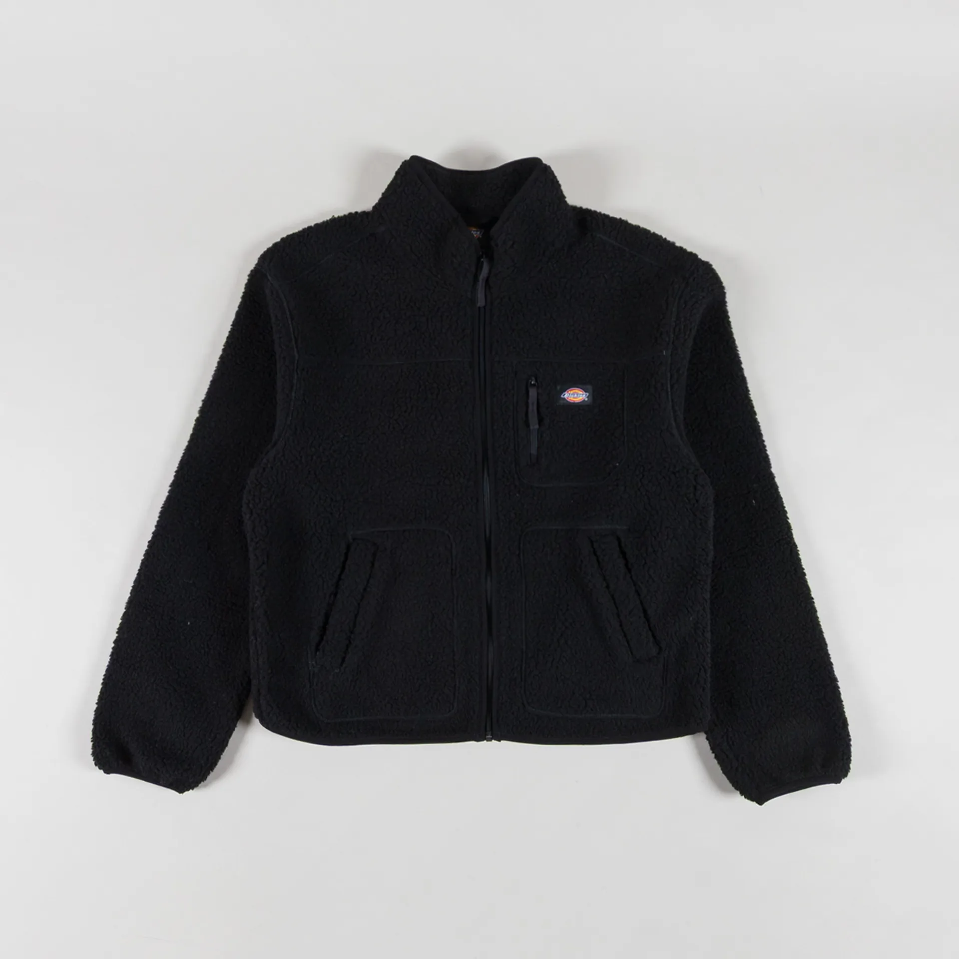 A fleece jacket from Dickies womenswear collection, cut in a regular fit for everyday comfort and constructed from ultra-soft popcorn fleece, comprised of 100% polyester. It features a full zip-through front, leading to a classic stand collar, with elasticated cuffs, a straight hem and three zipped pockets across the front. The design is complete with the signature woven Dickies logo at the chest.
