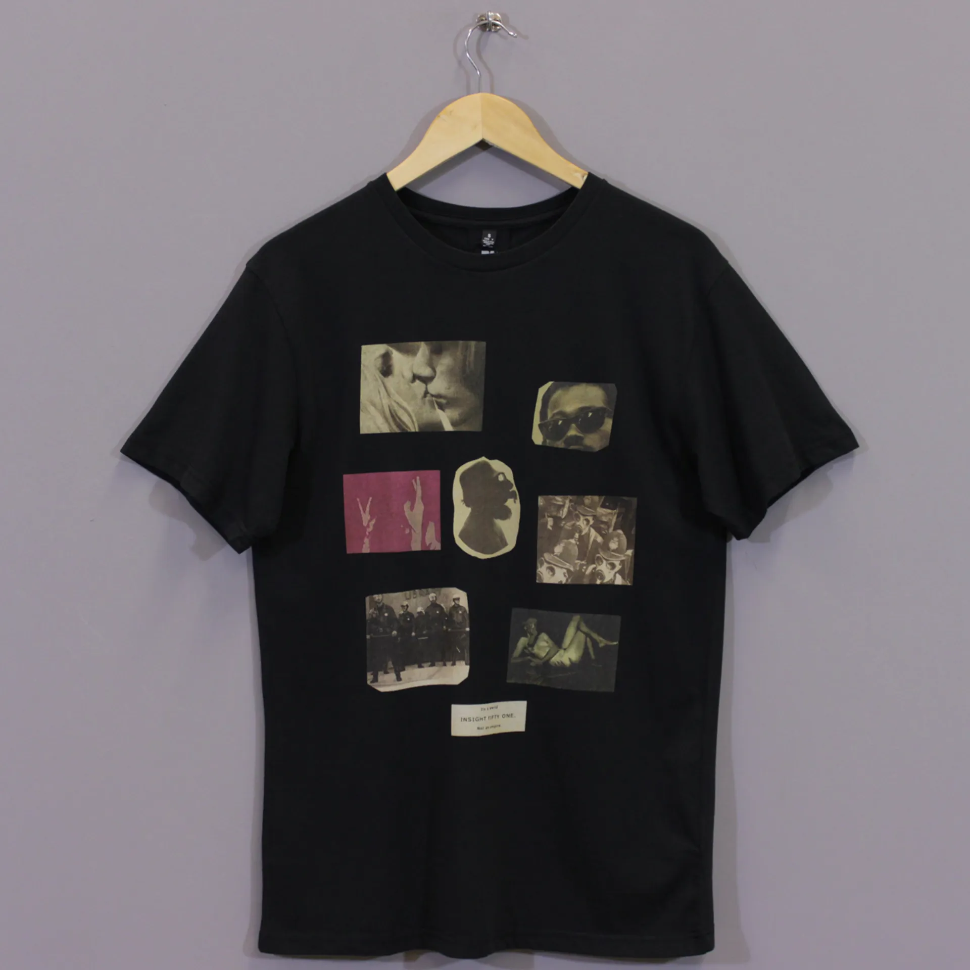 An Insight short sleeve t shirt made from 100% cotton with a Photo Collage print at the front on a Floyd black colour.