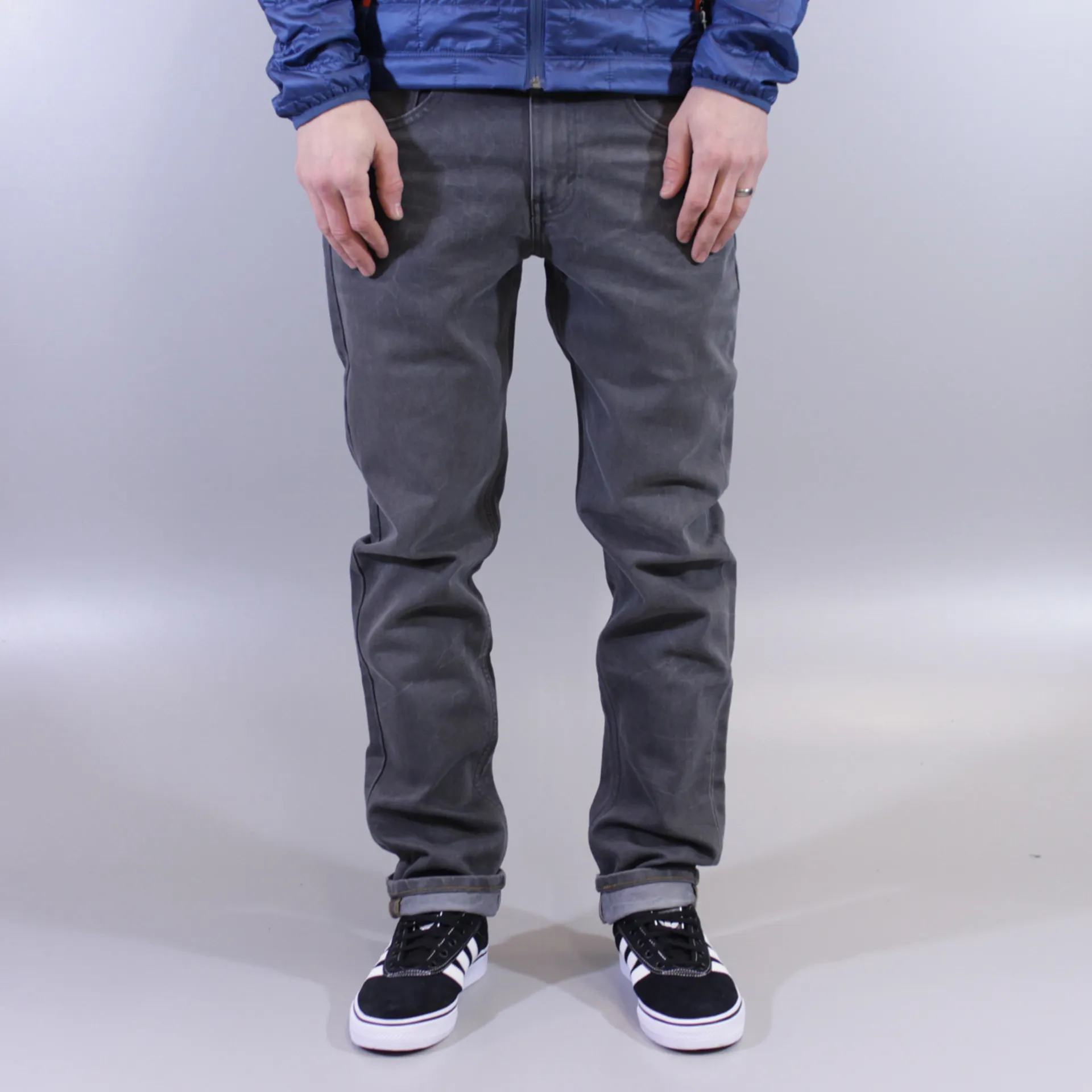 "With strength and ease they always please" is their claim, and I'm inclined to believe it.  The Cotton, Cordura and Lycra blend denim in the classic 5 pocket 513 slim cut provides, comfort, fit a durability in one, while the reinforced stitching and bar tacks in vital stress points ensures you can skate hard and preserve your modesty.  Finished up with a small woven Levi's tab on the rear pocket and a leather effect sizing guide on the waist band, as is expected from Levi's, perfection.