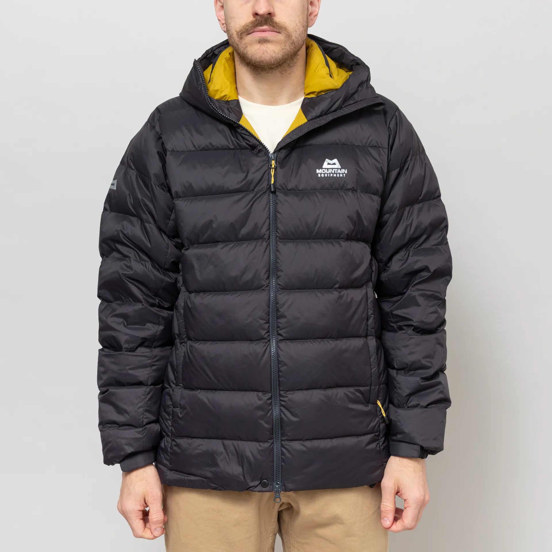 It features a two-way zip-through front, leading up to a mountain-insulated hood with an integrated collar, it's adjustable with two cords at the front and a rear tab adjuster. The cuffs are adjustable with velcro and the two handwarmer pockets stay secure with zip closure. There's also a single internal pocket, ideal for your keys, phone etc. The design is finished off with Mountain Equipment logos to the chest and centre of the back