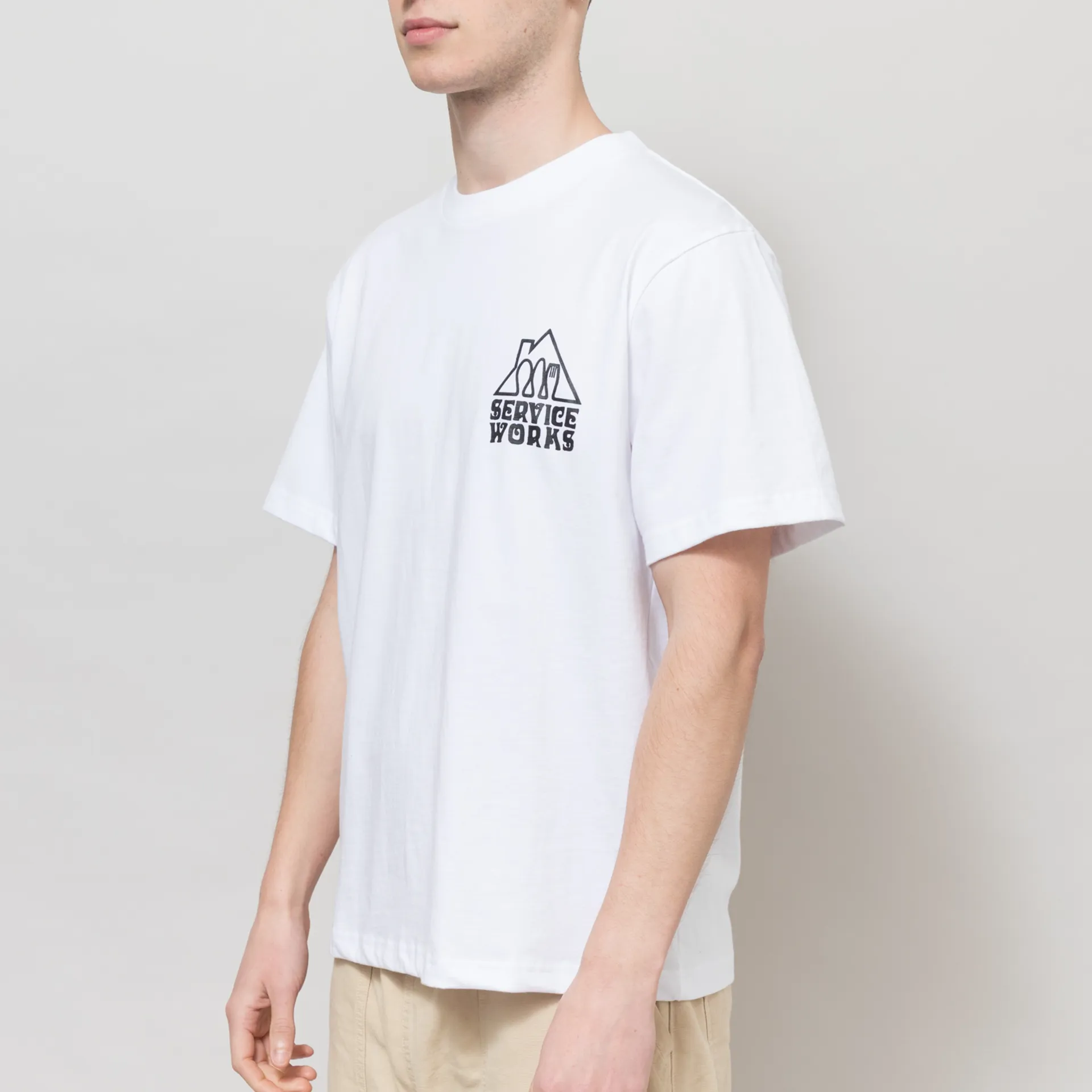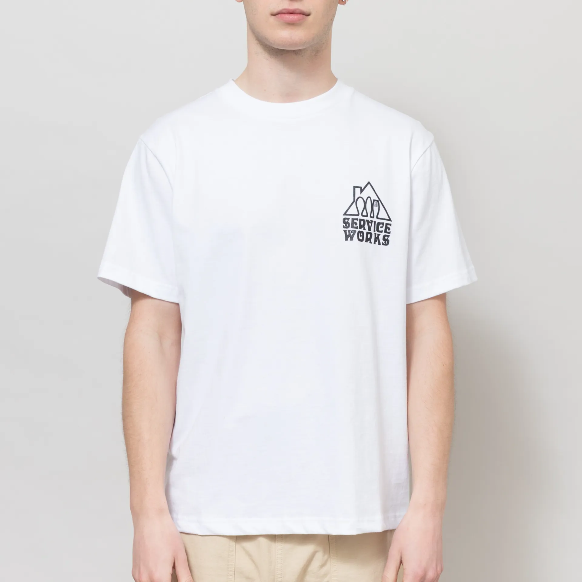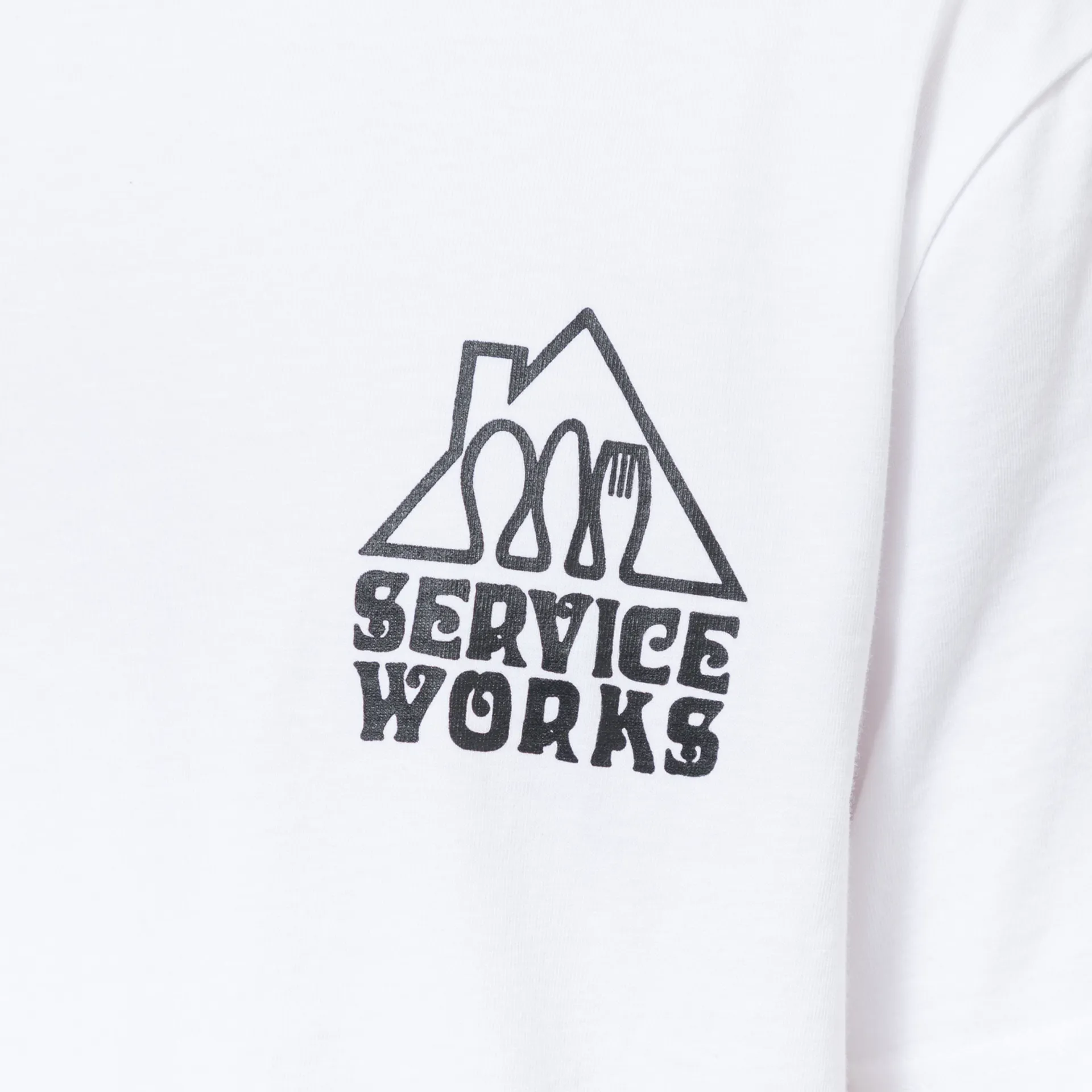 A graphic tee from Service Works, constructed from 250GSM GOTS-certified organic cotton and cut in a regular fit for everyday comfort. It features a ribbed crewneck, a straight hem and is complete with a cool Service Works logo at the chest.