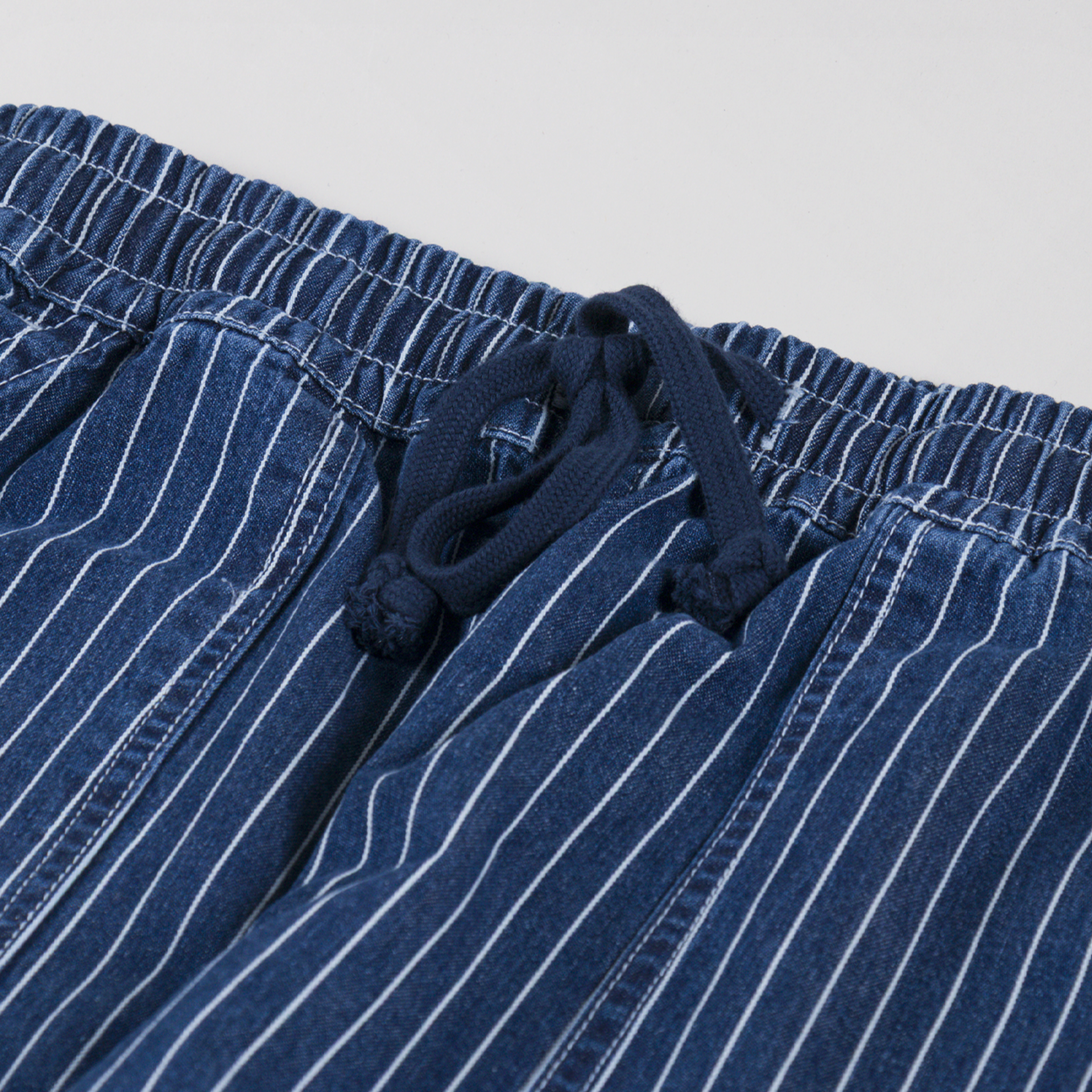 The Denim Chef Pants from Service Works are cut in a relaxed fit with a straight leg, constructed from 100% organic cotton denim fabric. These pants feature an elastic waistband, adjustable drawstrings at the front, two front fatigue pockets and two classic patch pockets to the back. Finished with the signature orange Service Works woven logo patch to the rear.