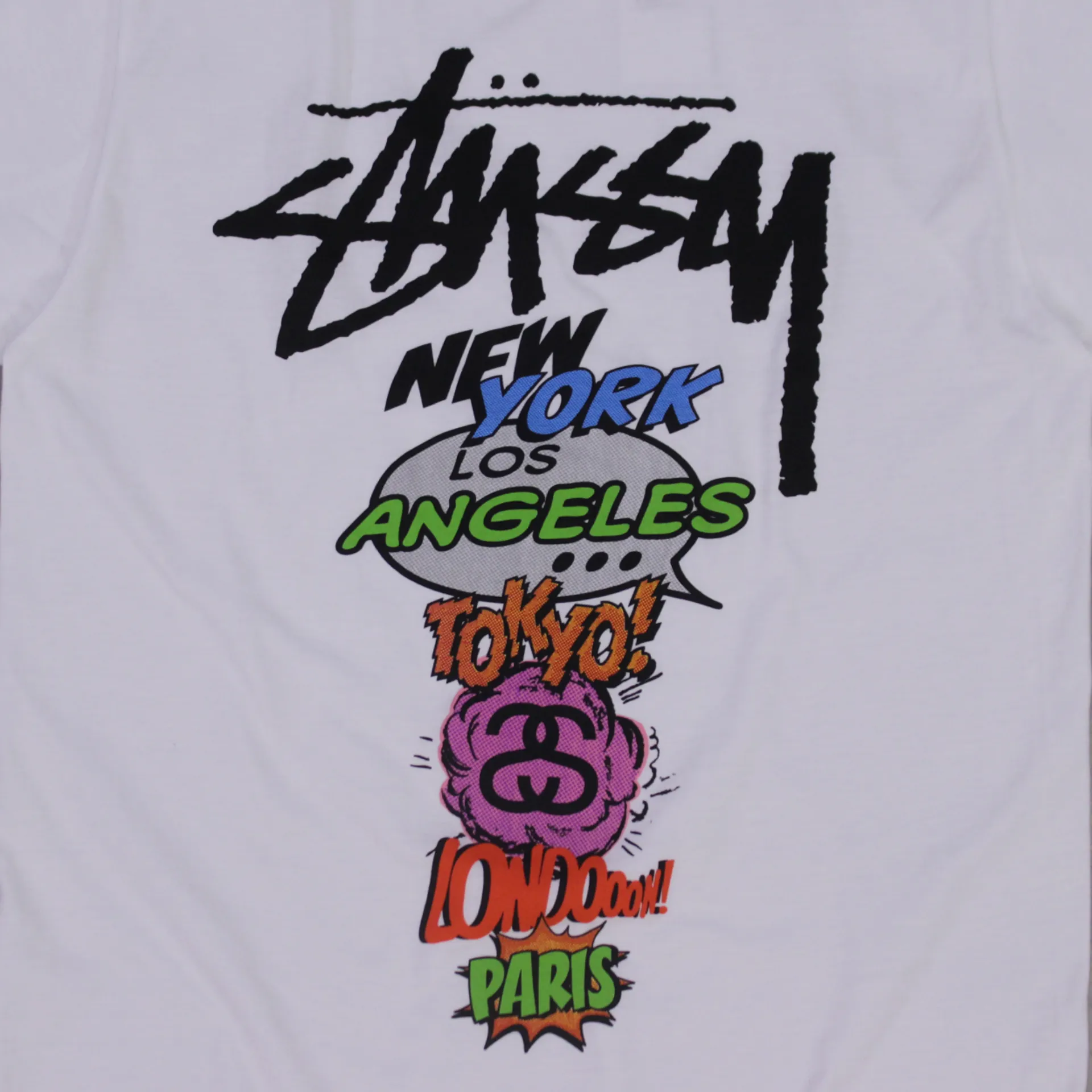 The Stussy World Tour design has been given a touch of pop art, same cities, different vibes.