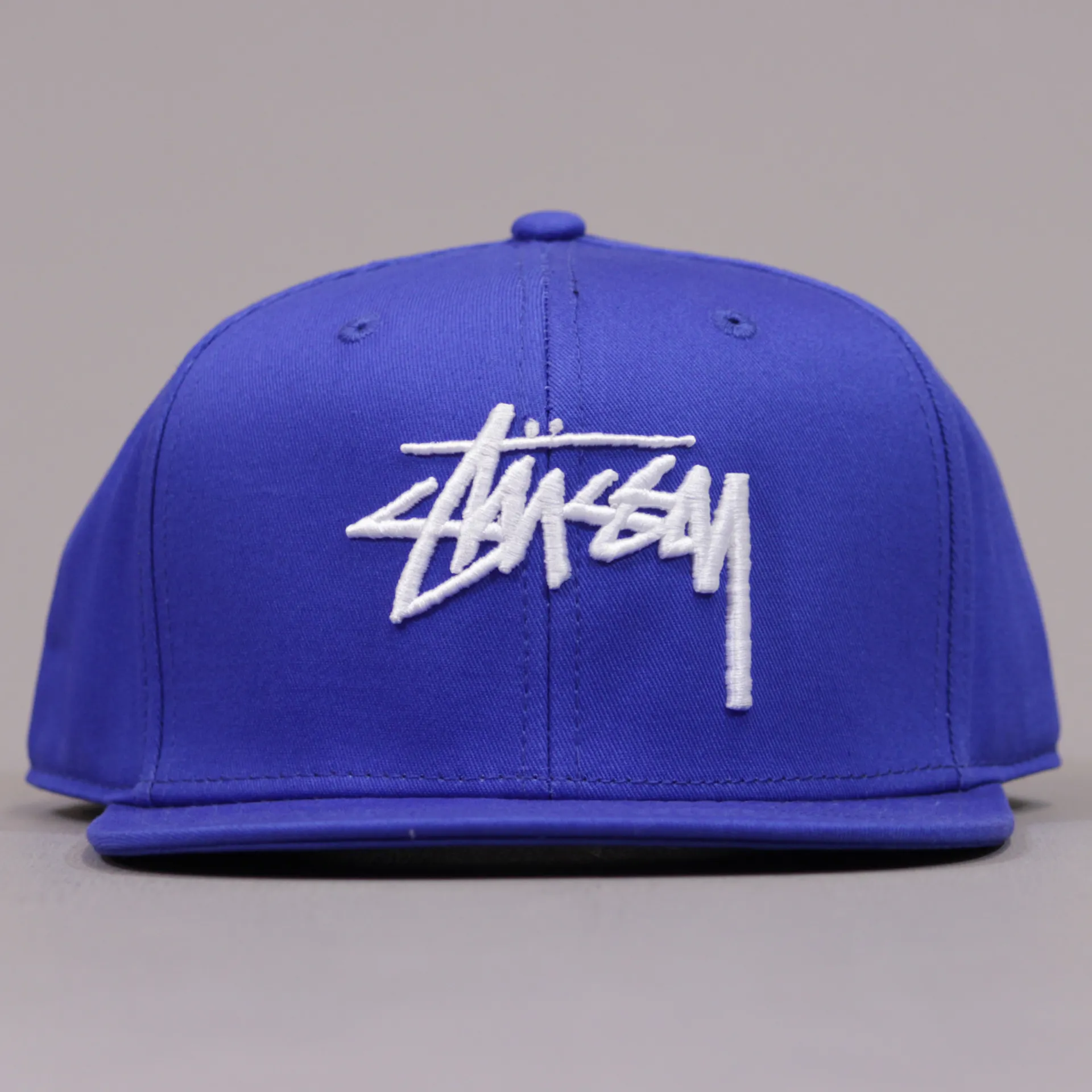 Stussy Stock Snapback Ballcap baseball cap in blue and white.