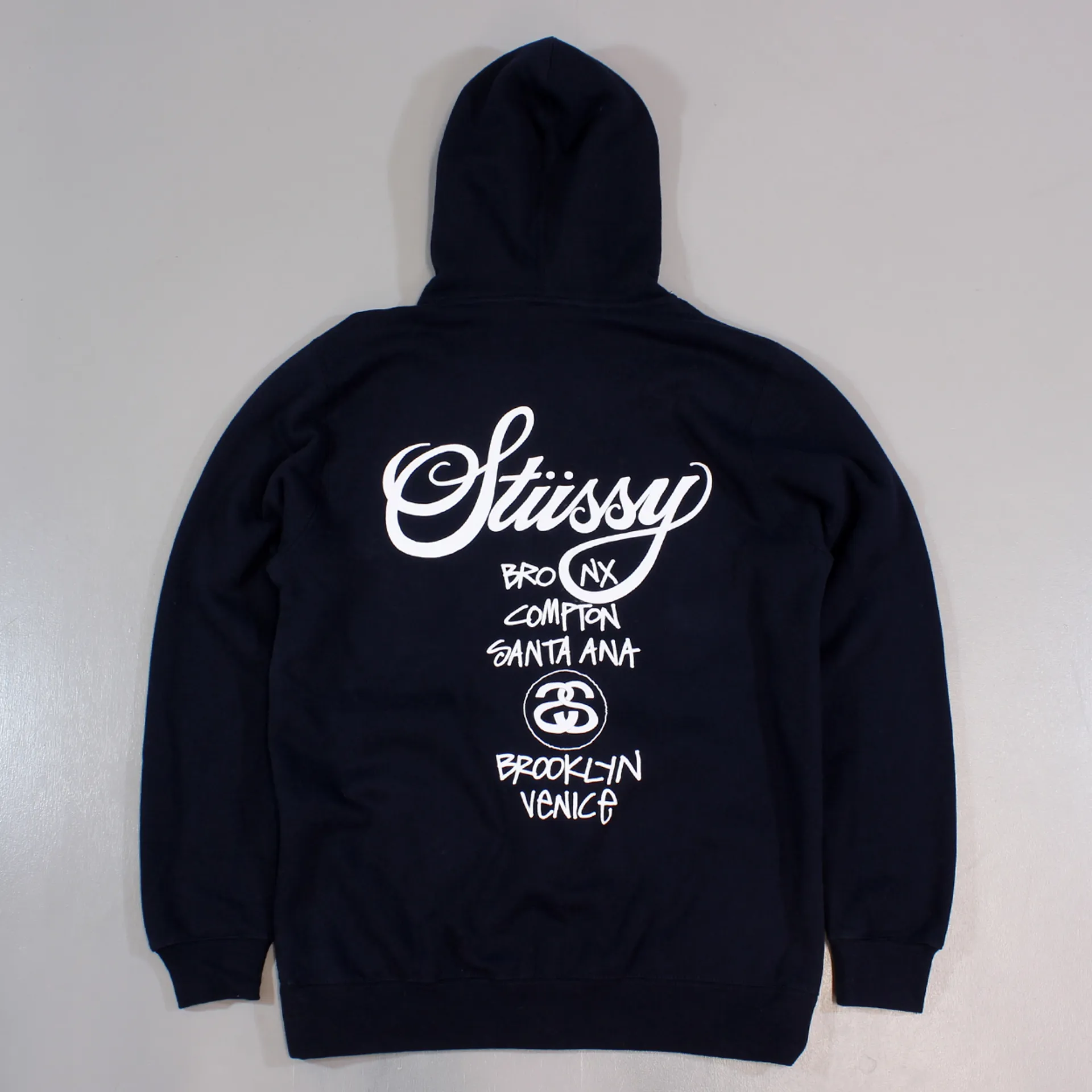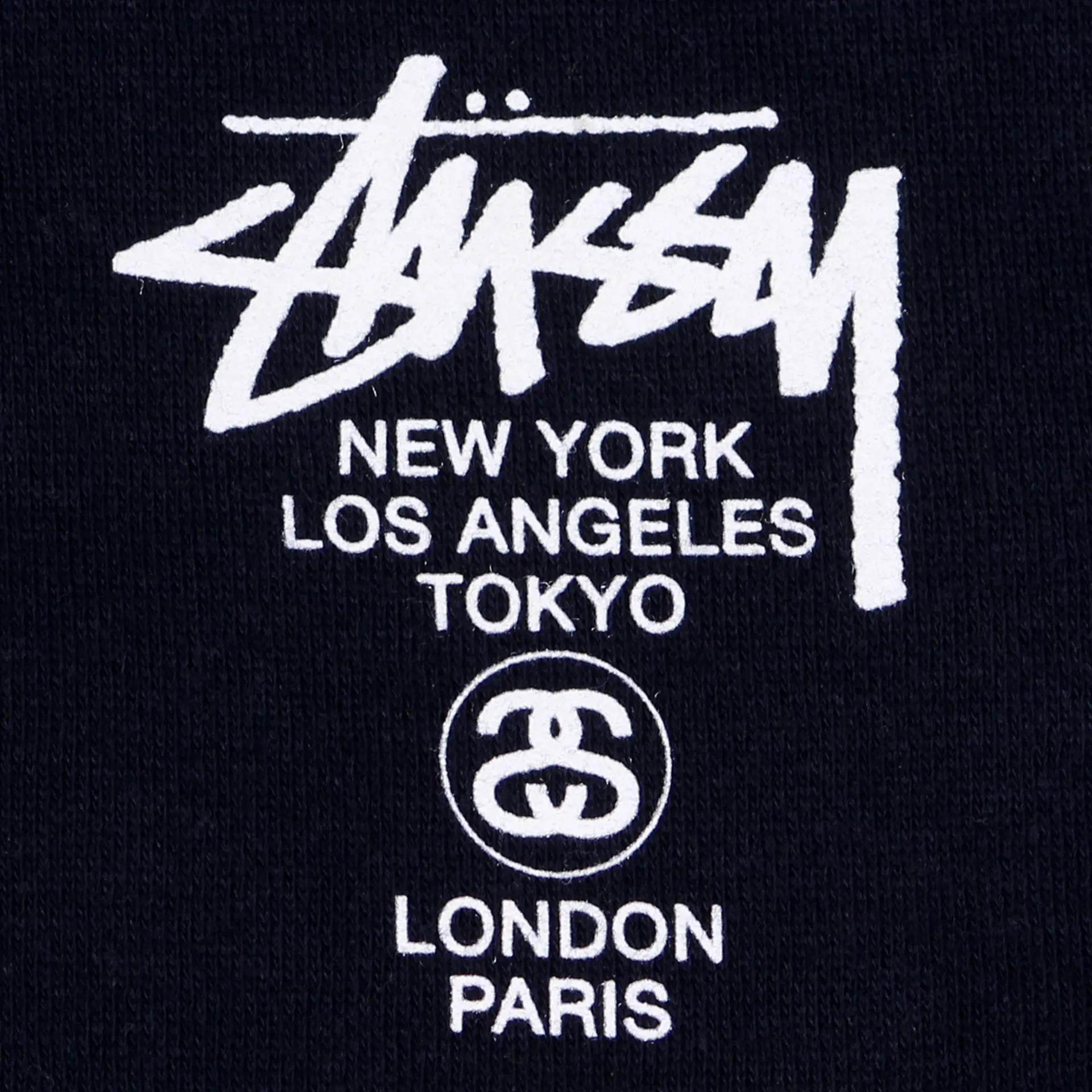 Stussy are promoting the World Tour once again on this navy hoodie to spread the news to the world.