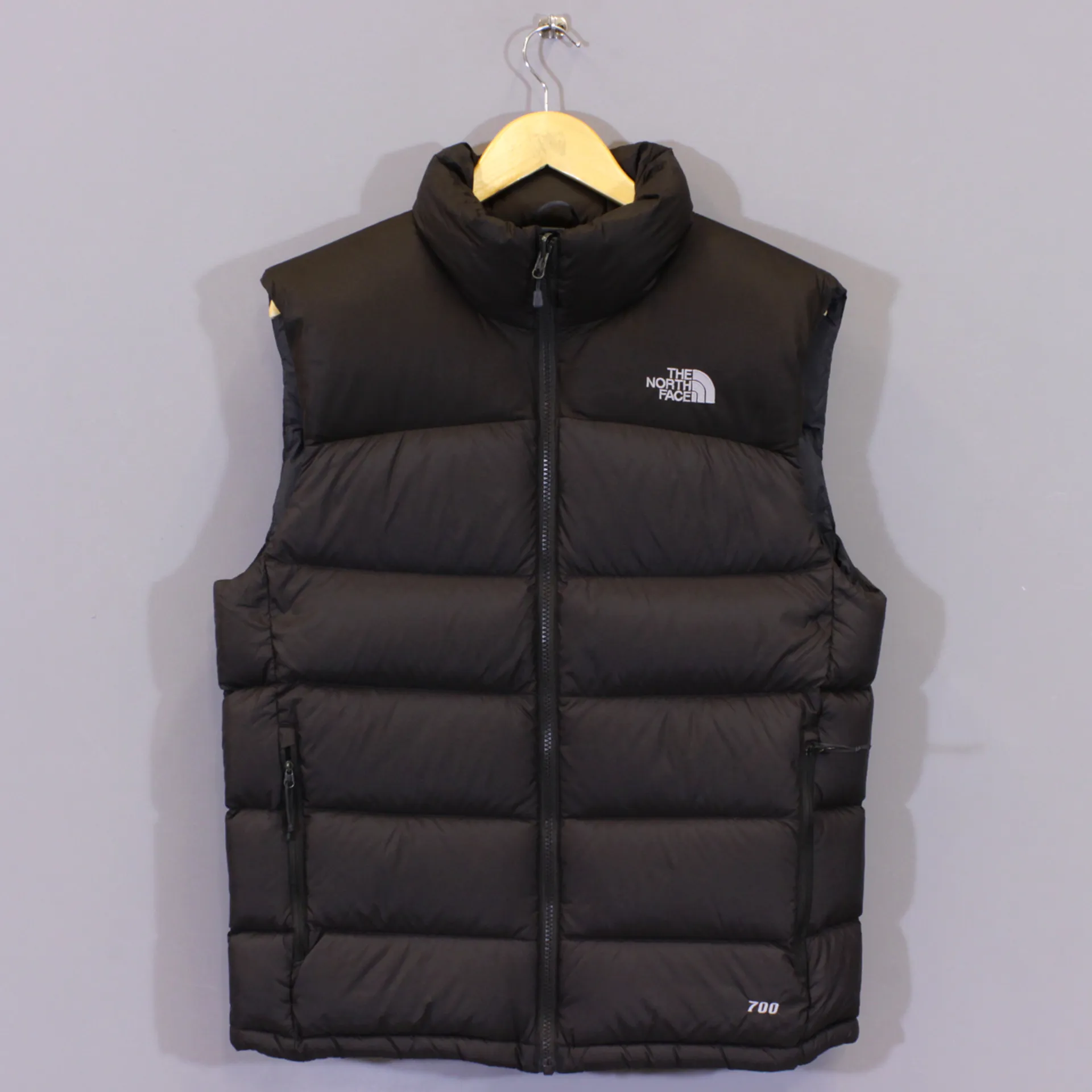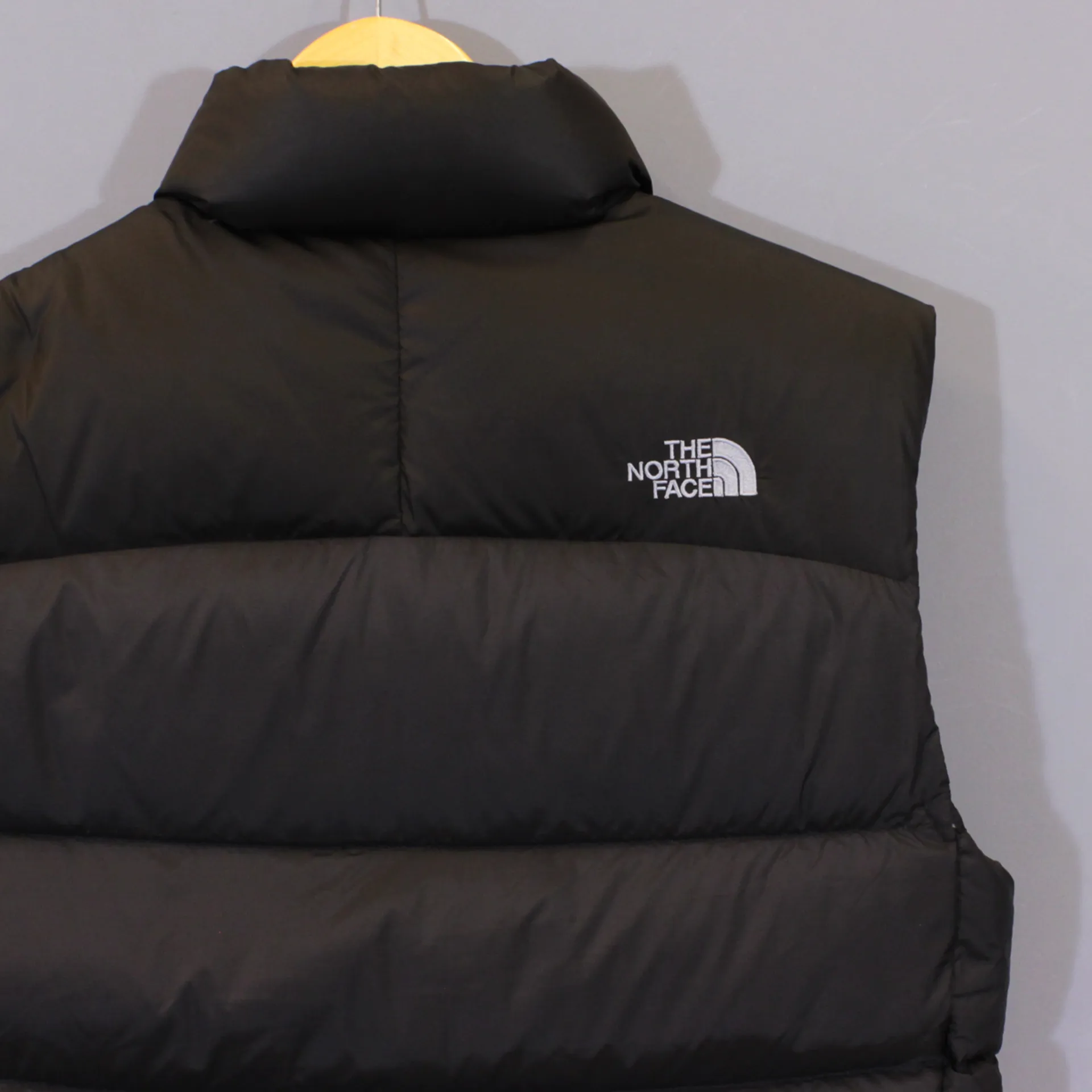 • The North Face logo on the front chest and back of should