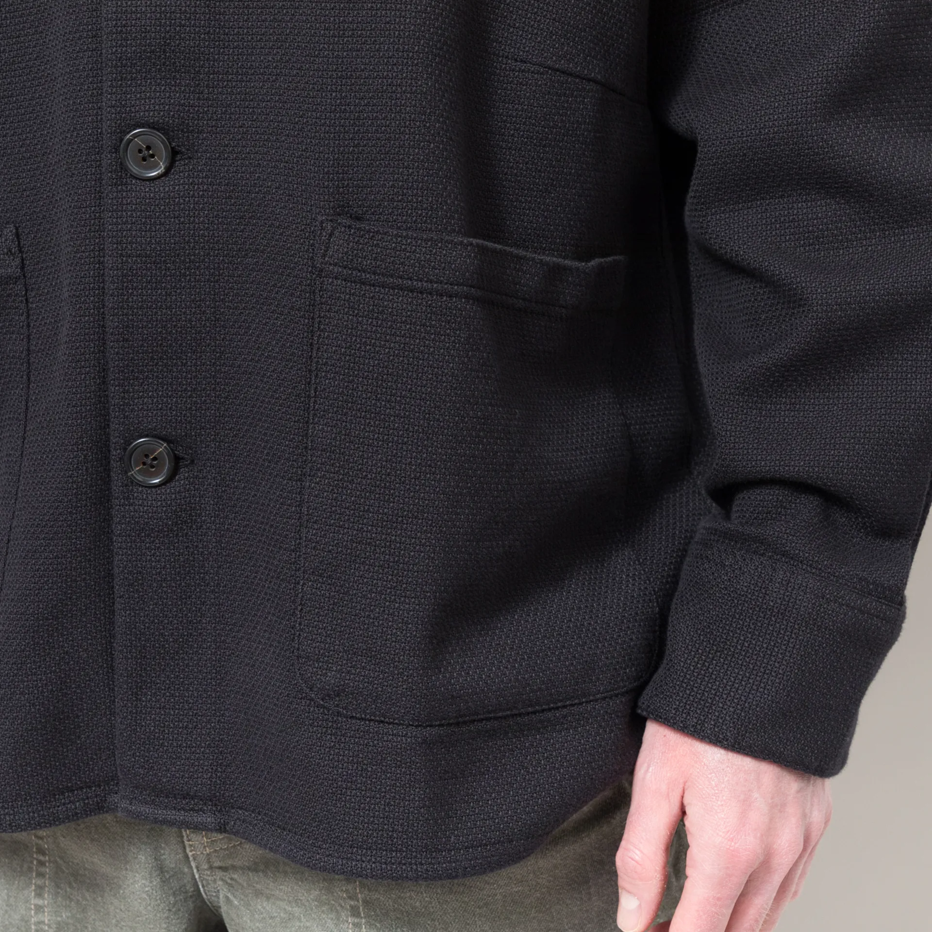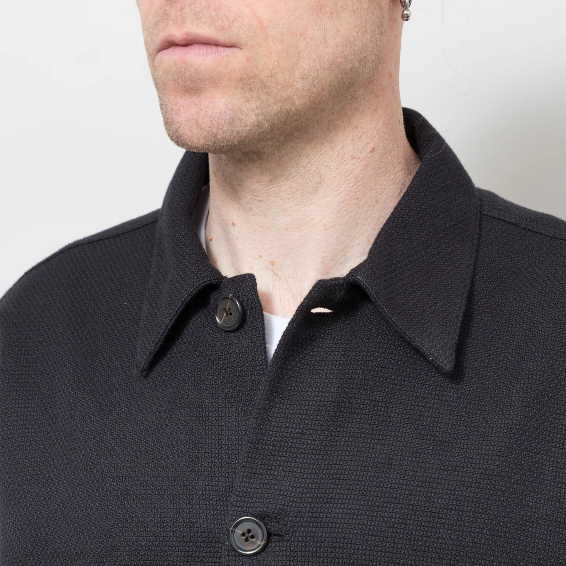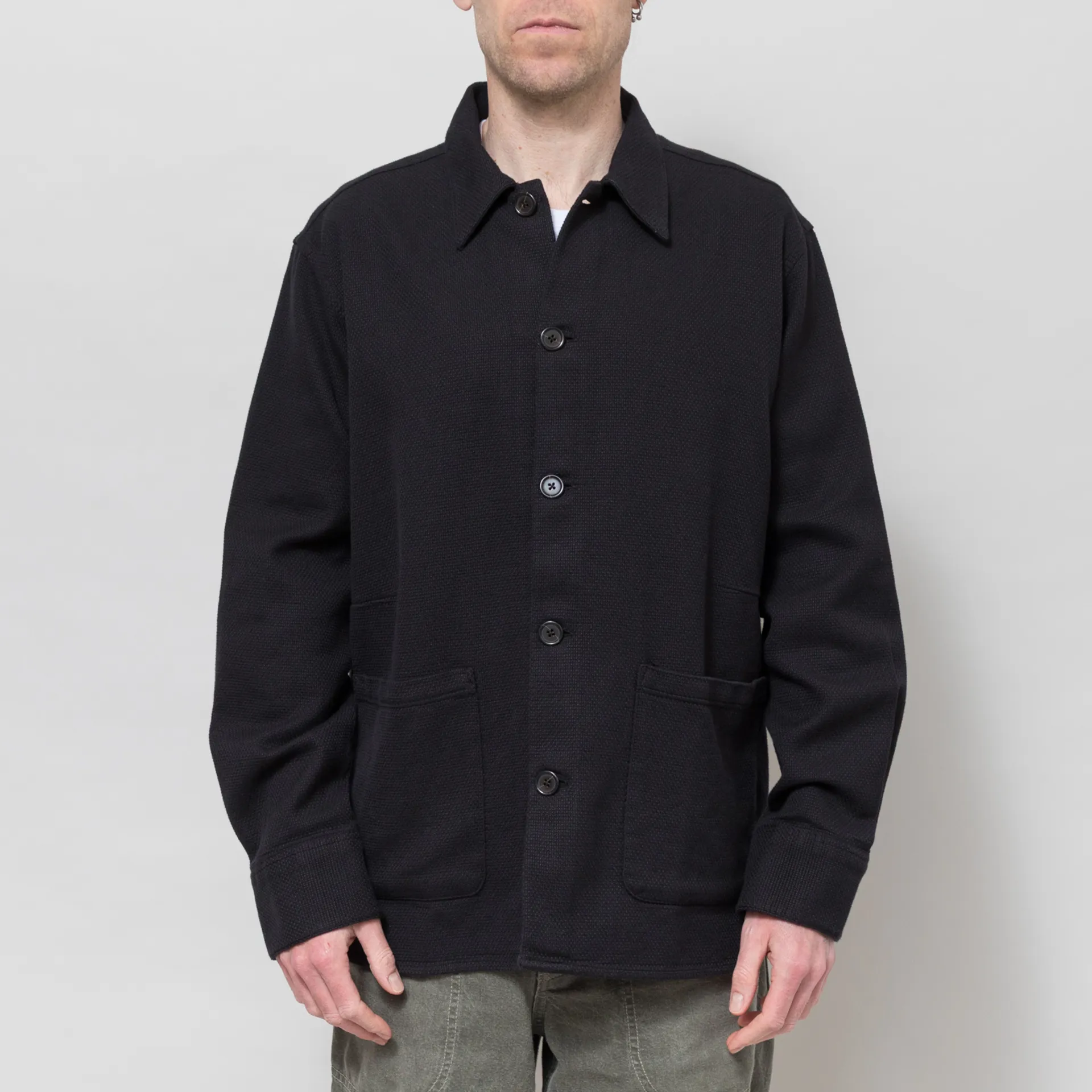 The Travail Overshirt from Universal Works is cut in a loose fit for a casual silhouette, constructed from Kendal Cotton, a weighty fabric with a loose, open weave and a dry hand feel.