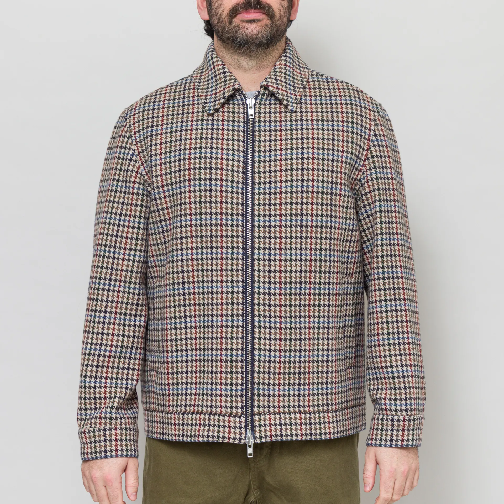 The Heath Jacket from Wax London is cut in a regular, boxy fit for everyday comfort. It's constructed from an Italian compact wool blend with an all-over houndstooth design and fully lined with 100% viscose. Featuring a zip-through front, leading to a classic collar, with a straight hem, two hand pockets and a single internal pocket.