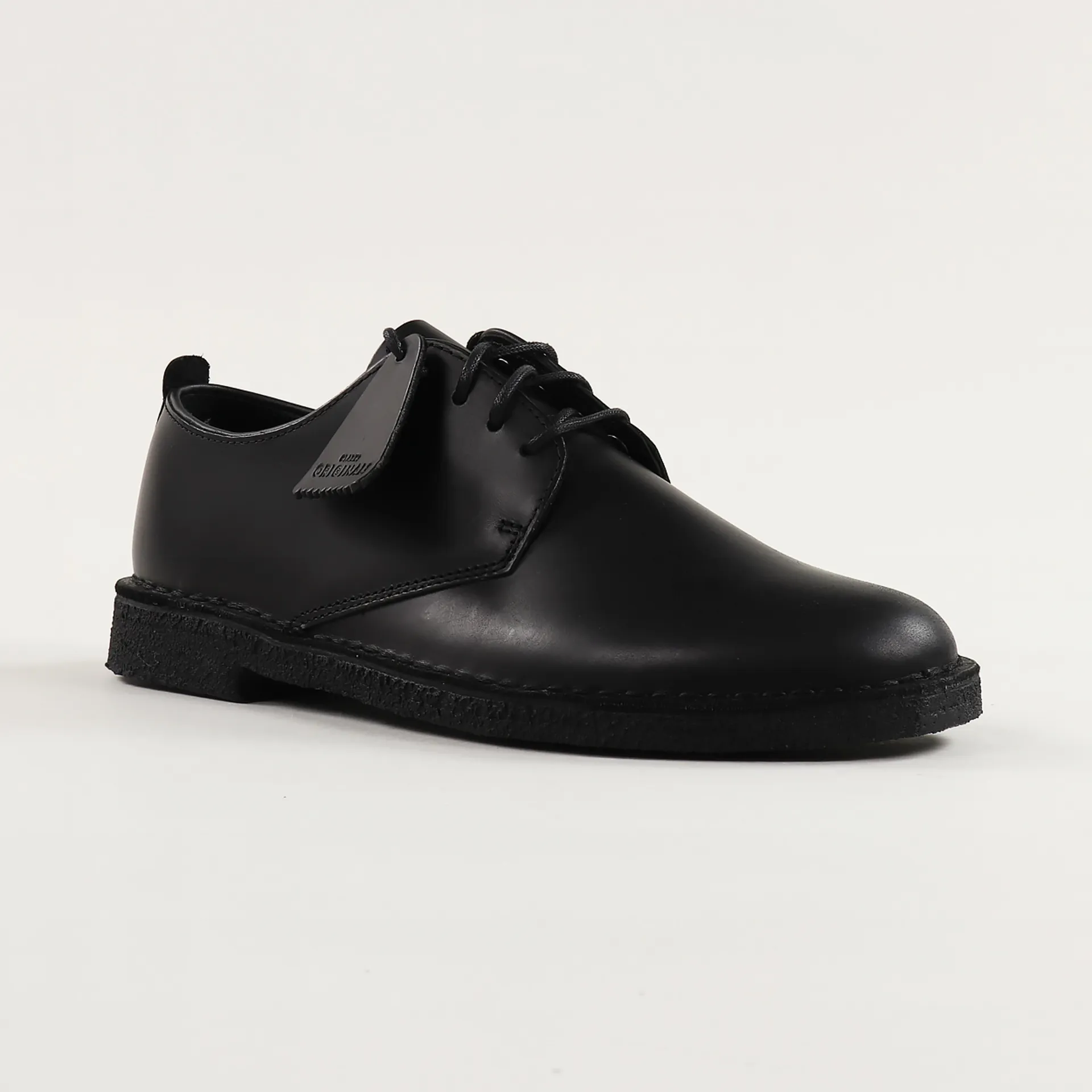 A pair of shoes from Clarks Originals made from a smooth polished leather with a comfortable lining, padded insole heel and a rubber crepe outsole.