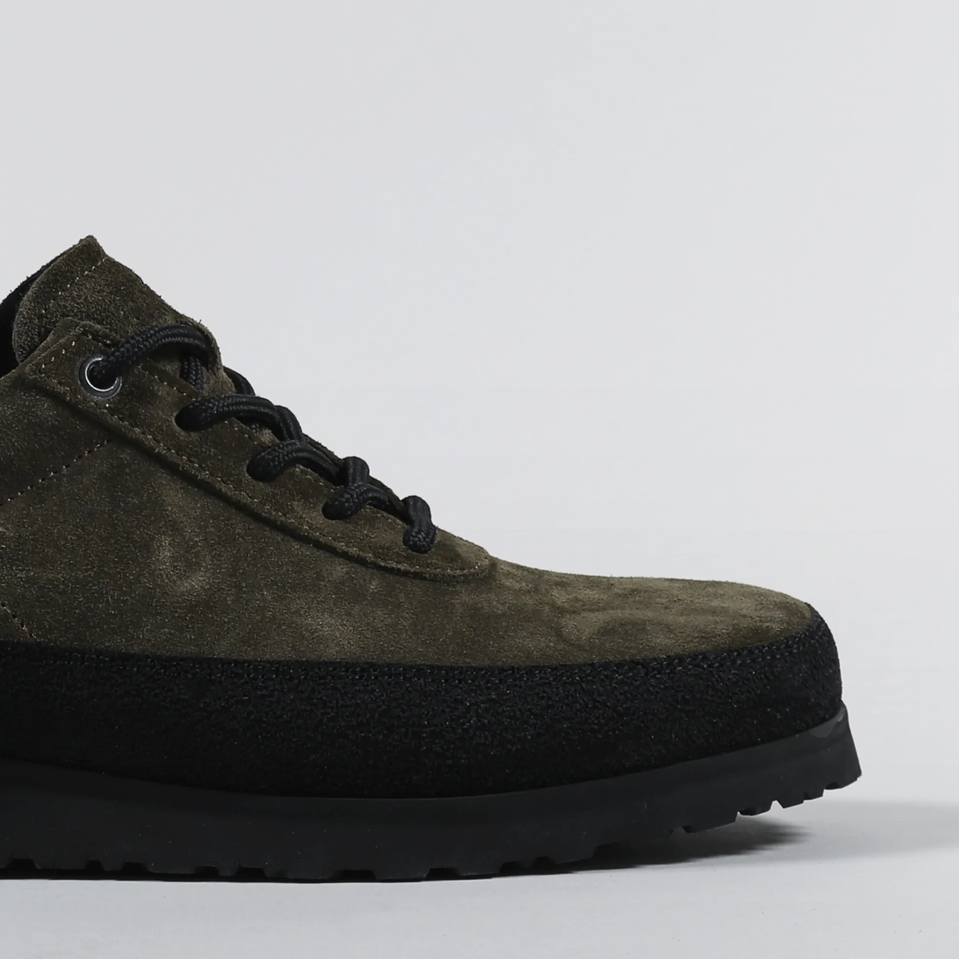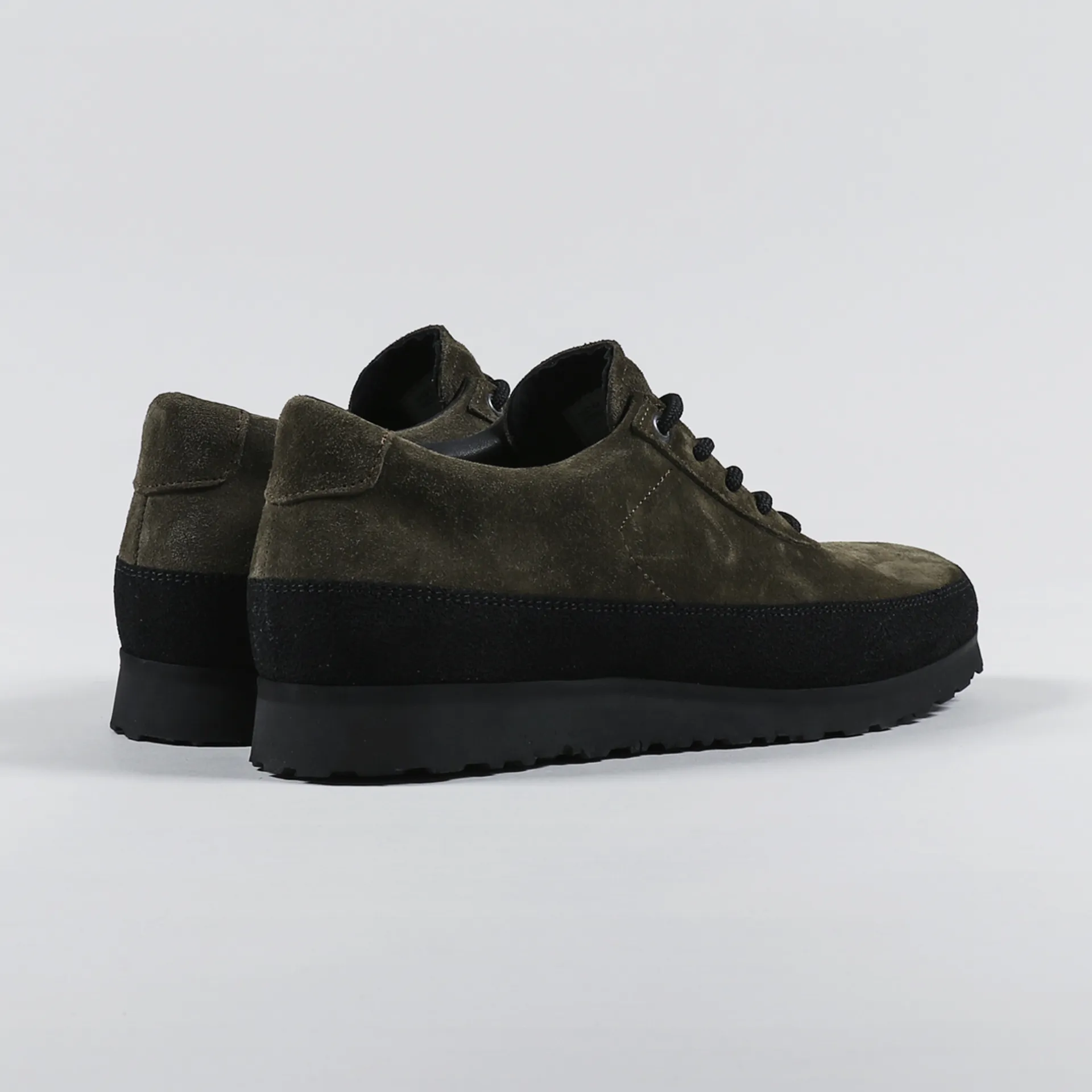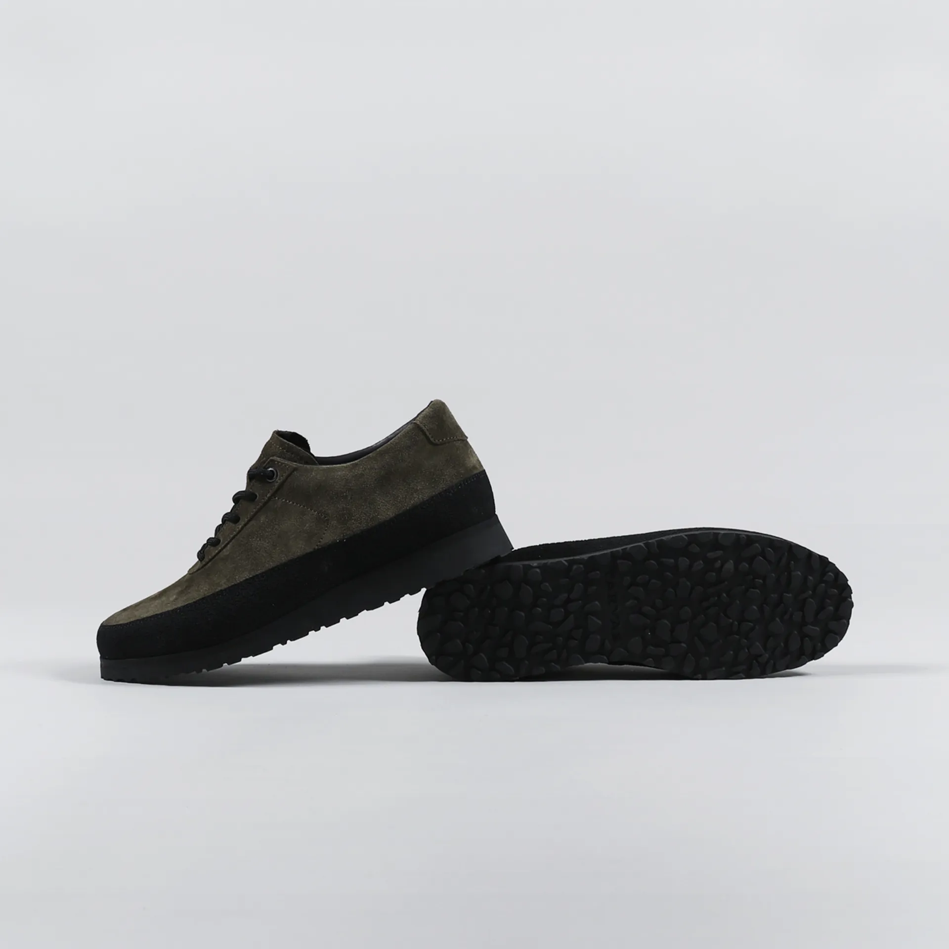A pair of shoes from Finnish footwear label Tarvas, blending city and outdoor environments with a super durable suede upper featuring a padded leather collar and insole, and a rubberised canvas foxing tape.