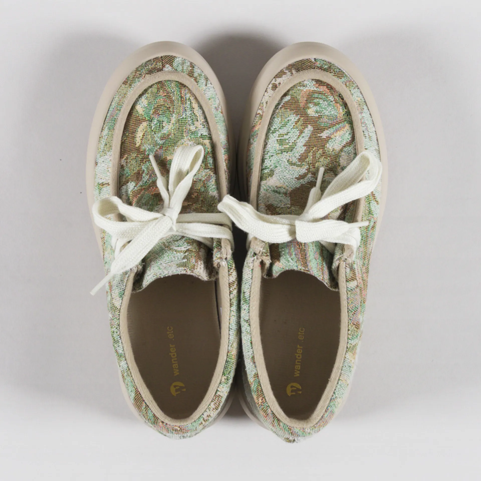 The FD/08 Shoes from the Indonesian brand Wander.etc combine style and practicality, featuring premium polyester jacquard uppers with a floral design, Phylon and rubber outsoles which provide a responsive feel when you walk, great shock absorption and are lightweight. The Nylex insoles provide cushioning and aid the outsoles with shock absorption, helping reduce the impact on your joints and muscles. Finished off with cool chunky laces, and branding to the heel.