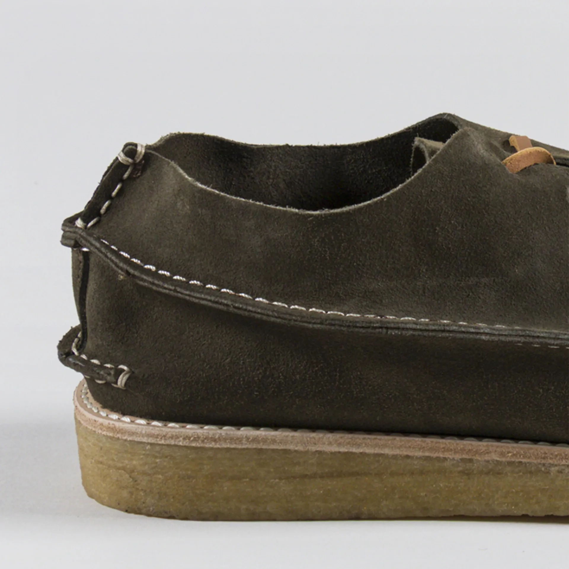 The Alves Suede shoes are crafted with unlined premium suede, made with over 50% fewer adhesives and unnecessary materials than conventional footwear. They have a hand-stitched construction, with clean, simple stitching throughout. The toe-box is wider for natural comfort, the natural crepe sole offers flexibility and they have a vegetable-tanned leather insole that will mold to the contours of the foot over time.