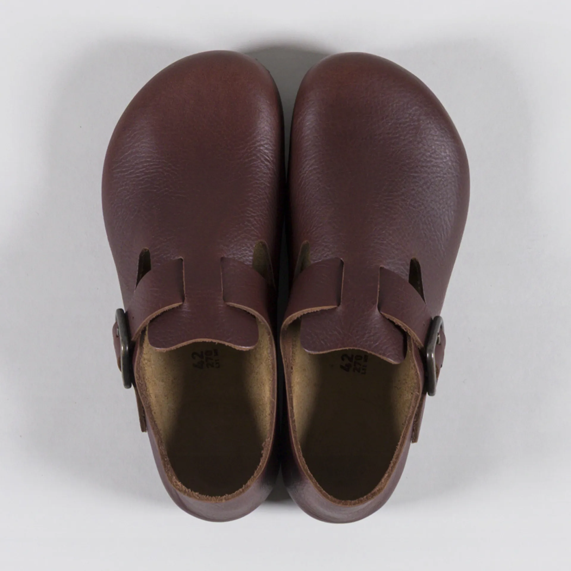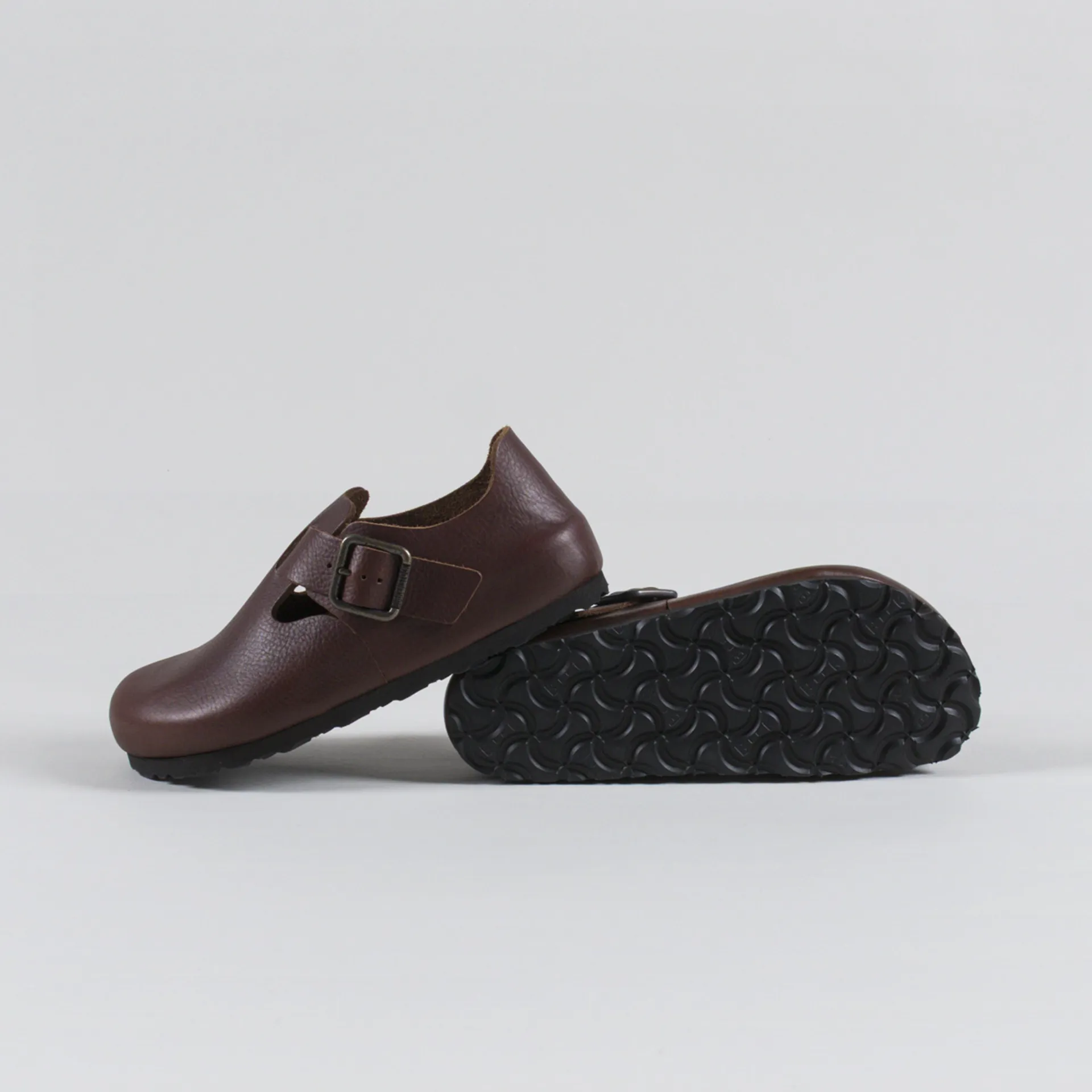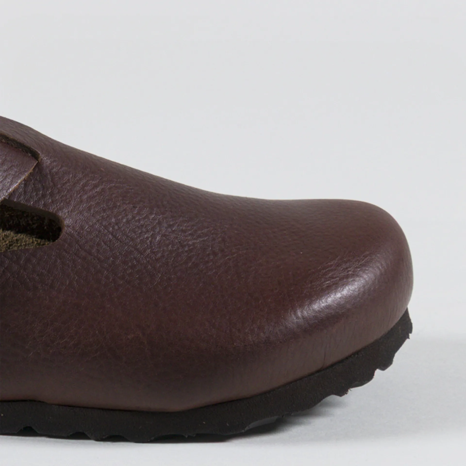 Birkenstocks London Sandal is the encosed version of the Boston clog, made from a premium aniline leather upper