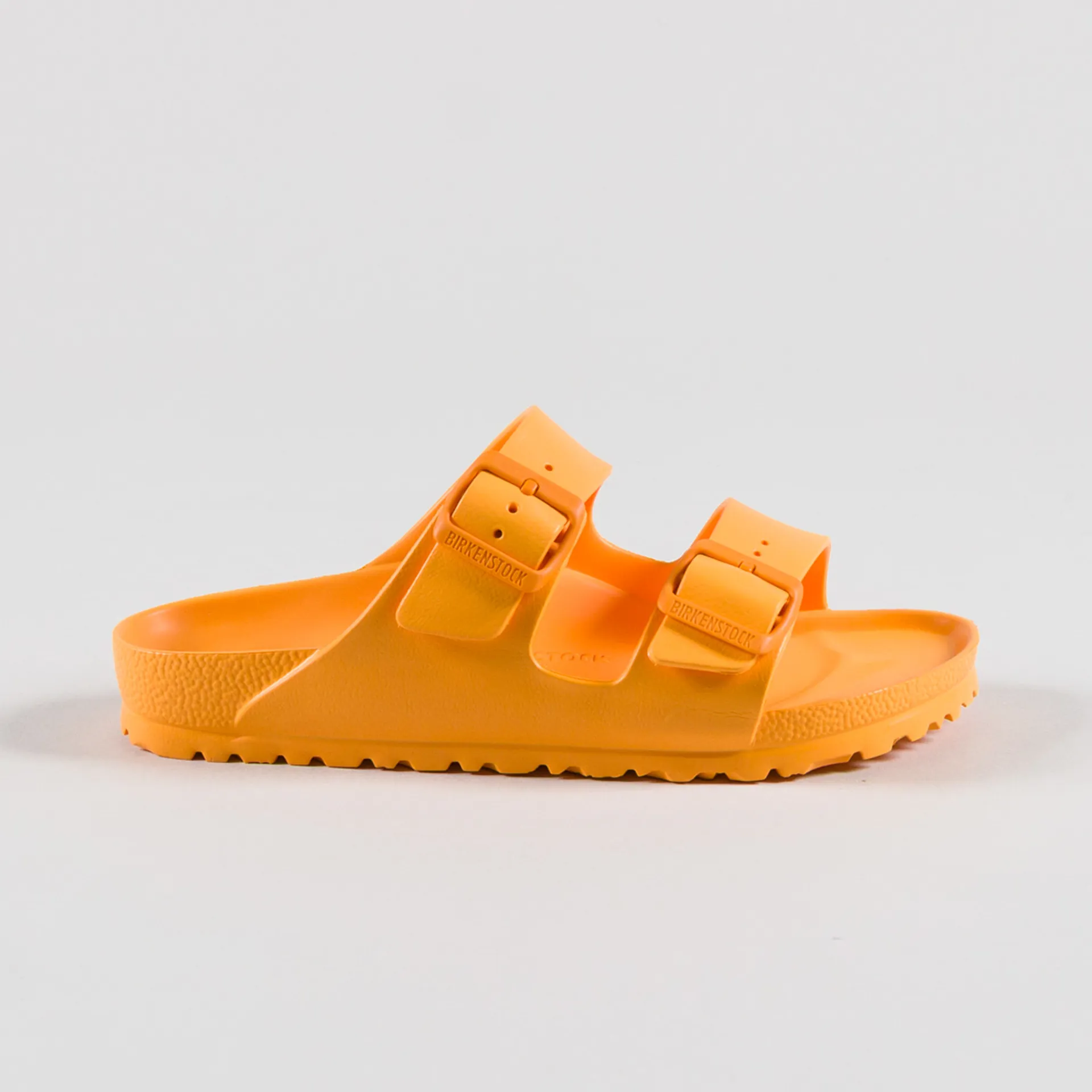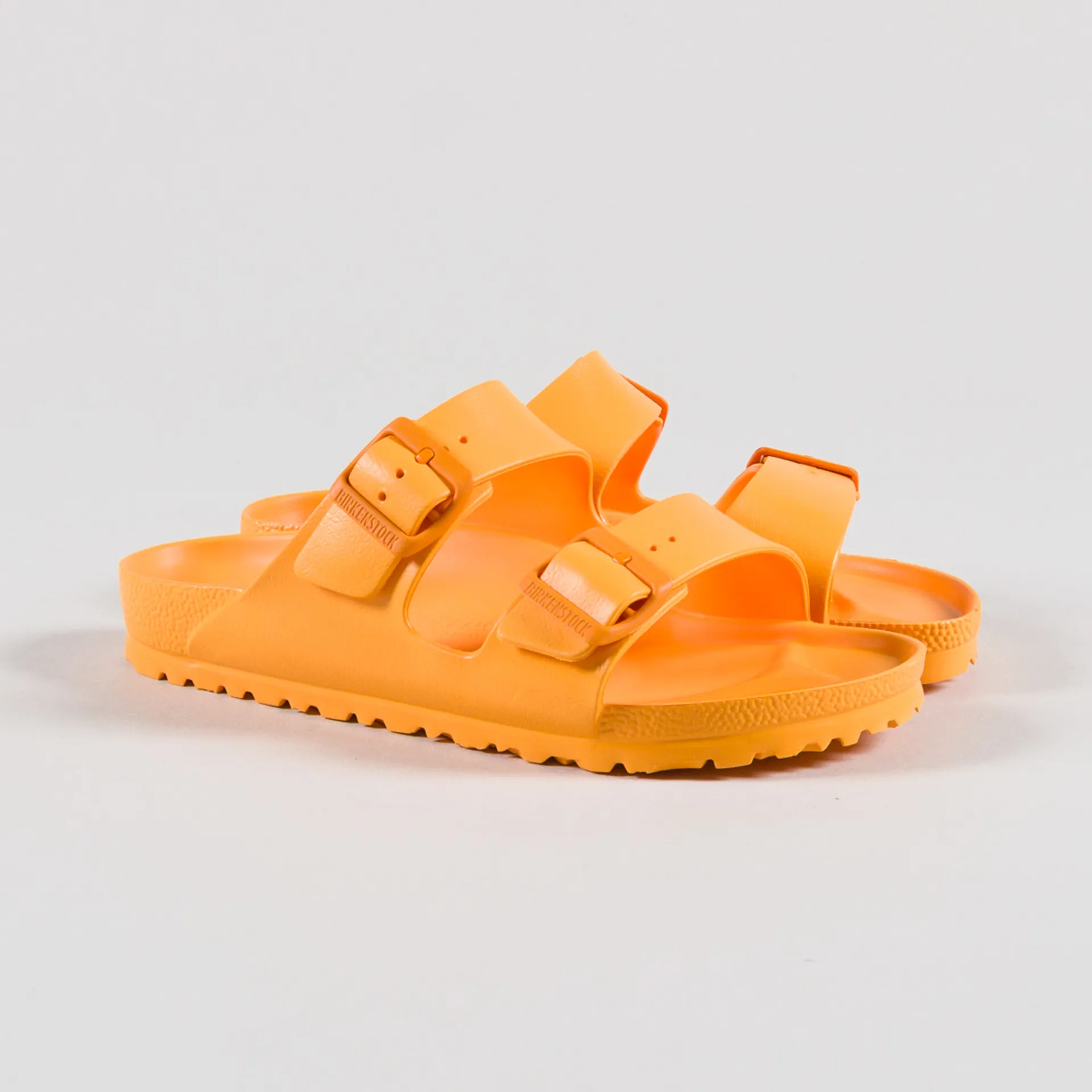 A pair of sandals from Birkenstock made from a lightweight and cushioned EVA with two buckled straps and an orthopedic constructed footbed.