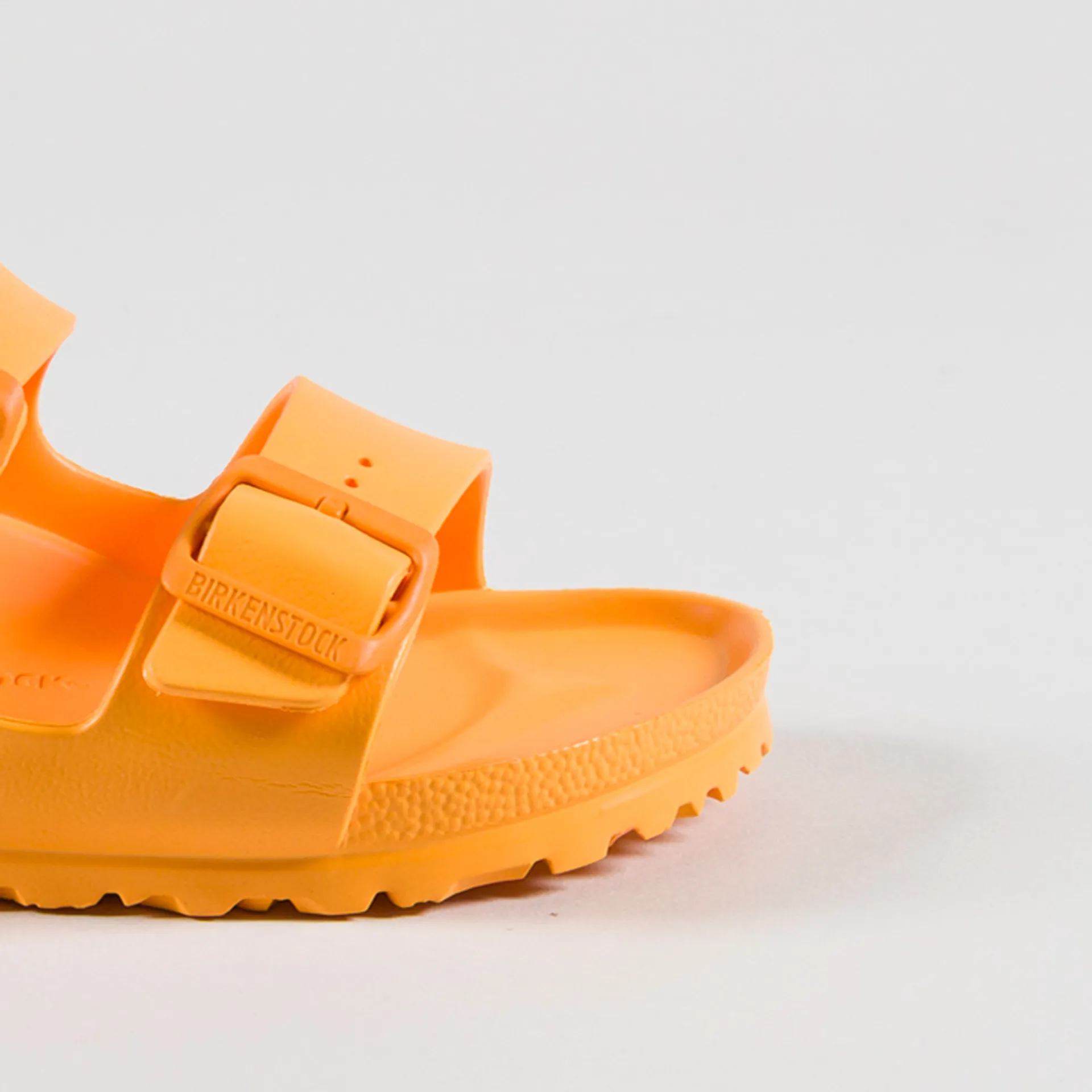 Birkenstock's finest component is easily the moulded footbed which features a deep heel which holds your foot firmly in the natural position, and a heel mould which activates your calf muscles. The midfoot is raised with arch support to provide you with natural stability and it has a toe grip for an enhanced fit. Around the footbed is raised for protection from the ground when walking.