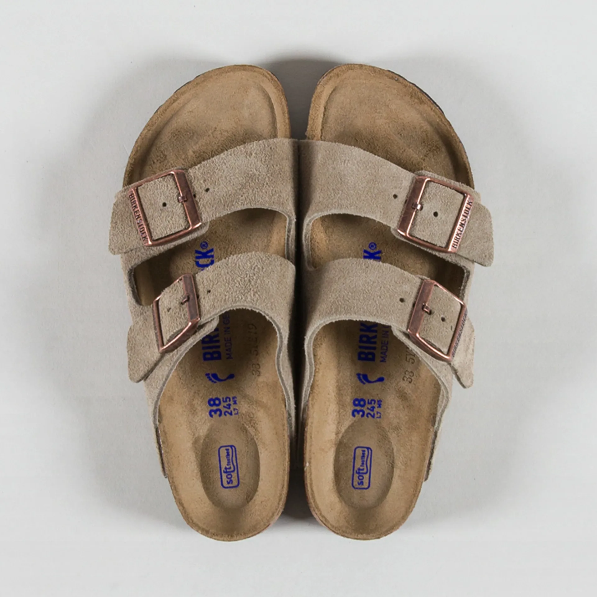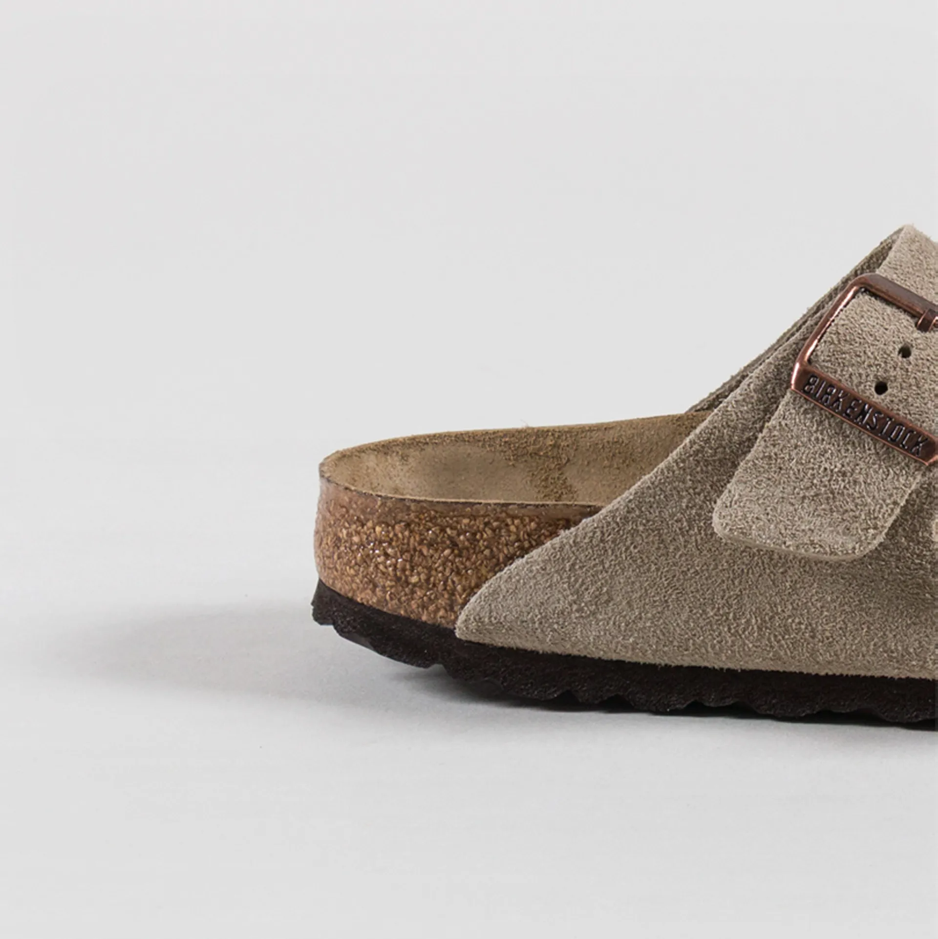 Birkenstock Womens Arizona Soft Footbed Suede Leather Narrow Fit Sandals Taupe
