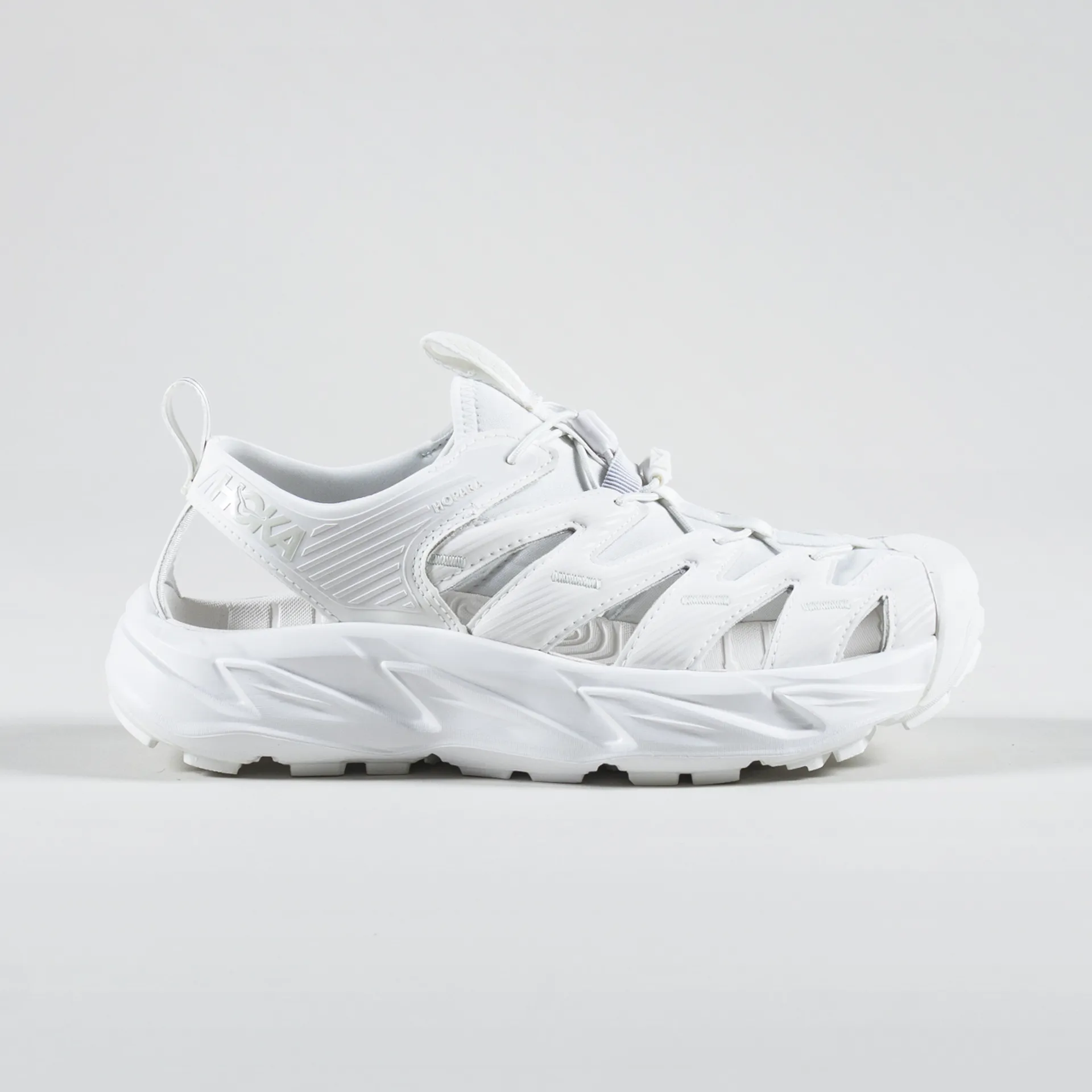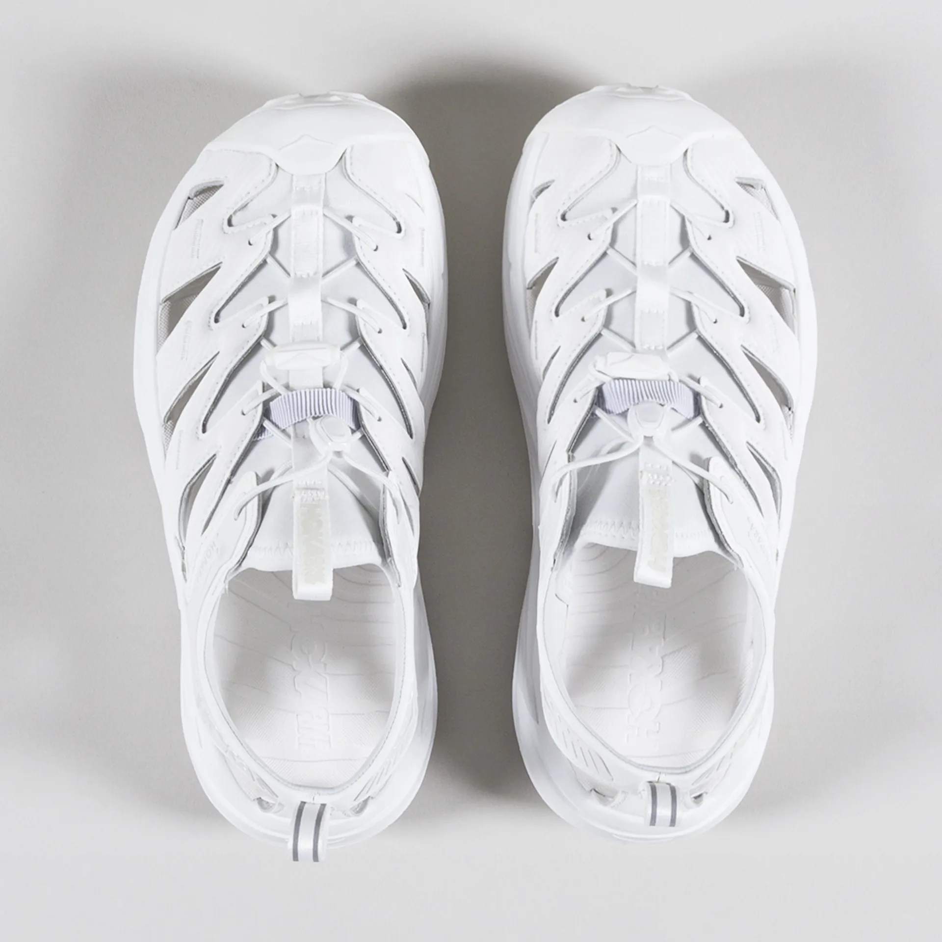 A pair of trainer-sandal hybrids from running label HOKA ONE ONE, made from a durable synthetic upper with a textile cover over the upper foot and a toggle lace system. It sits on a shock-absorbing synthetic midsole with a grippy rubber tread and toe bumper.