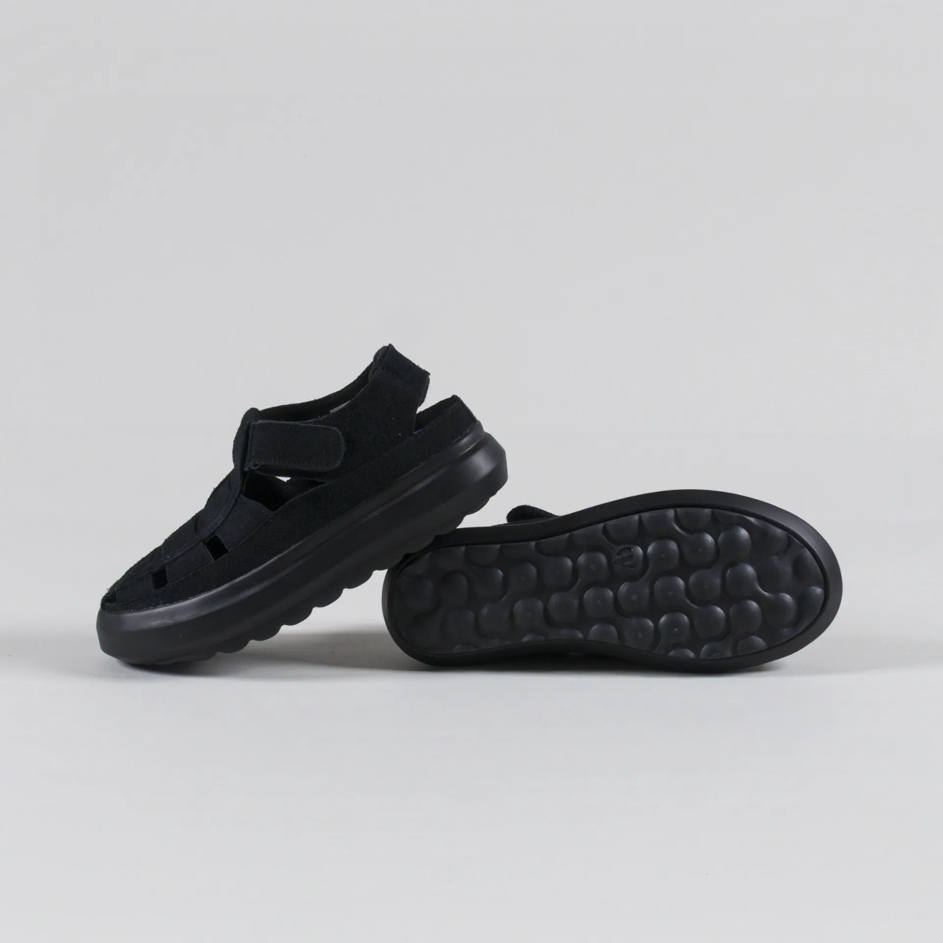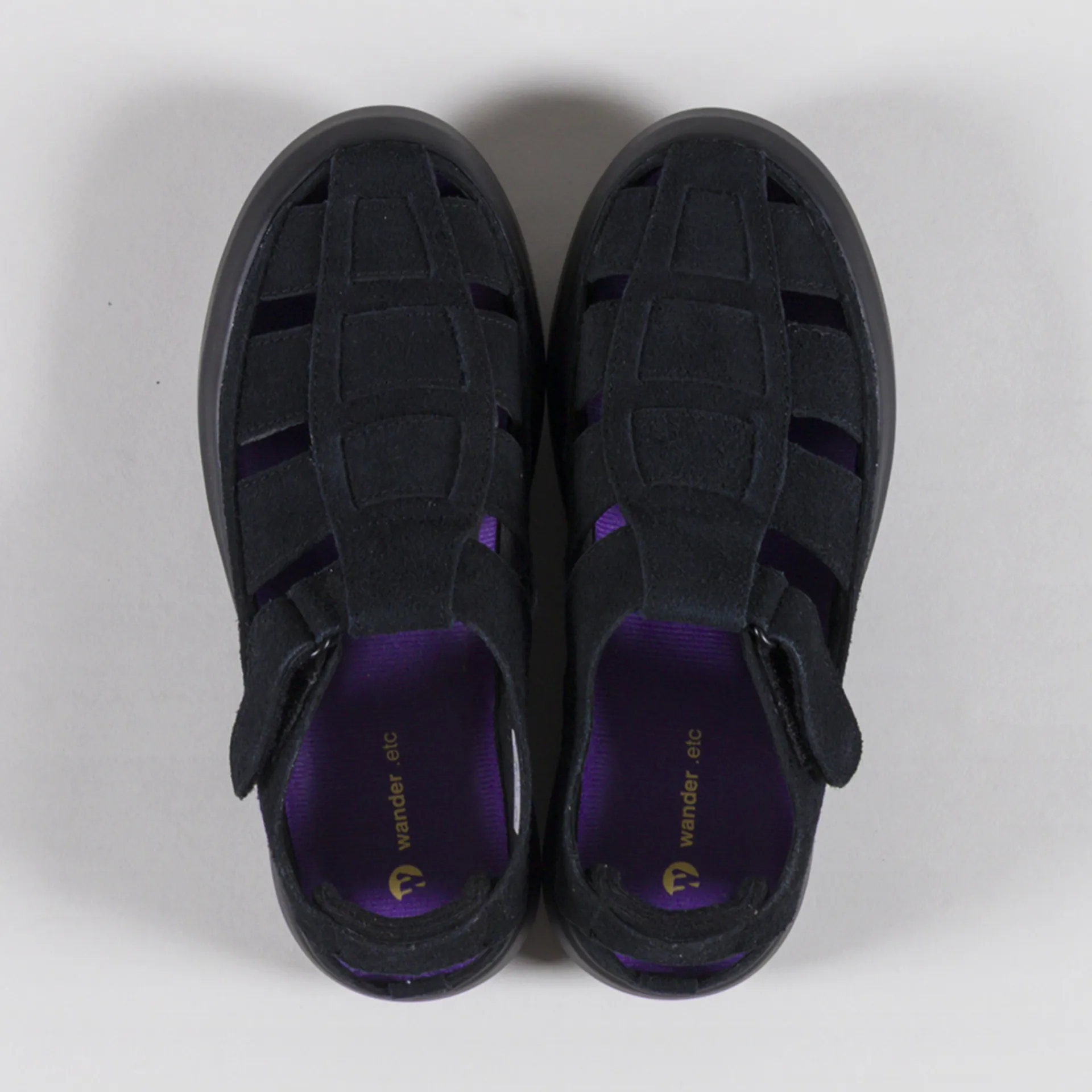 A pair of fisherman sandals from Wander, constructed with premium hair suede leather uppers and a secure velcro tab to adjust the fit