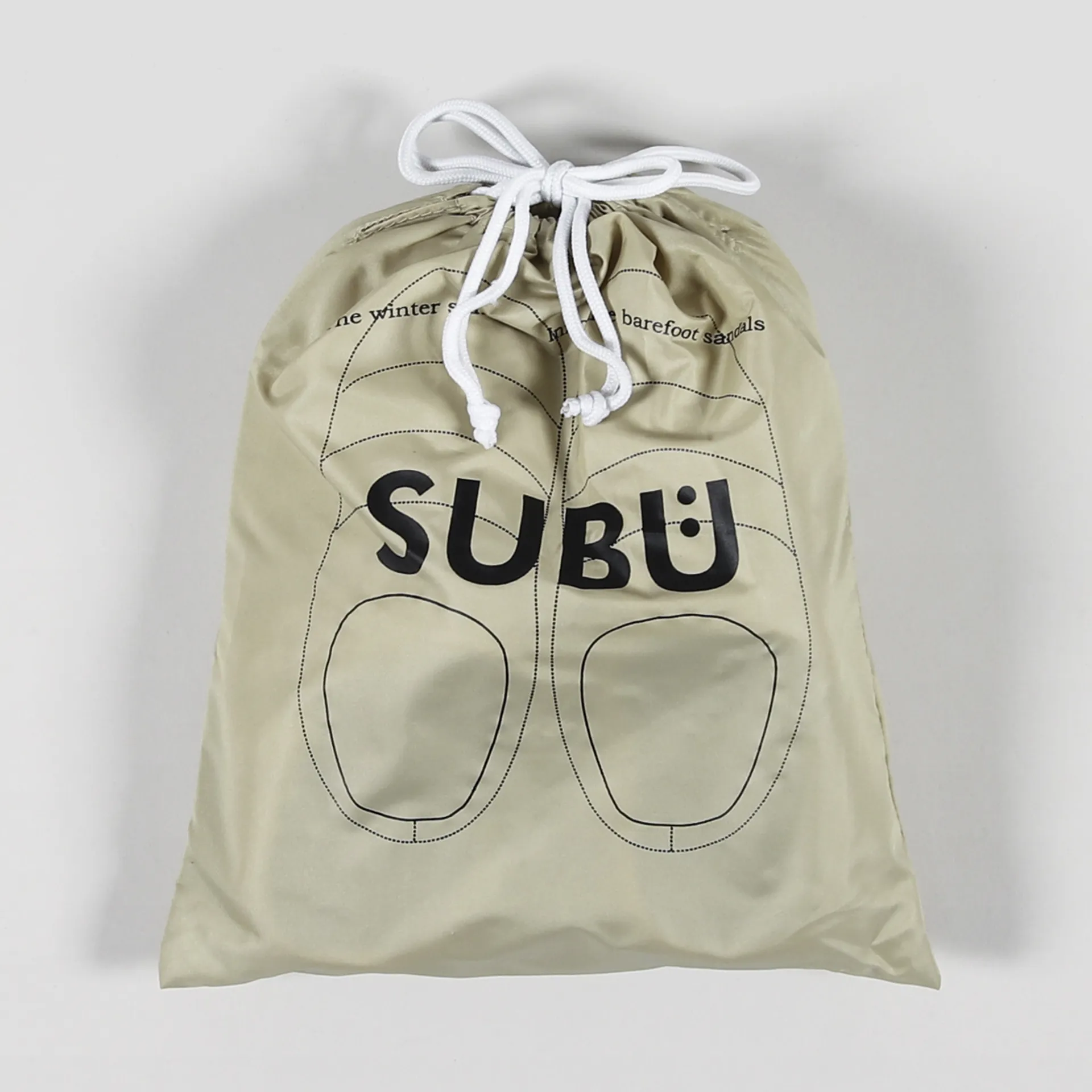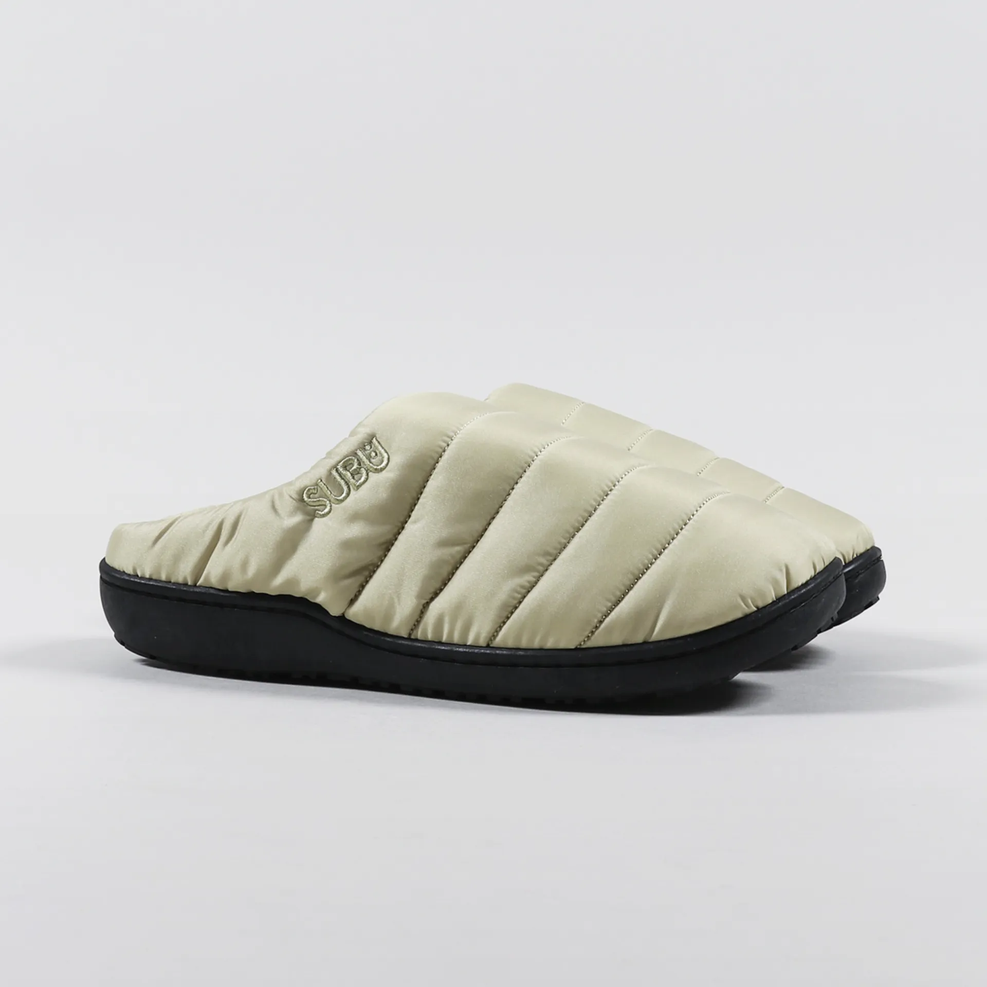 A pair of warm winter slippers from Subu Tokyo, made from a water-resistant Teflon coated shell, which is padded for extra warmth, and sits upon a durable and grippy rubber outsole/tread.
