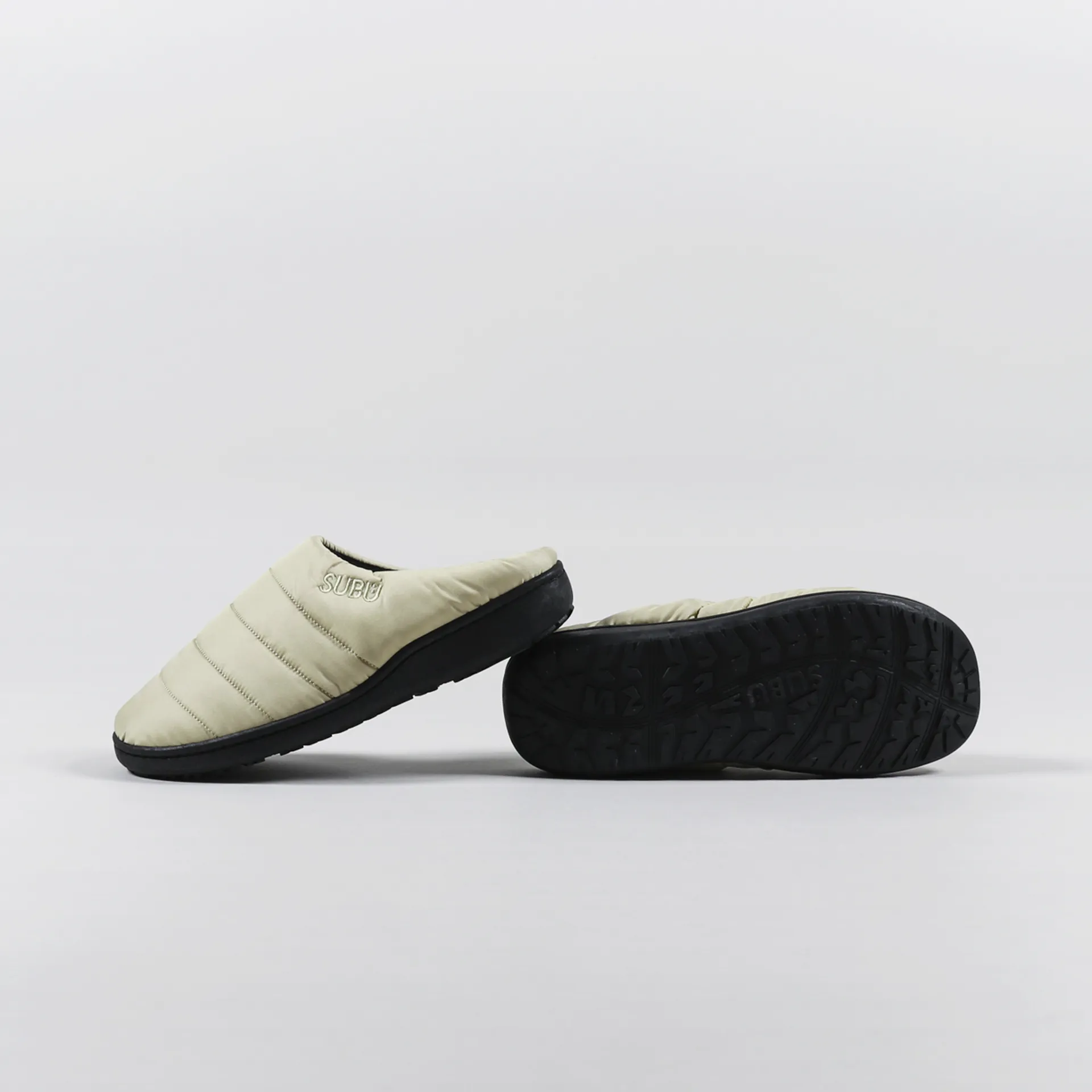 A pair of winter slippers from Subu Tokyo, made from a water-resistant Teflon-coated shell which is padded for additional insulation, and sits upon a durable and grippy rubber outsole and tread.